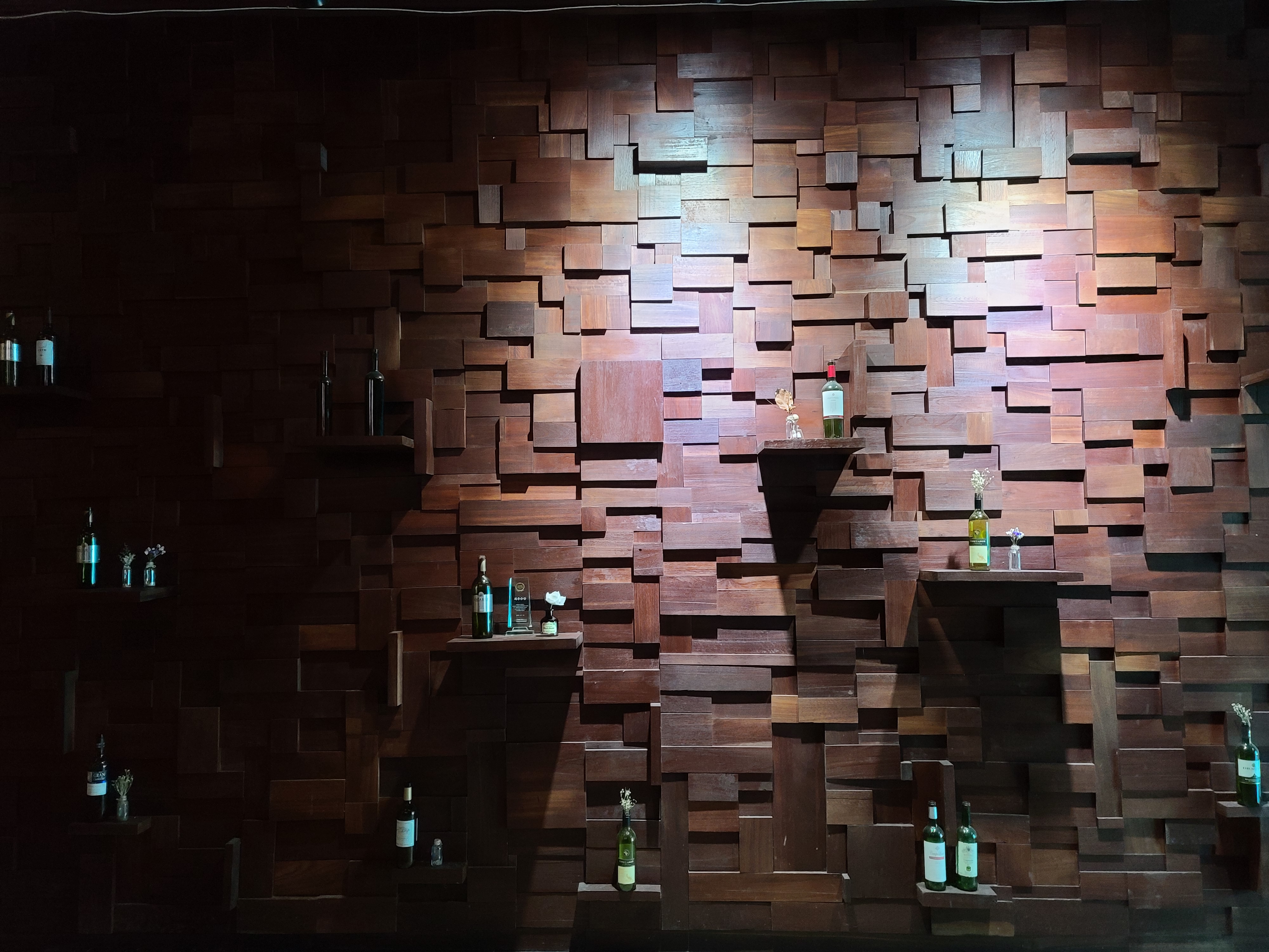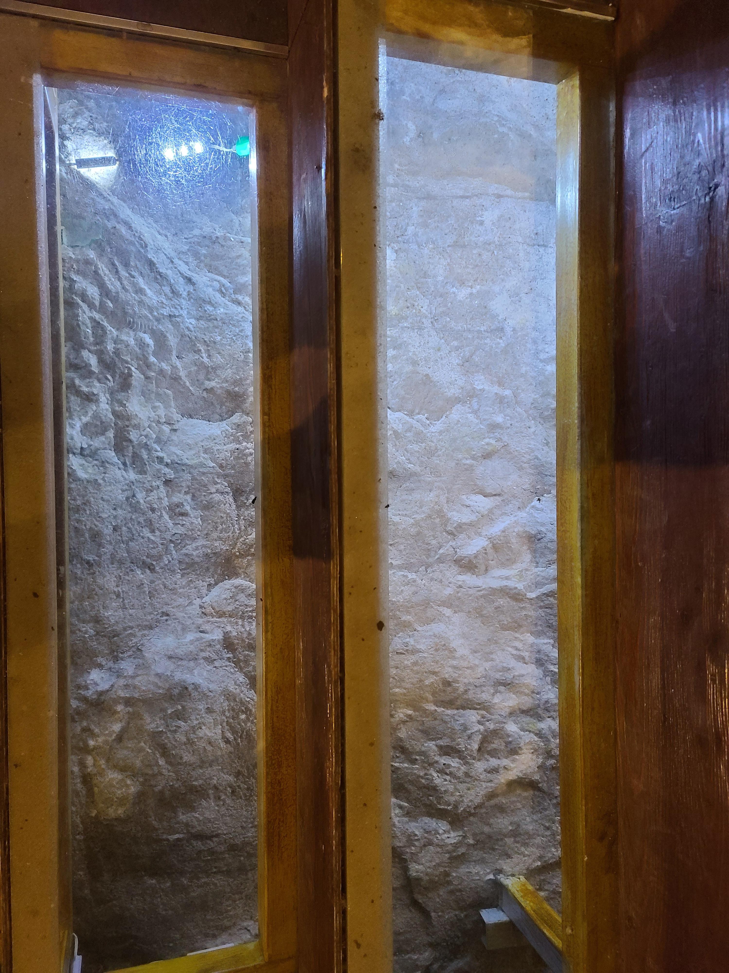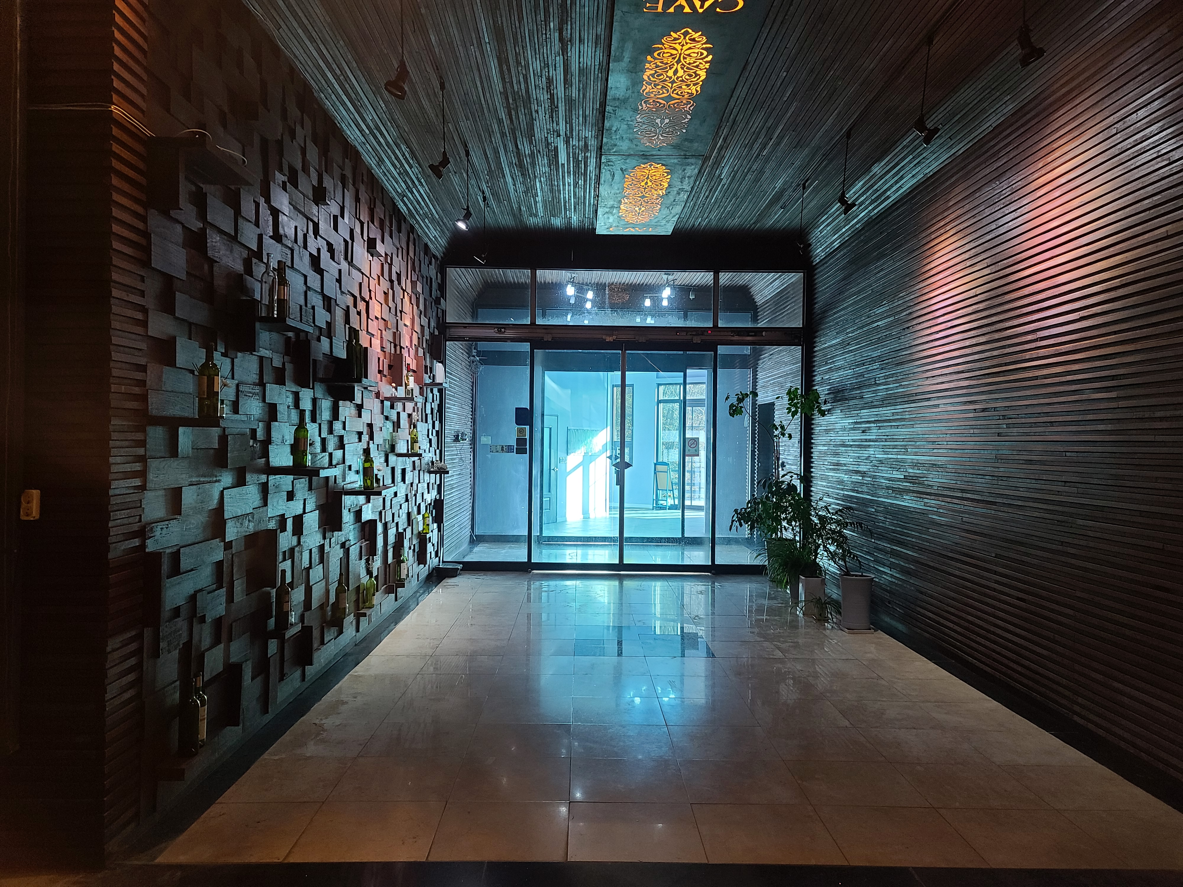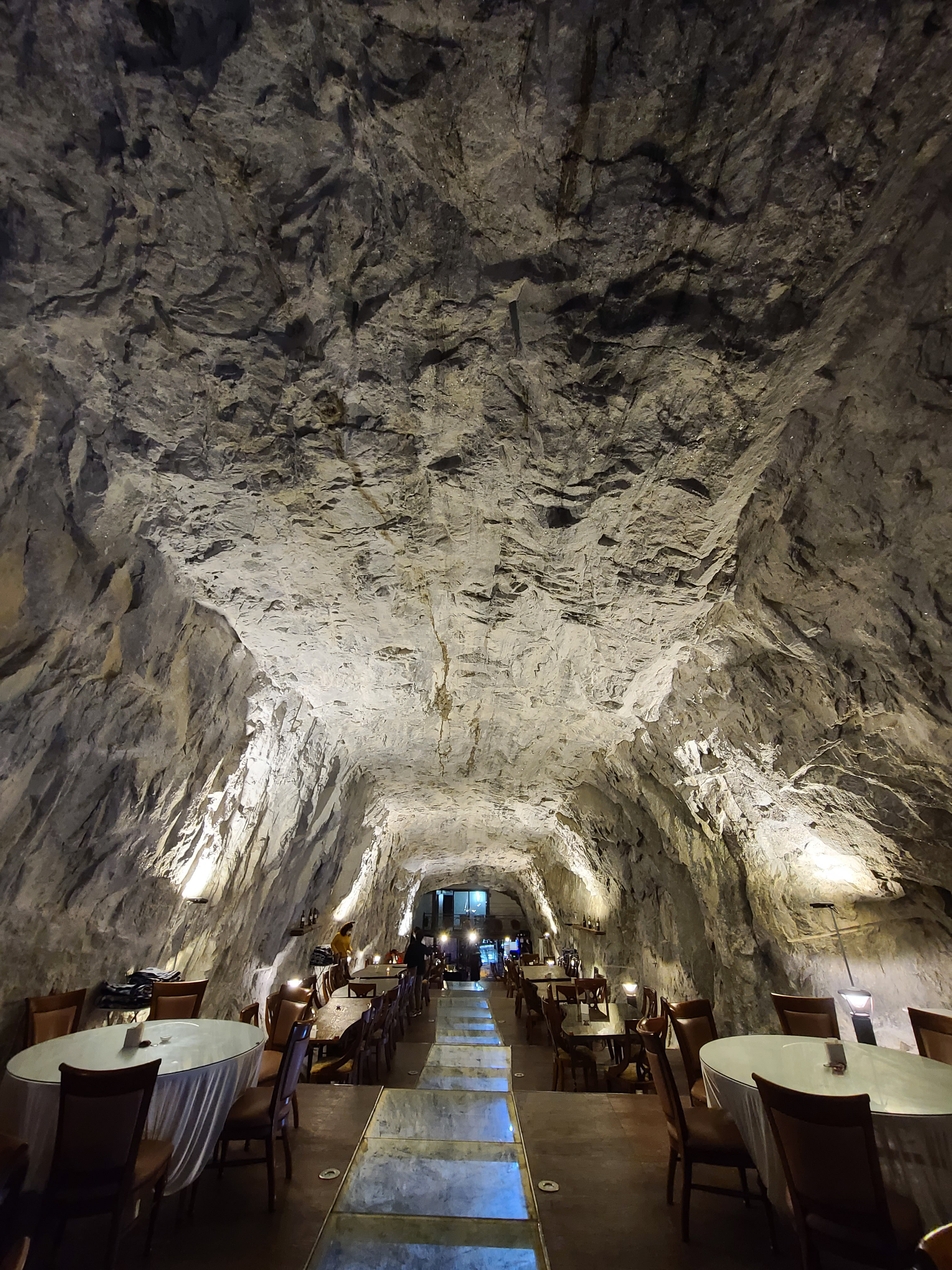 벽면의 와인 진열. 암벽은 동대산에 보았음직한 차돌(석영) 성분으로 보이기도 하고, 단단한 화강암 재질 정도? 저런 곳에서 수정을 캐낸 것인가요?