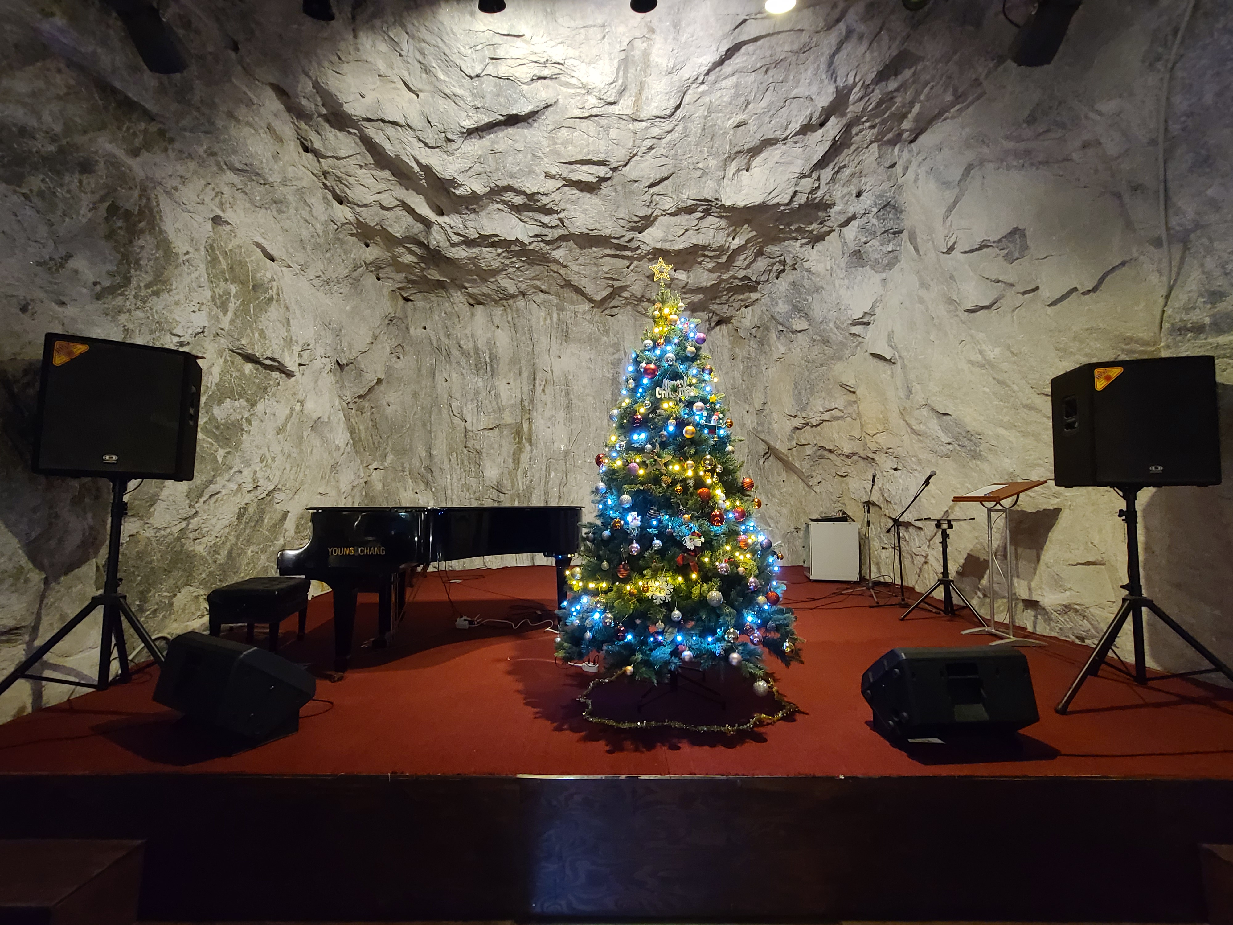 홀의 전면에 무대가 준비돼 있는 거 보니 가끔 라이브도 하는가 봅니다. 메리 크리스마스~~