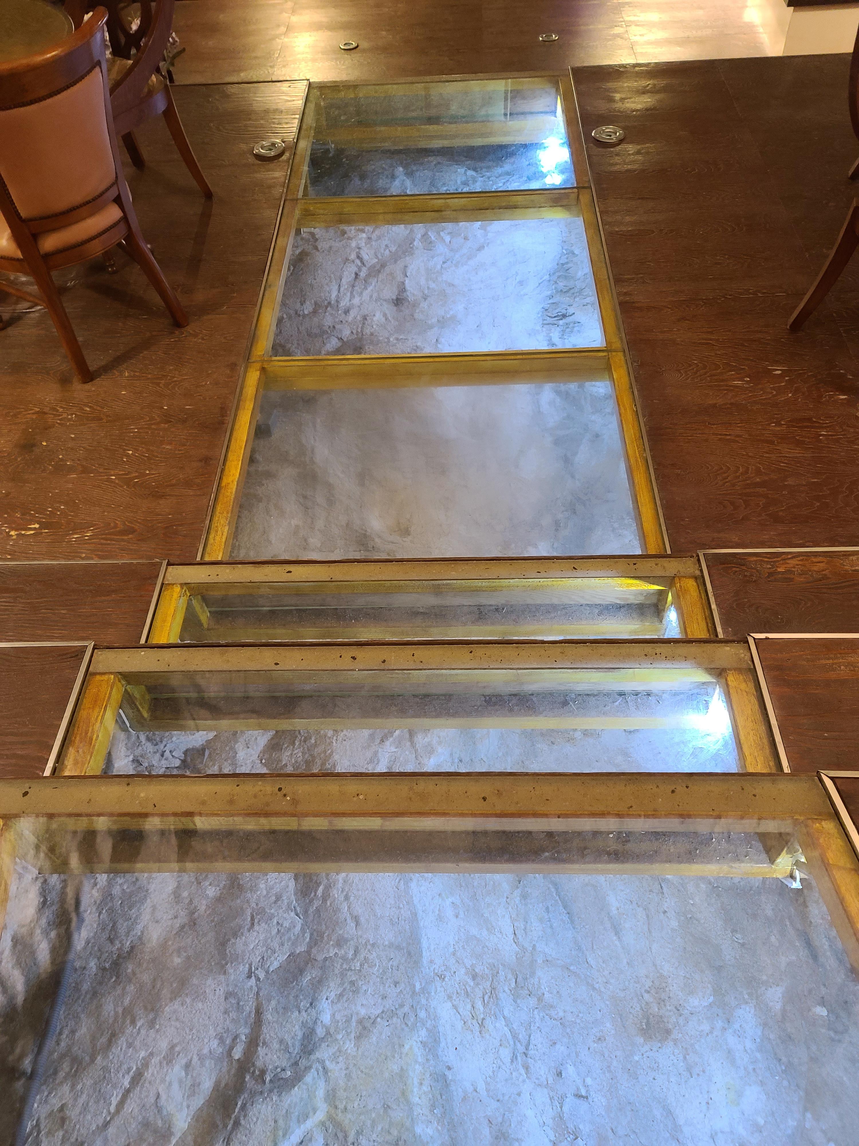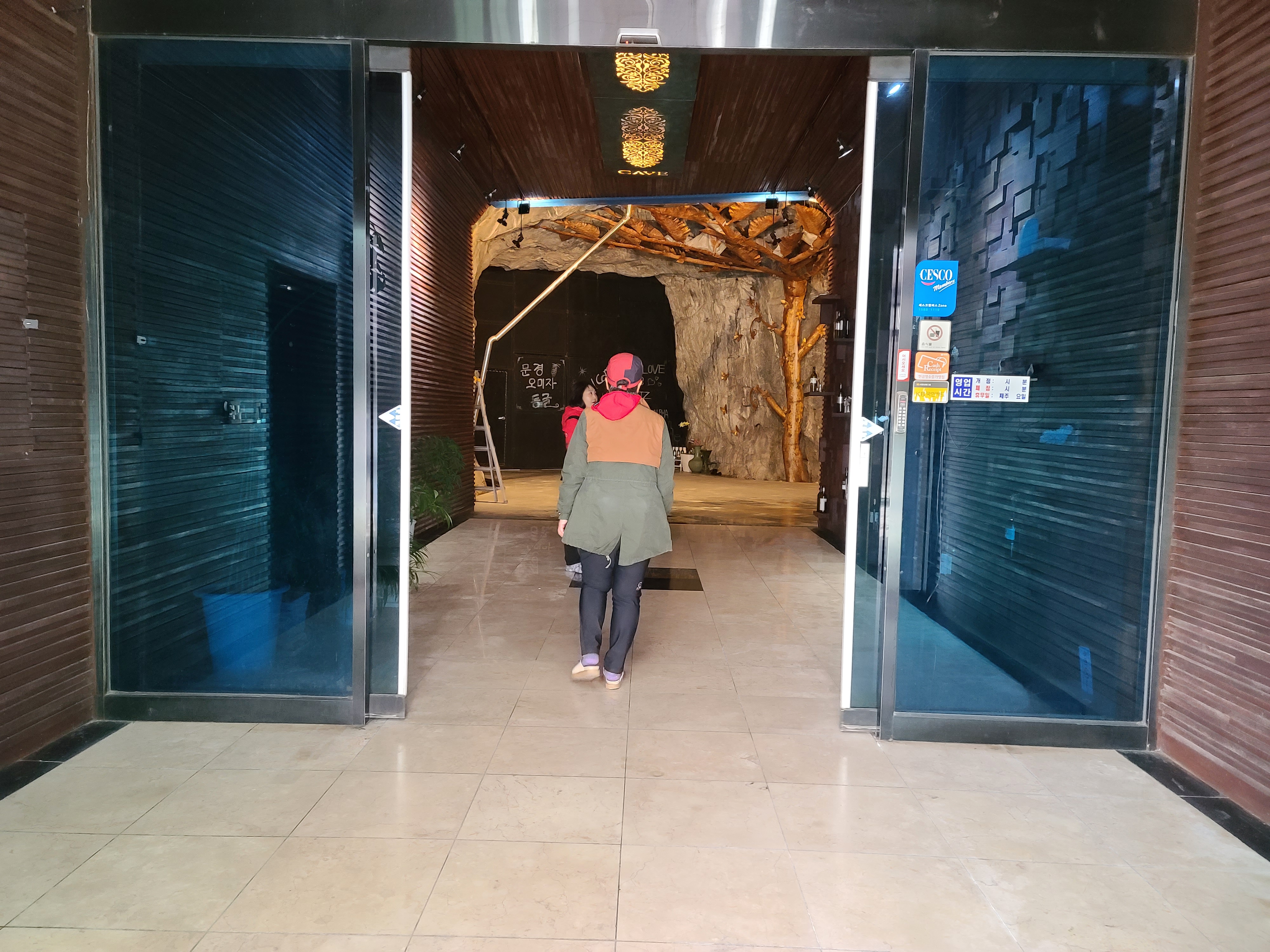 발 닿기를 살짝 멈추게 한 강화유리 바닥입니다. 바닥을 투명하게 하여 동굴임을 강조하는 센스가 보입니다.