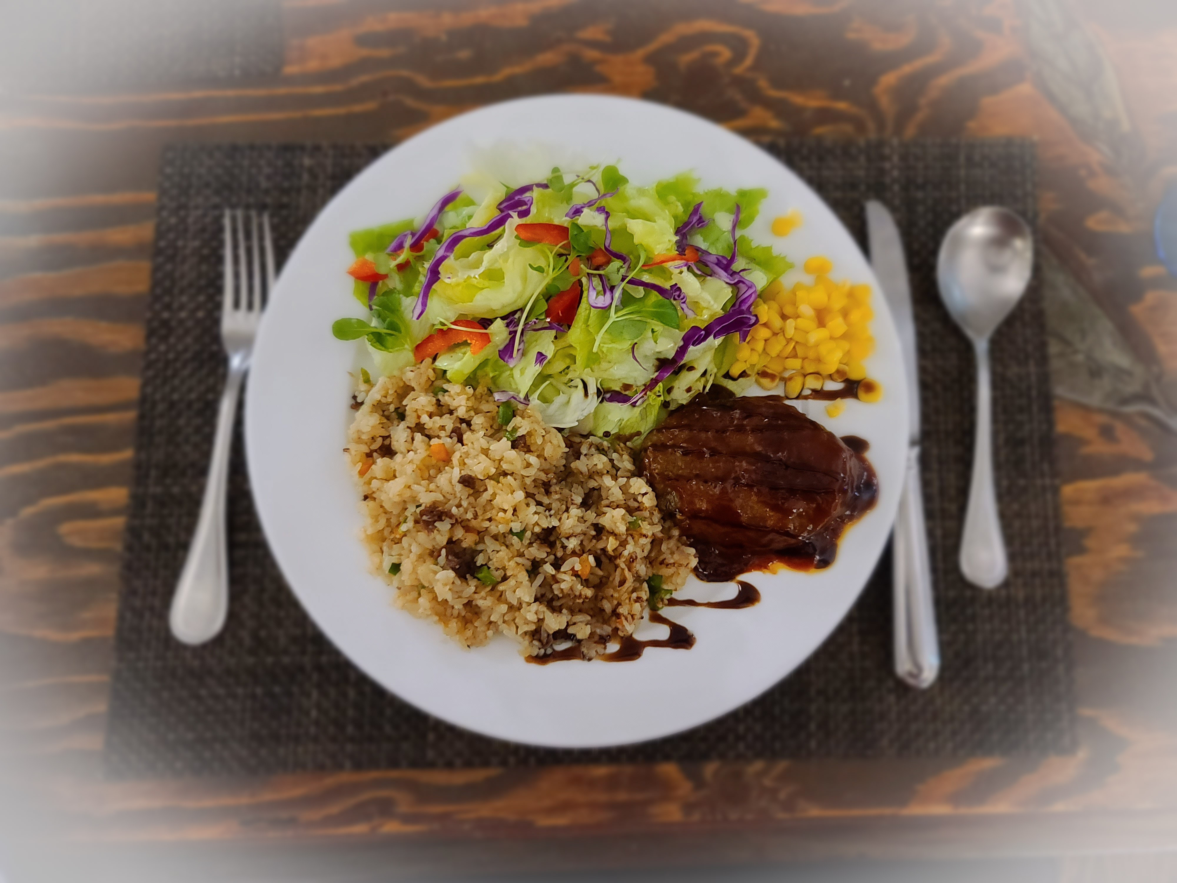 구경만 하는 곳이 아니라니 음식을 시켜봅니다. 삼겹살에 밥과 술과 안주를 한방에 해결하는 스타일인데 ㅎㅎ 오랜만에 분위기를 느껴보려니 조금 어색해요~ 홀에는 올드팝이 흐르는군요. 팝가수 머라이어 캐리의 커버곡인 "without you" 오래간만에 듣기 좋습니다. 와인은 7천 원, 음식은 대부분 1.5~3만 원 사이였습니다. 함박스테이크로 주문합니다. 19,000 원이네요. 후식으로 커피는 나옵니다.