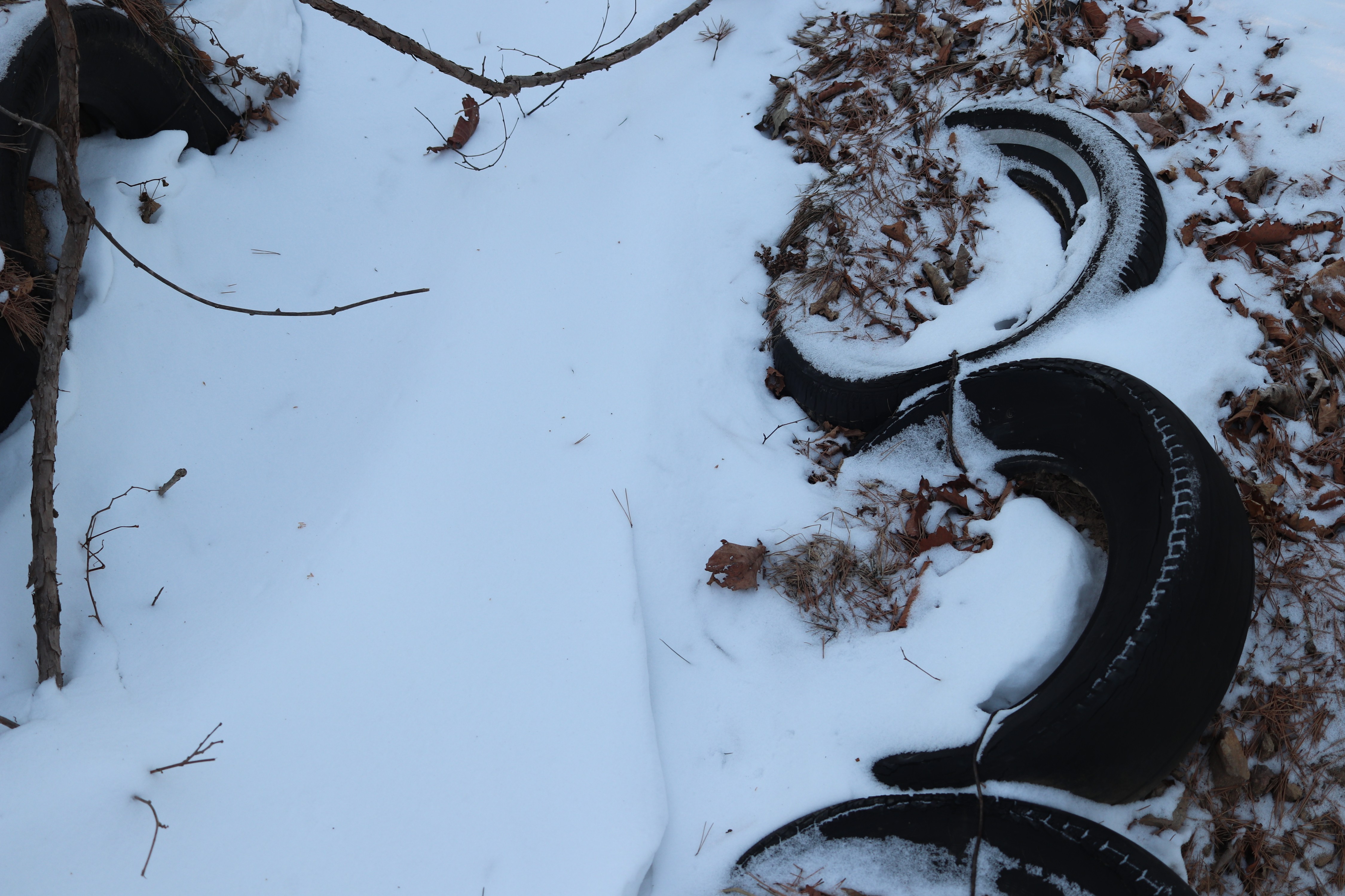 가파른 능선의 접속 길은 얼마간 올라가니 완만해지며 길 옆으로 폐 타이어로 구축한 참호가 길게 있었습니다. 백두대간 길목에 군부대 훈련장인가? 용도가 궁금...