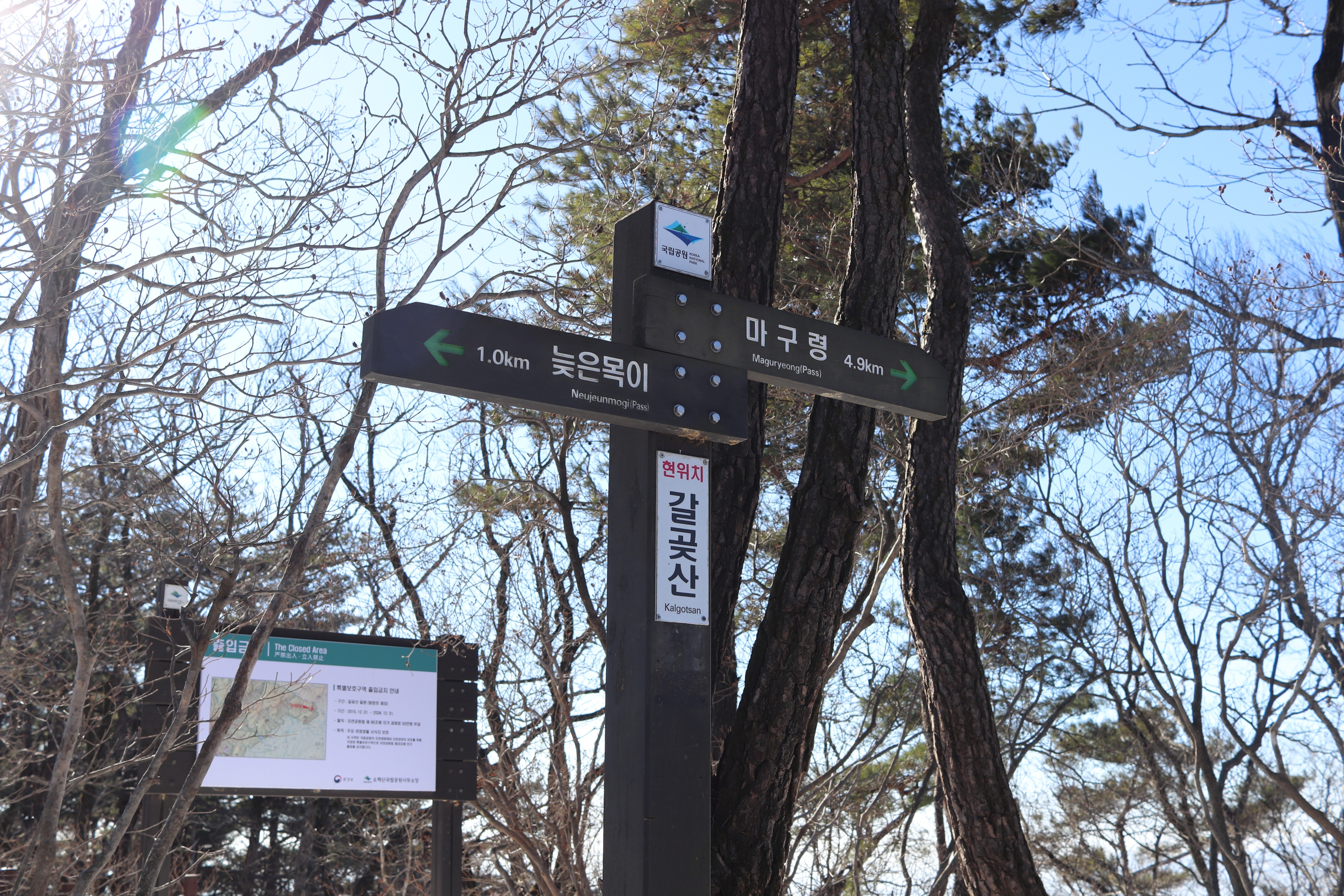 늦은목이 500미터 지점이니 걸어 온 만큼 더 가면 갈곶산 정상이 나오겠네요.