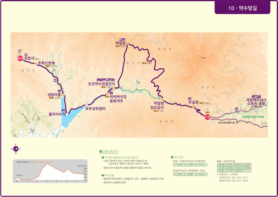 - 세부코스 : 주실령입구-주실령-박달령-오전약수탕-물야저수지&보부상위령비-생달마을-상운사