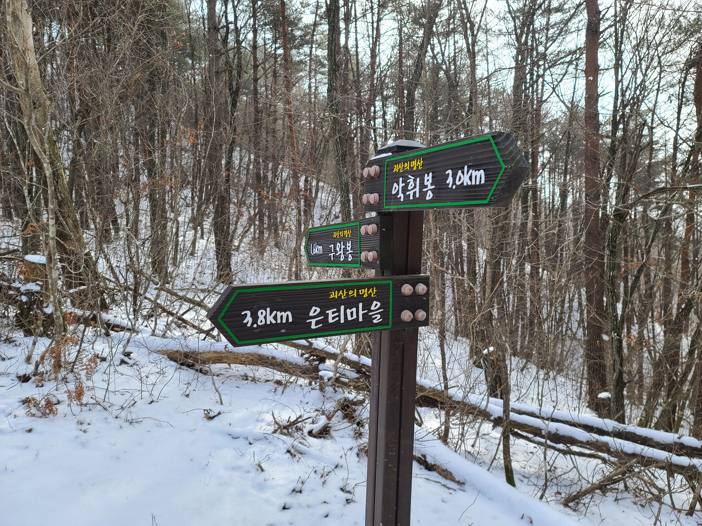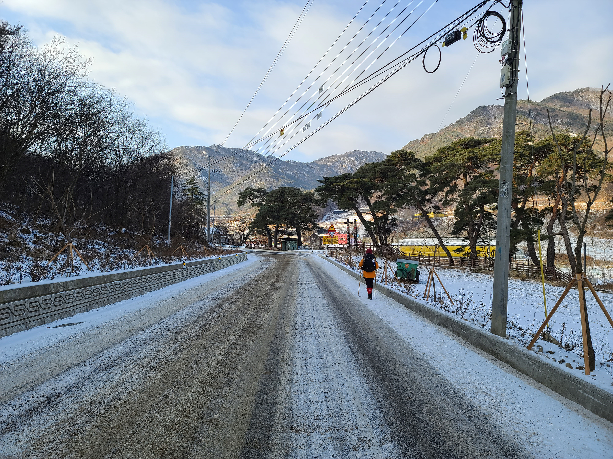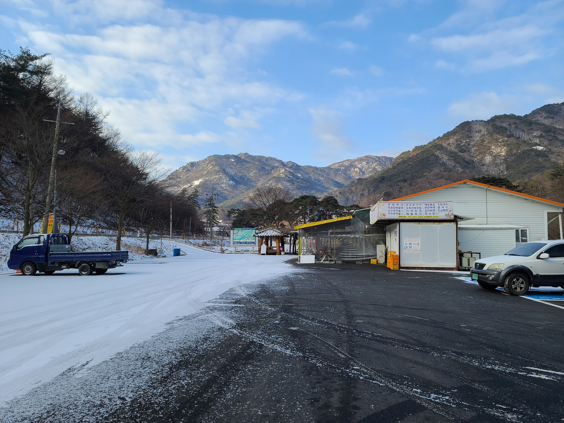 대망의 2021년 새해가 밝았습니다. 어느 해 보다 지난 한 해 무겁고 어두운 터널을 지나왔기에 새해에는 희망의 한 해가 될 수 있으면 하는 바람을 간절히 기원합니다. 중부고속도로 연풍 IC를 빠져나오면 멀지 않은 곳 은티마을 주차장으로 안내합니다. 부지런한 등산객들의 차량이 주차된 게 보이고 대부분 비어있습니다. 마을 자치운영으로 소형 3천 원의 주차비를 징수하는 곳인데 오늘은 새해 첫날이라 휴무인지 패스합니다.