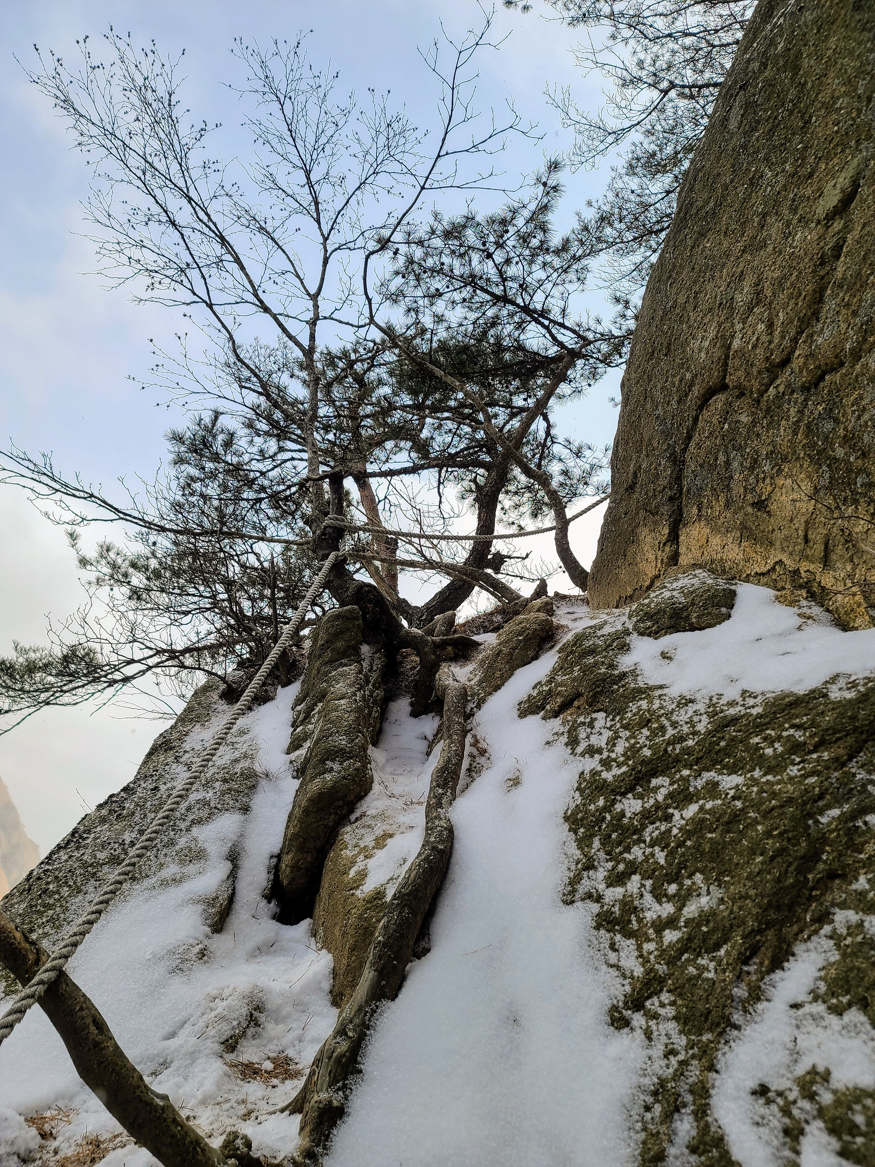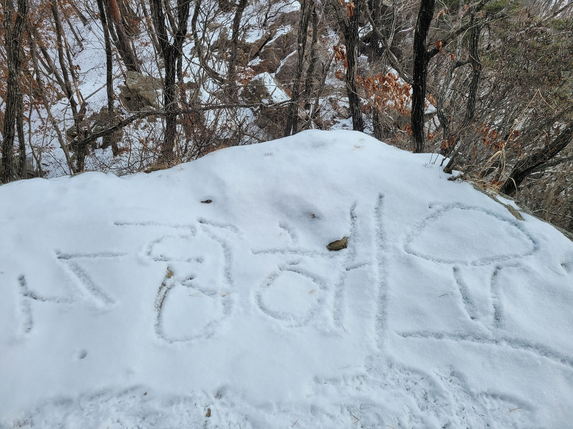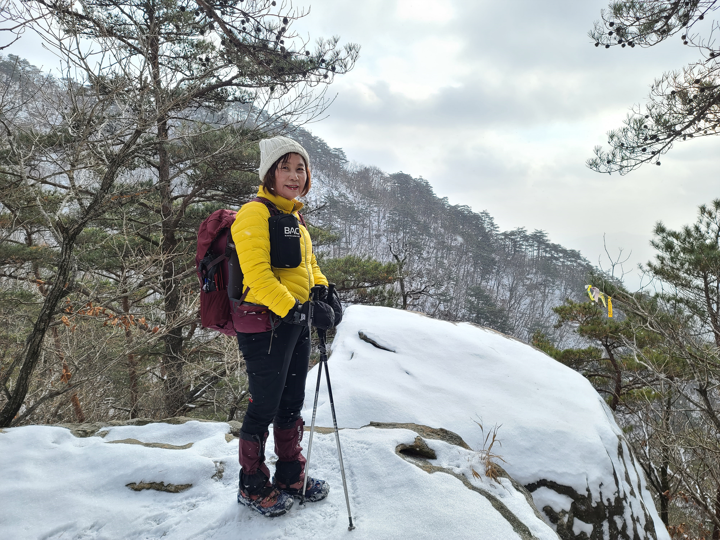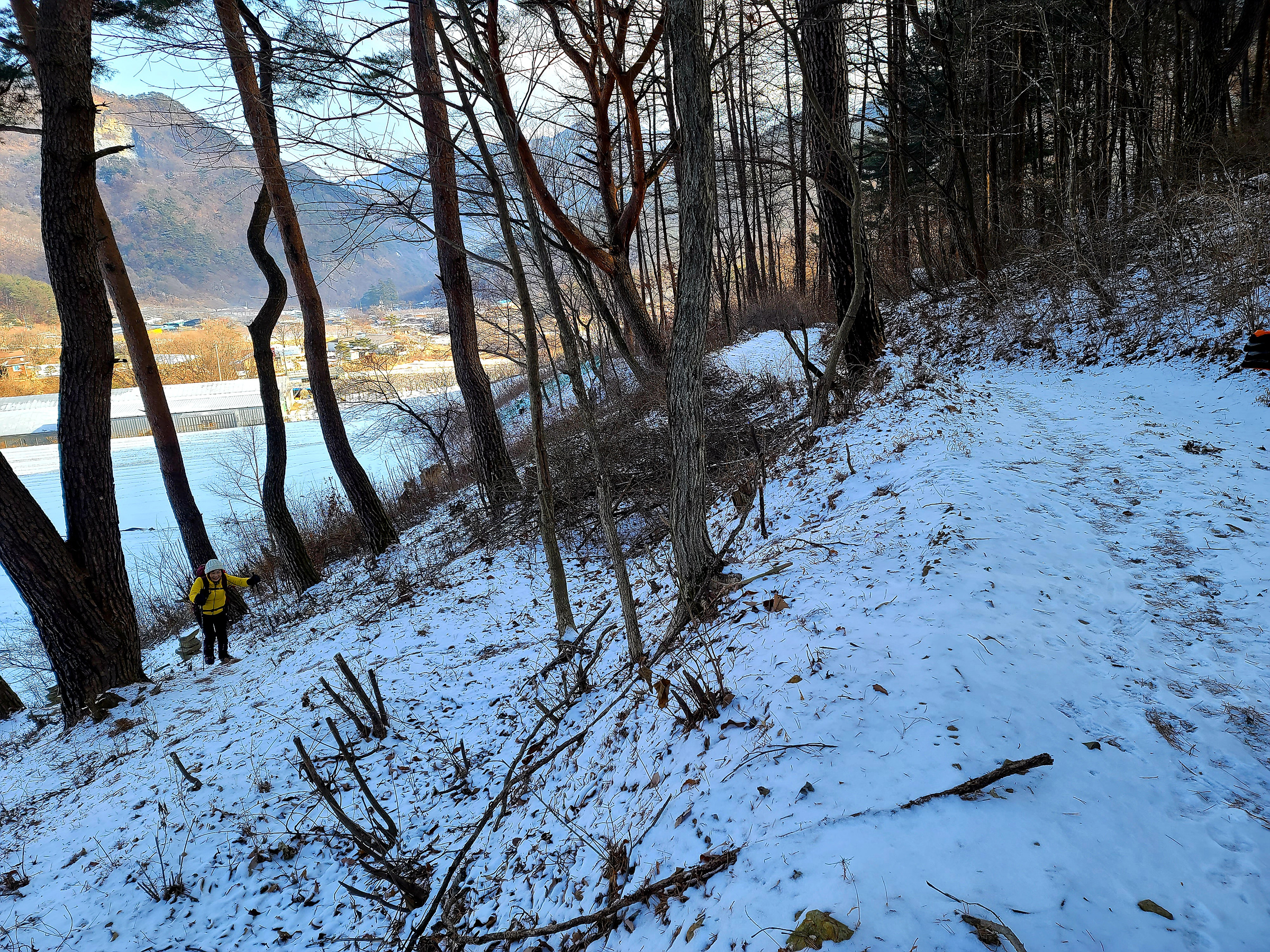오늘의 복병은 따로 있습니다. 몇 걸음 옮기면 달라붙는 눈과 낙엽으로 털어 내느라 가다 서다를 반복합니다.