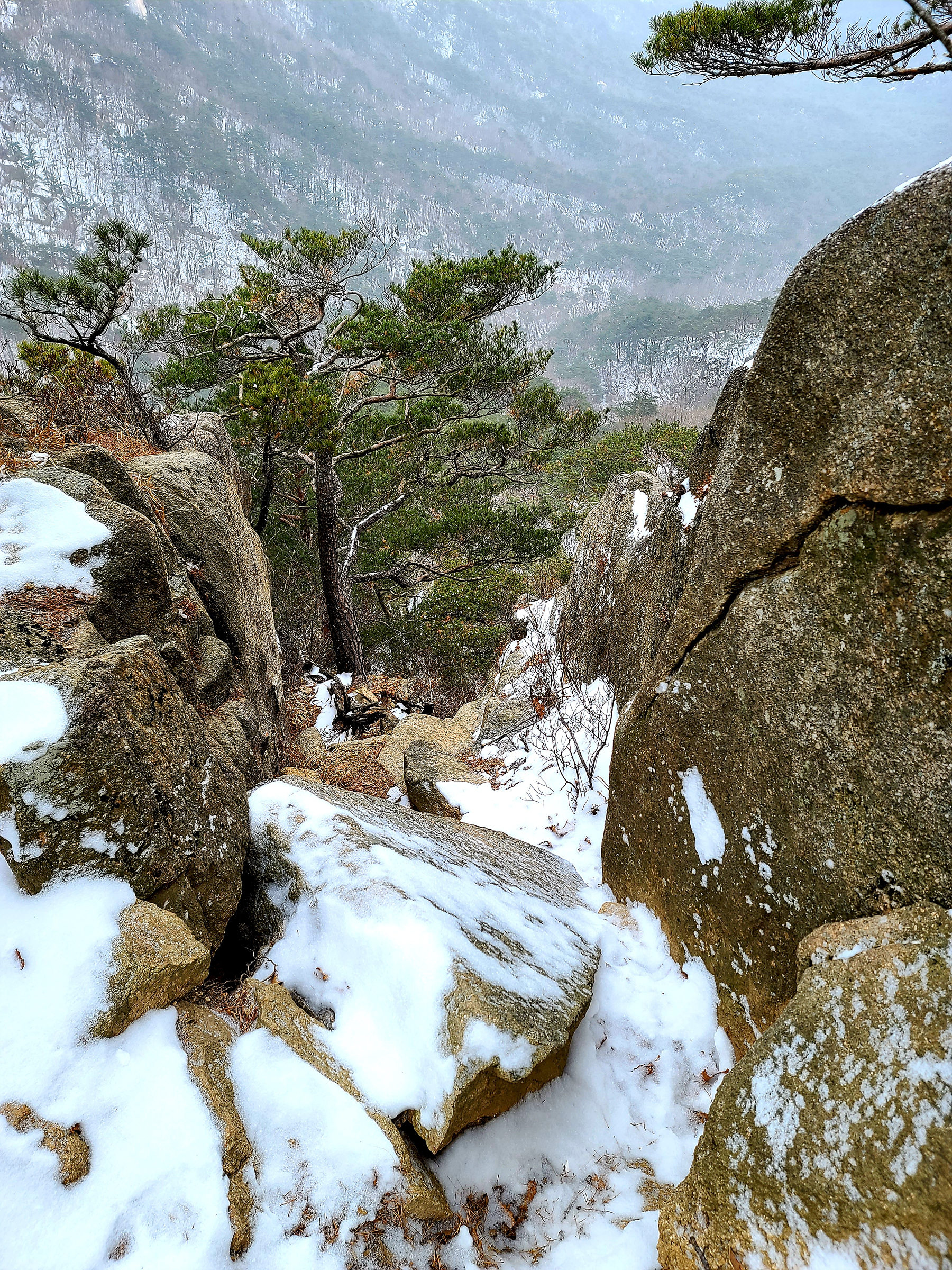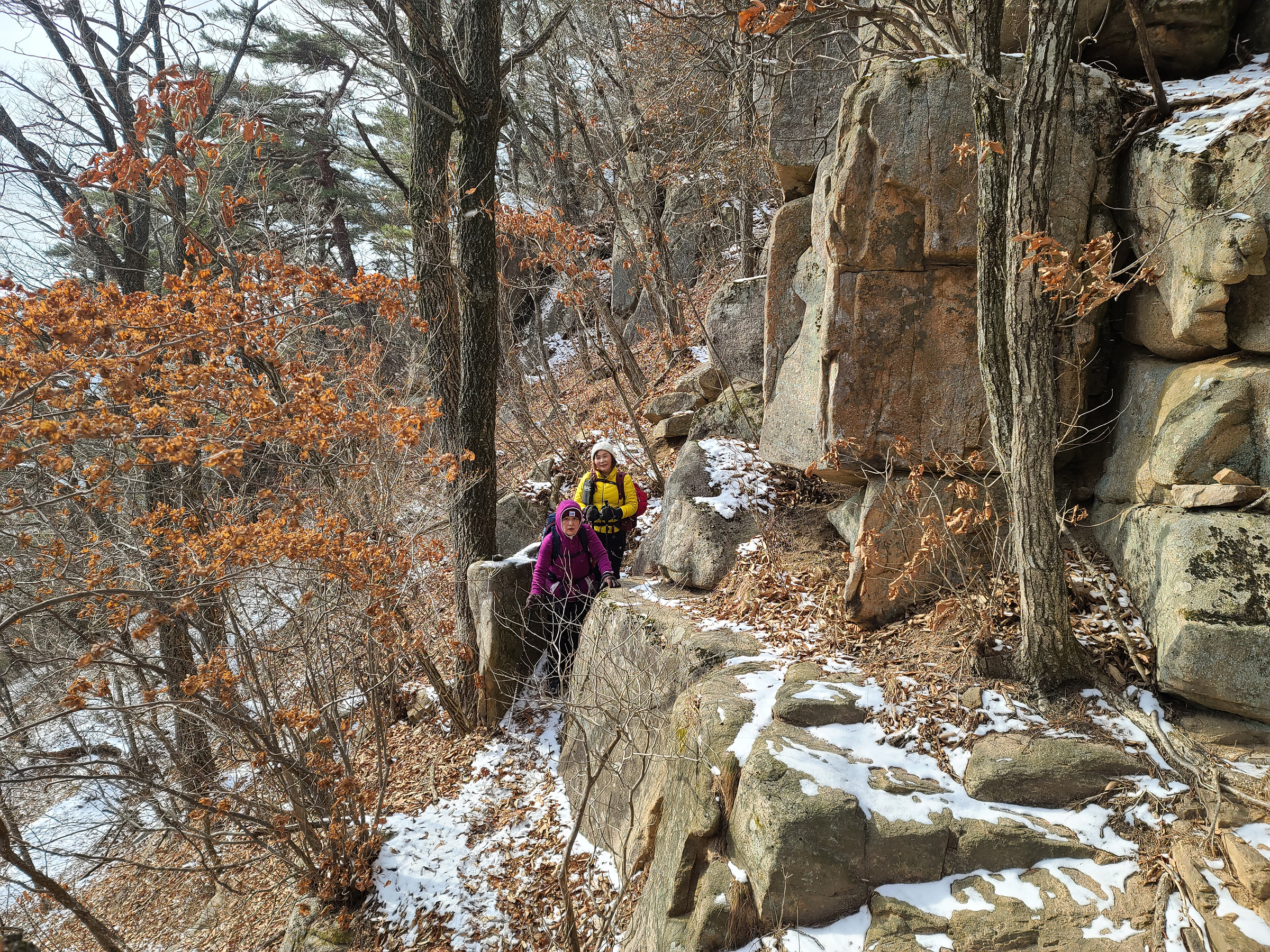 간혹 산행기를 보면 나타나는 널 뛰기 바위가 부담스러웠는데 우회하거나 통과하면 그만일 것을...