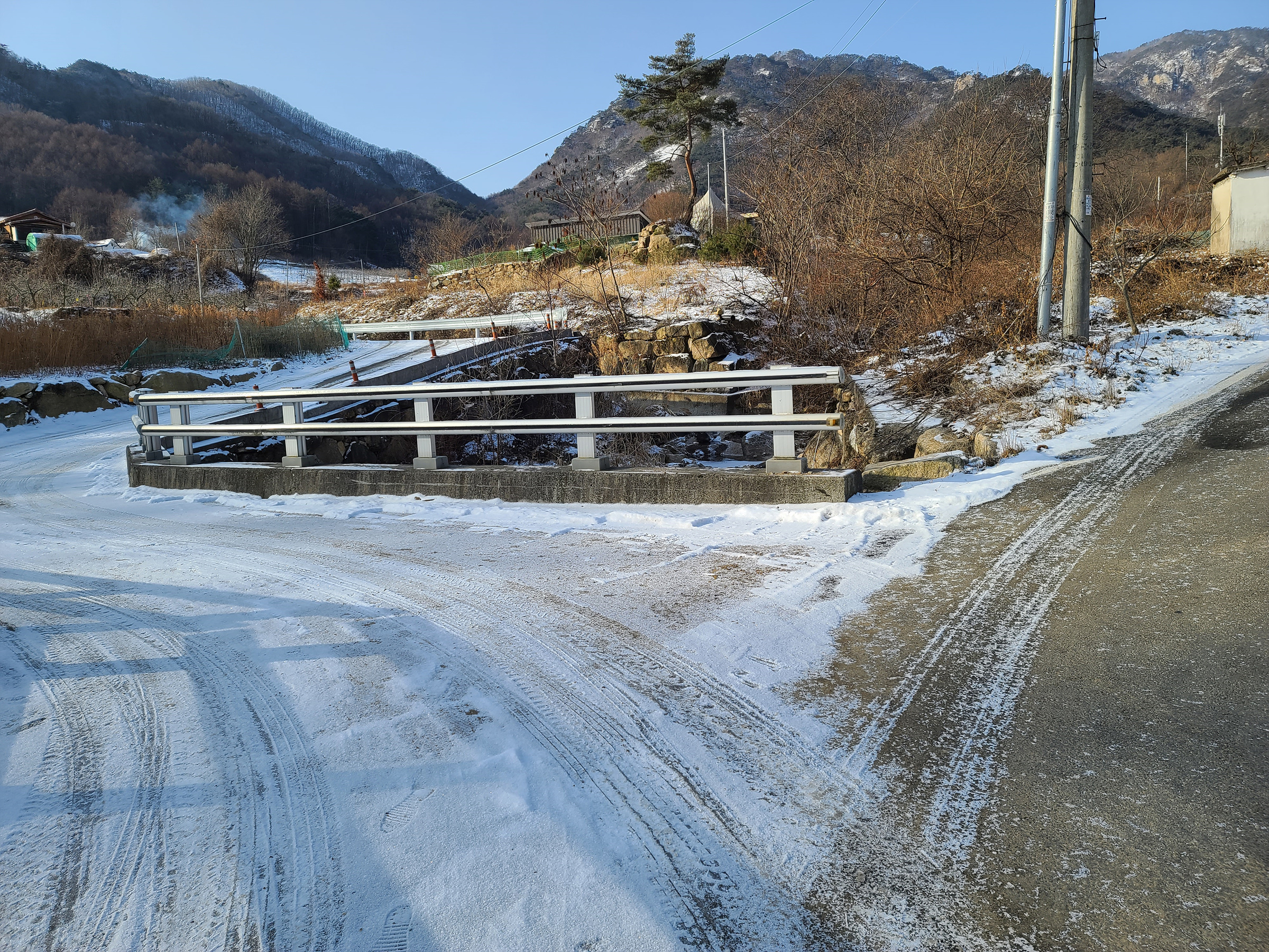 주막을 지나 마을회관을 통과하면 사진에 보이는 다리에서 우측으로 가야 은티재 방향입니다. 하산은 좌측으로 내려오지요.