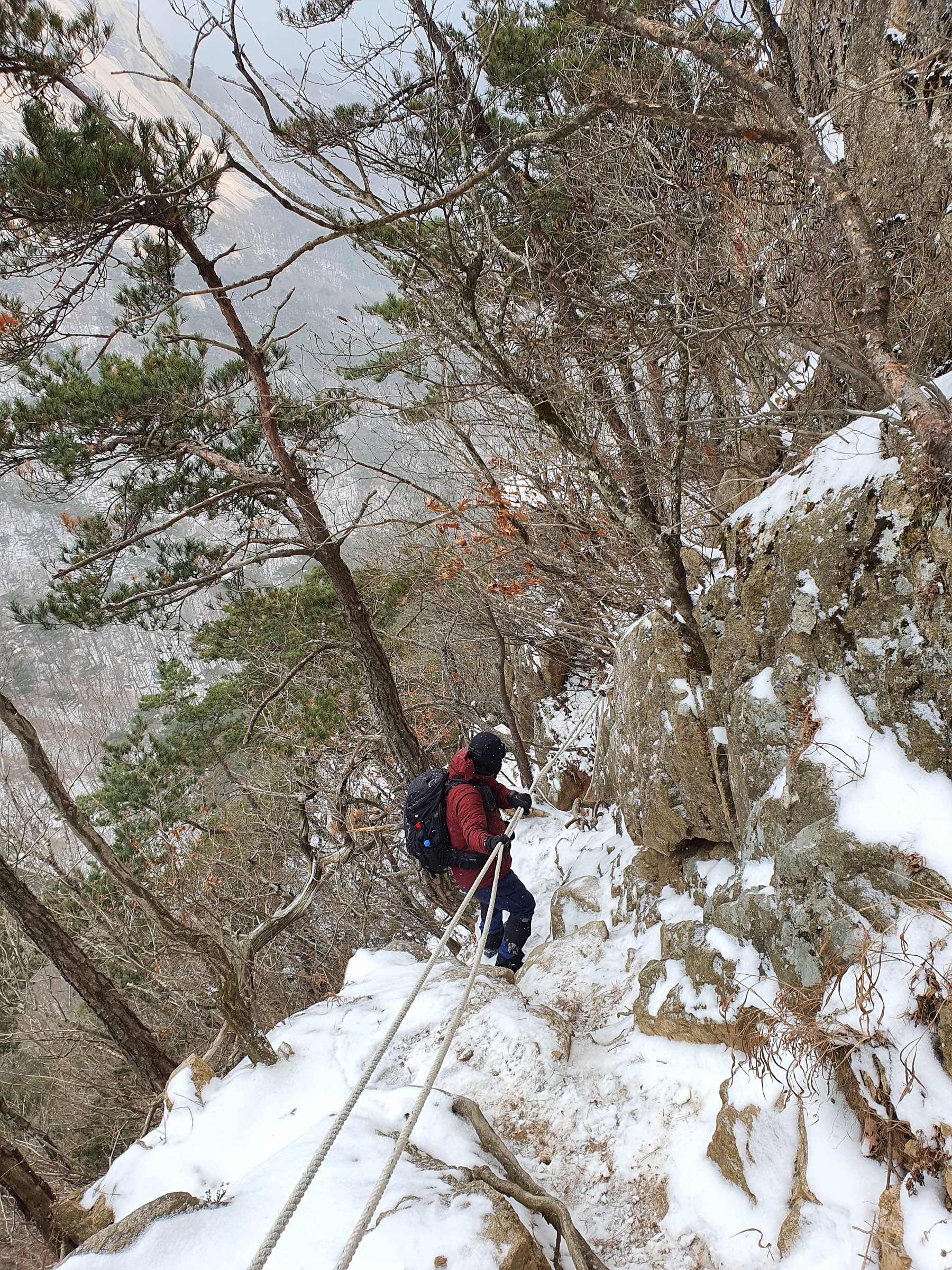 고작 해발 683m의 코앞 주치봉이 아주 깐깐합니다. 지그재그로 경사도를 낮춘다 해도 거의 심마니 오름길...