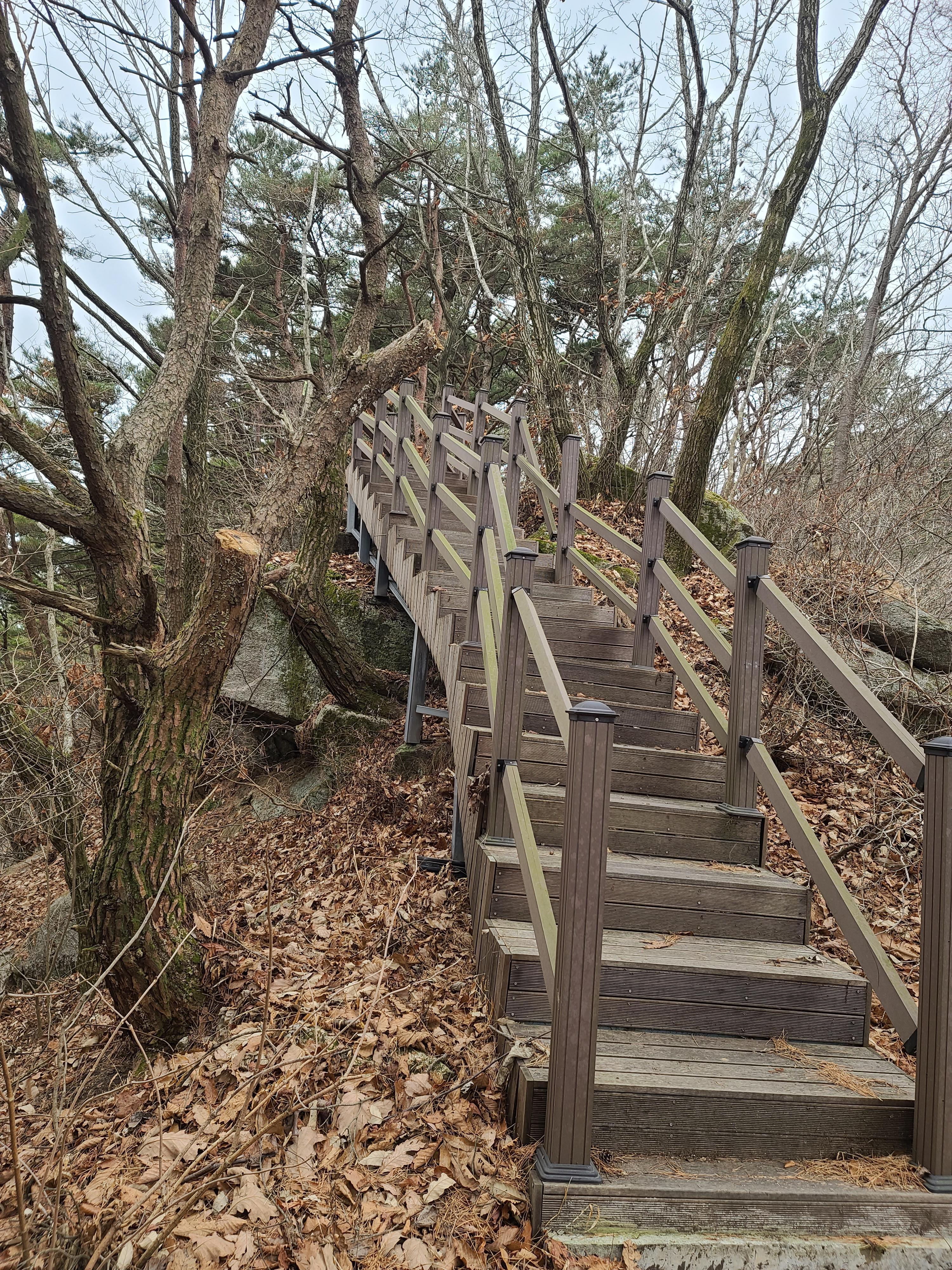 복성이재에서 아막 산성을 거쳐 사치재로 내려오는 계단입니다. 전에는 없던 신설 계단으로 보입니다.