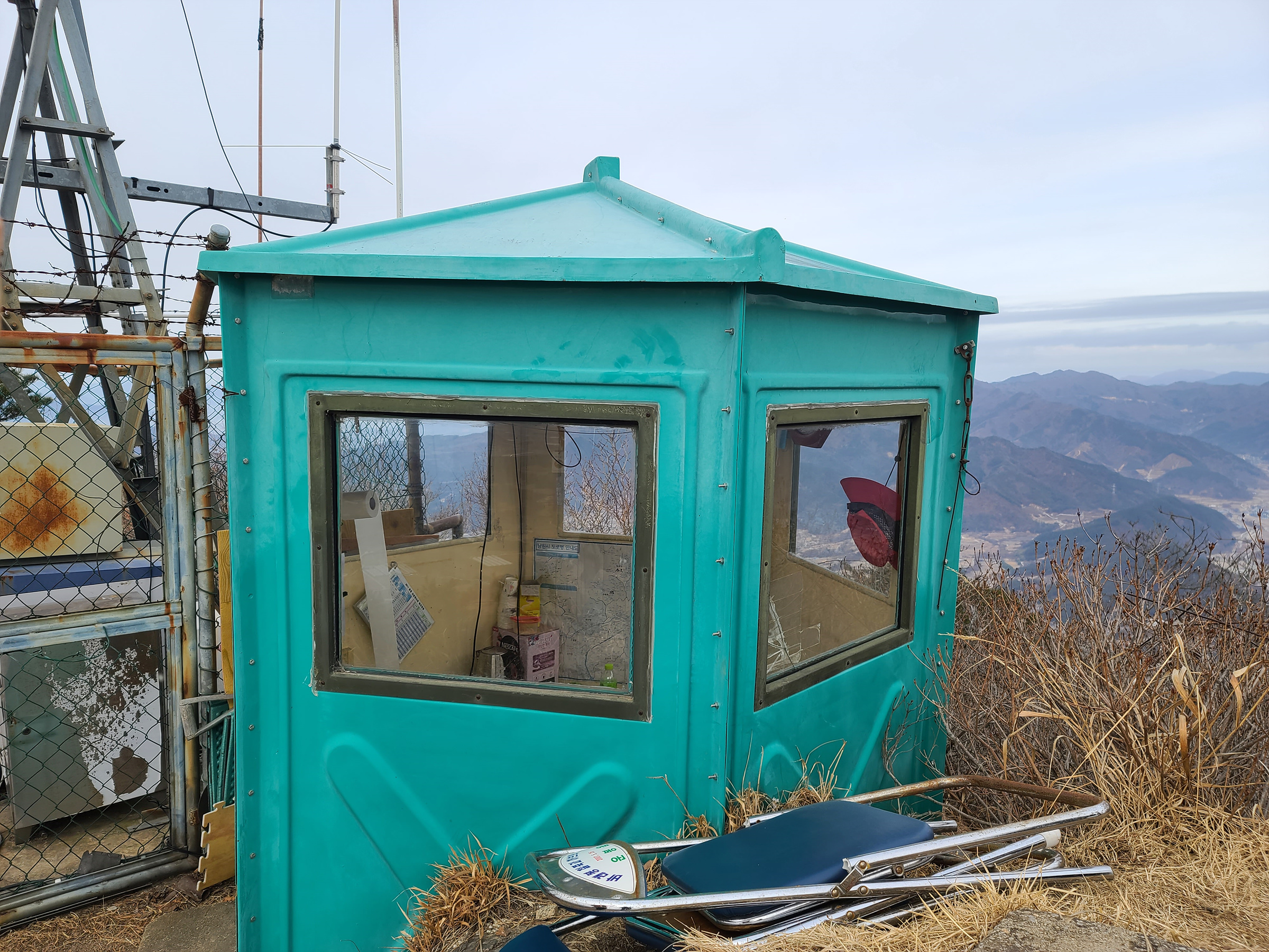 정상에는 산불 감시초소가 있어요.