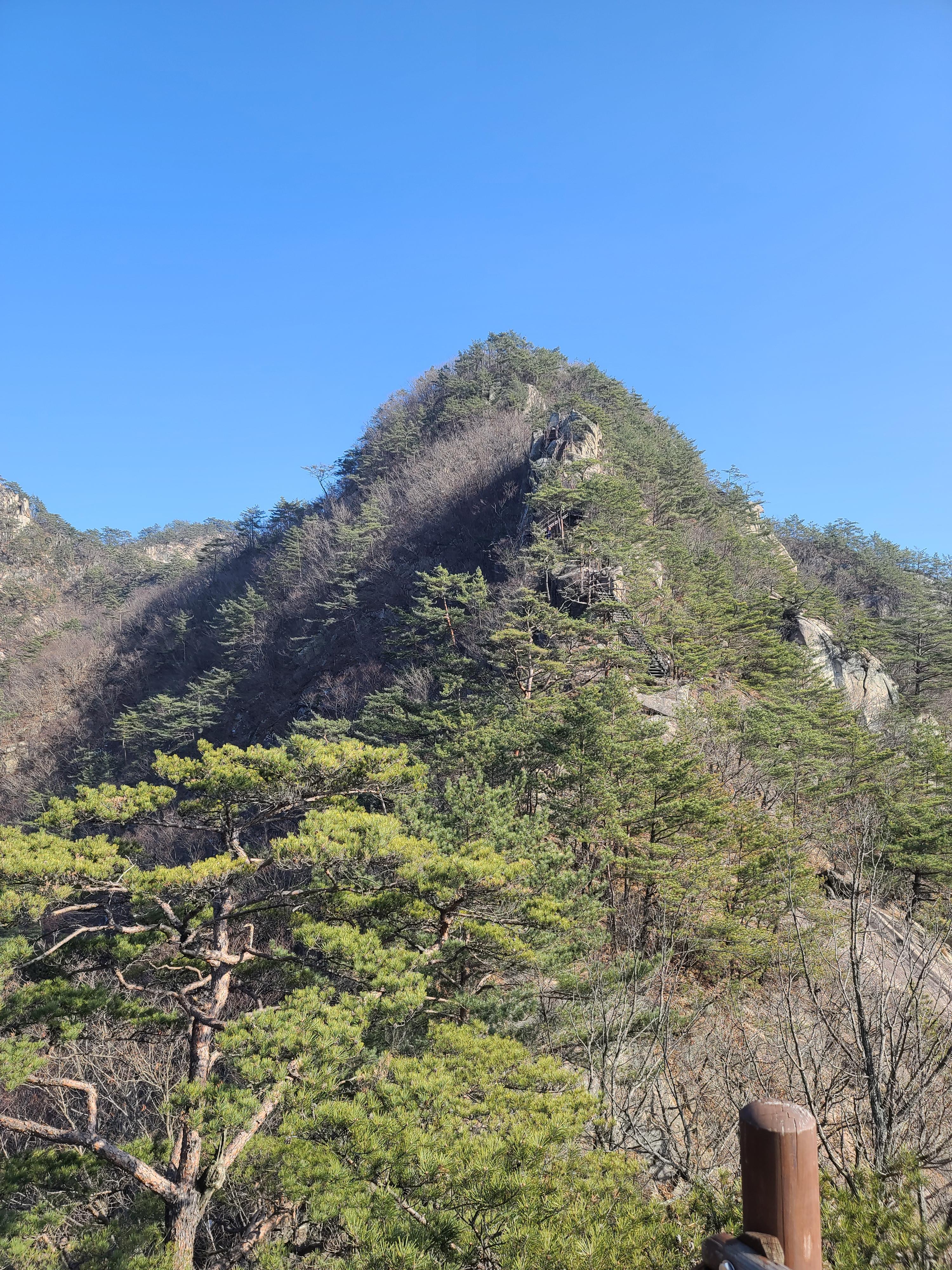 우측 마주 보는 곳 비탈면에 선바위가 조망되고