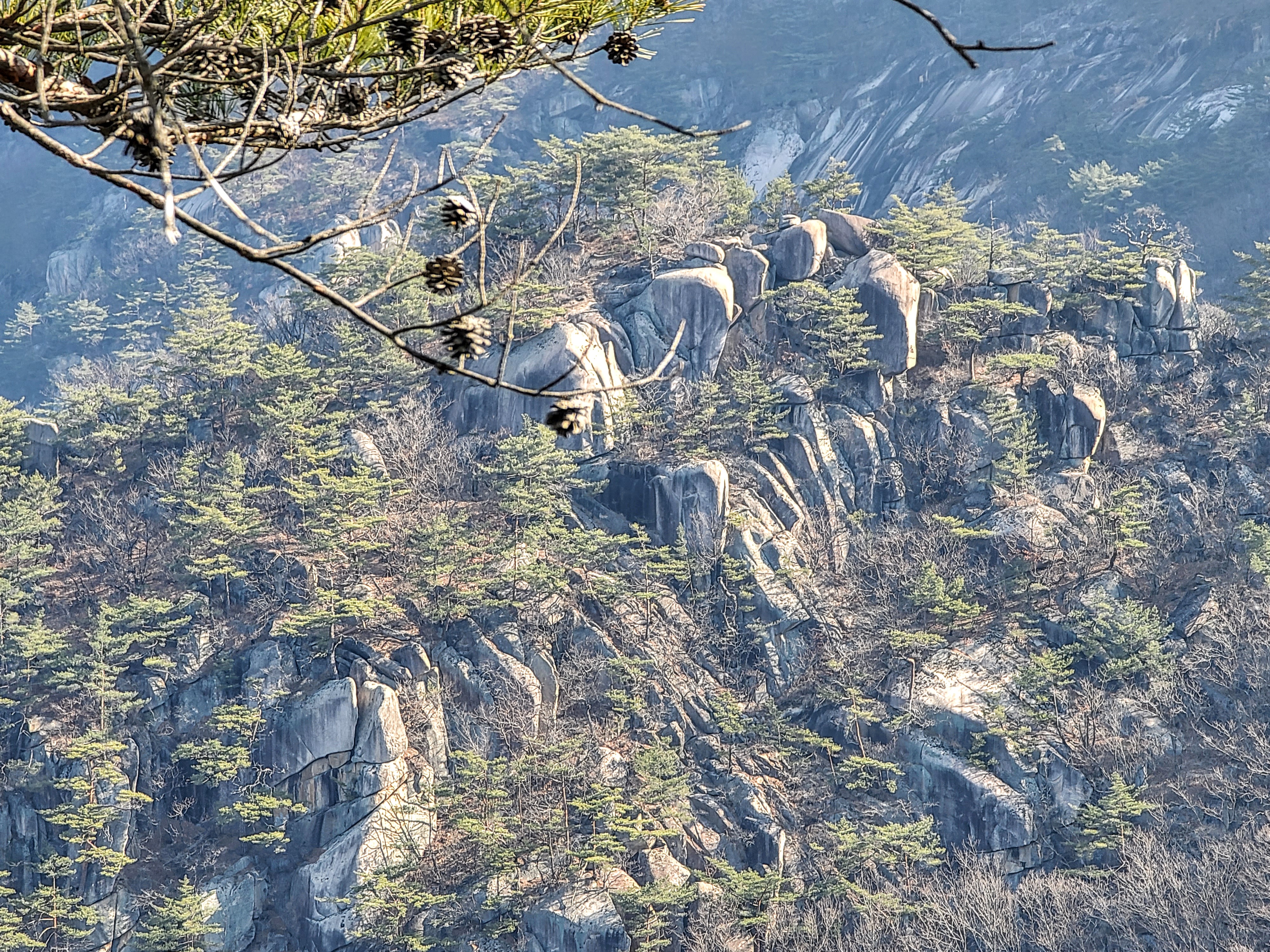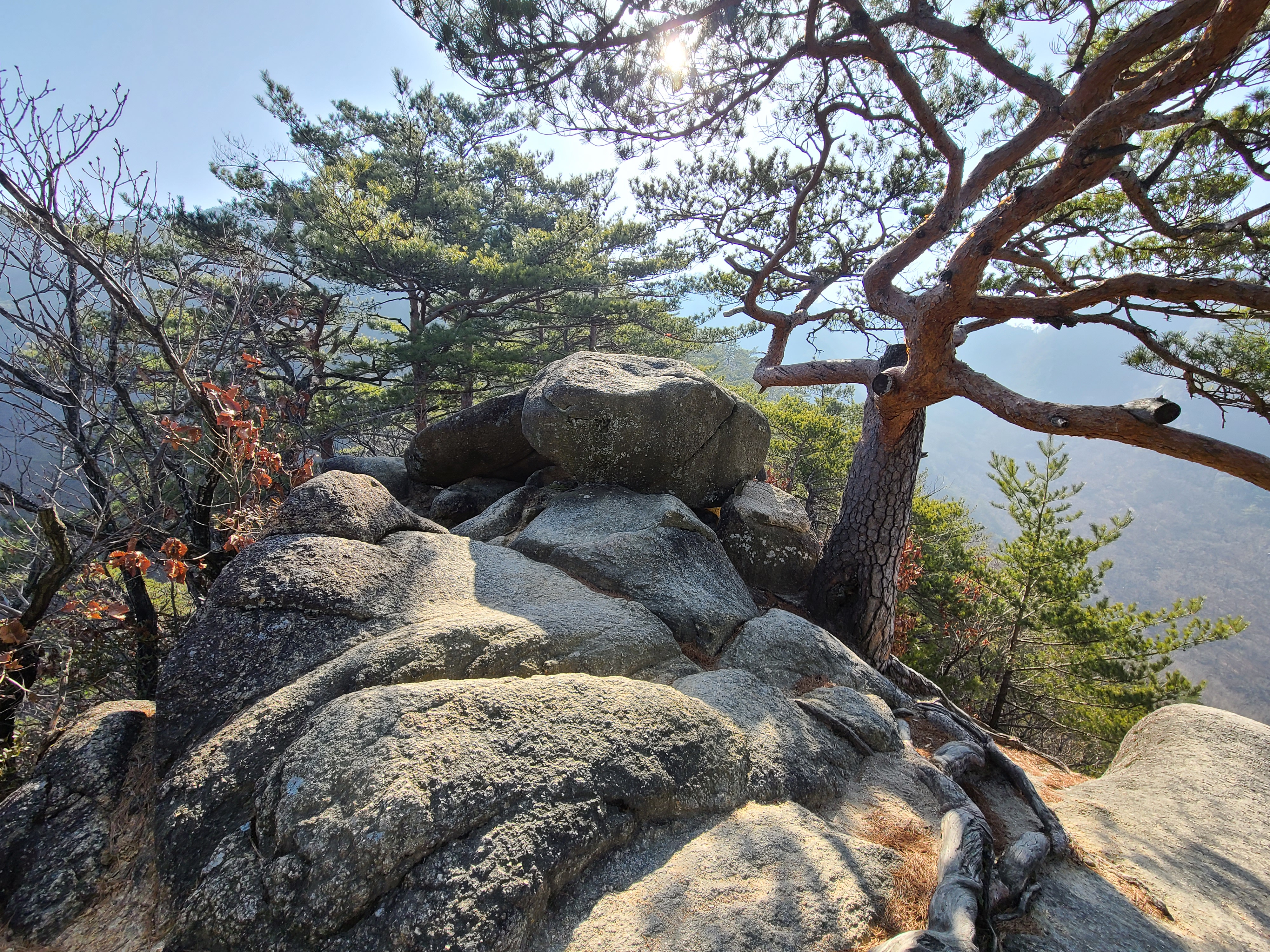 눈 아래 바위군이 만물상처럼 모여 있고 사방으로 암릉 군과 기암괴석, 소나무와 괴목... 하지만 이제부터 쇼는 시작일 뿐이지요