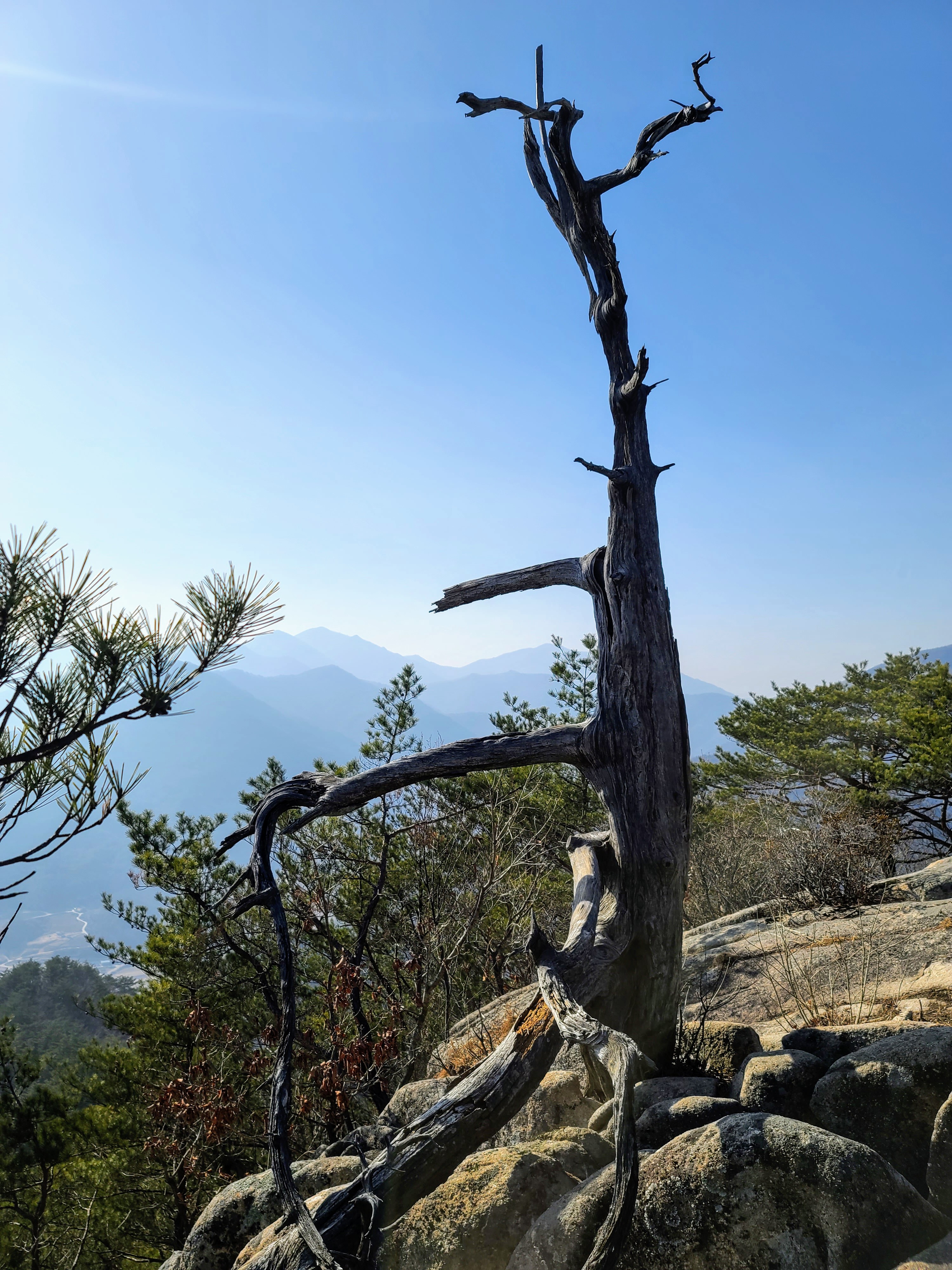 천 길 벼랑에 버티고 서있는 고사목은 보는 이의 감탄을 자아냅니다.