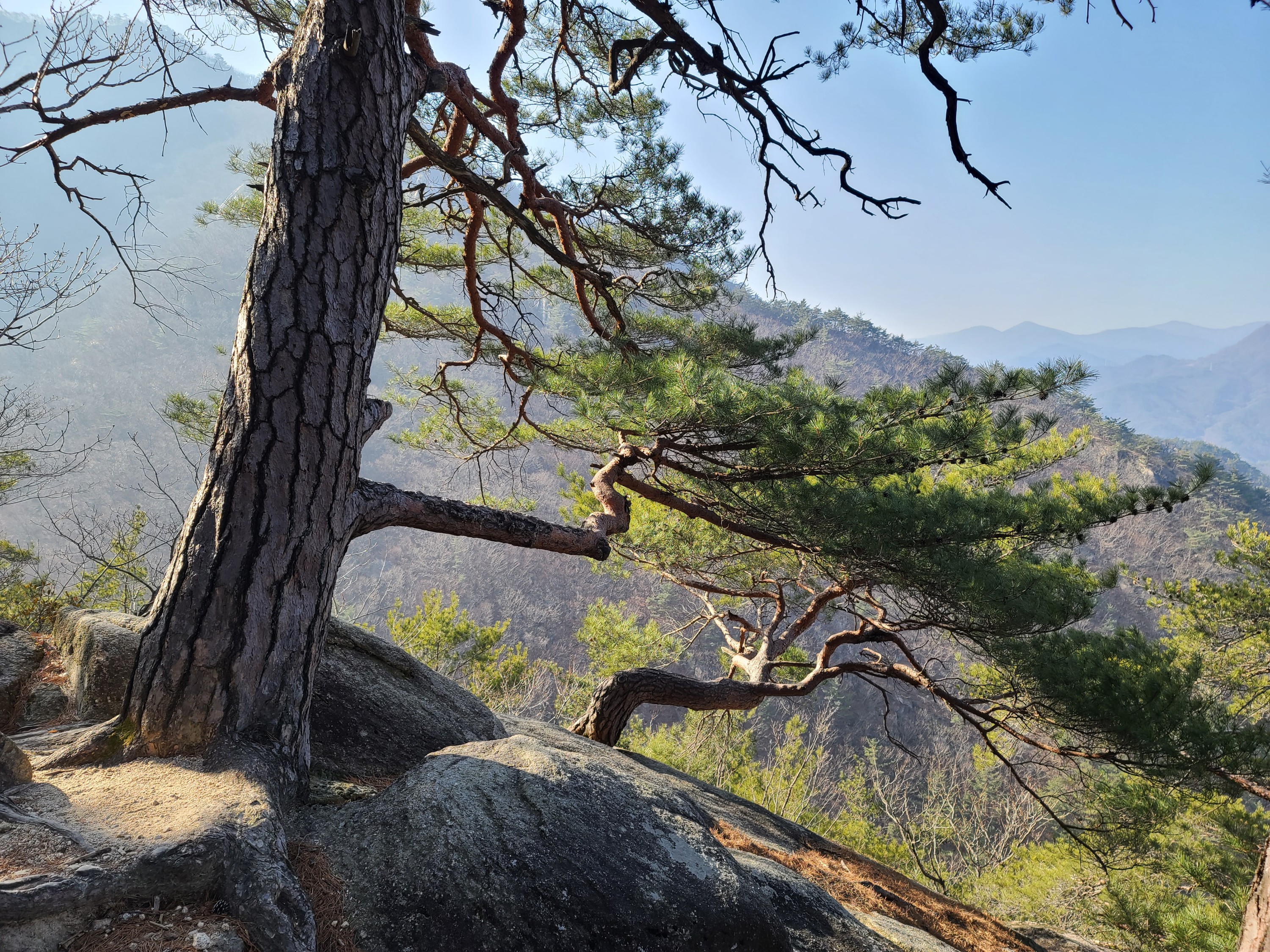 잘난 금강송이라면 오래전 베어져 목재로 쓰였을지도 모르지만 바위틈을 뚫고 자란 굽어진 소나무는 지금까지 숲을 지켜온 일등 공신입니다.