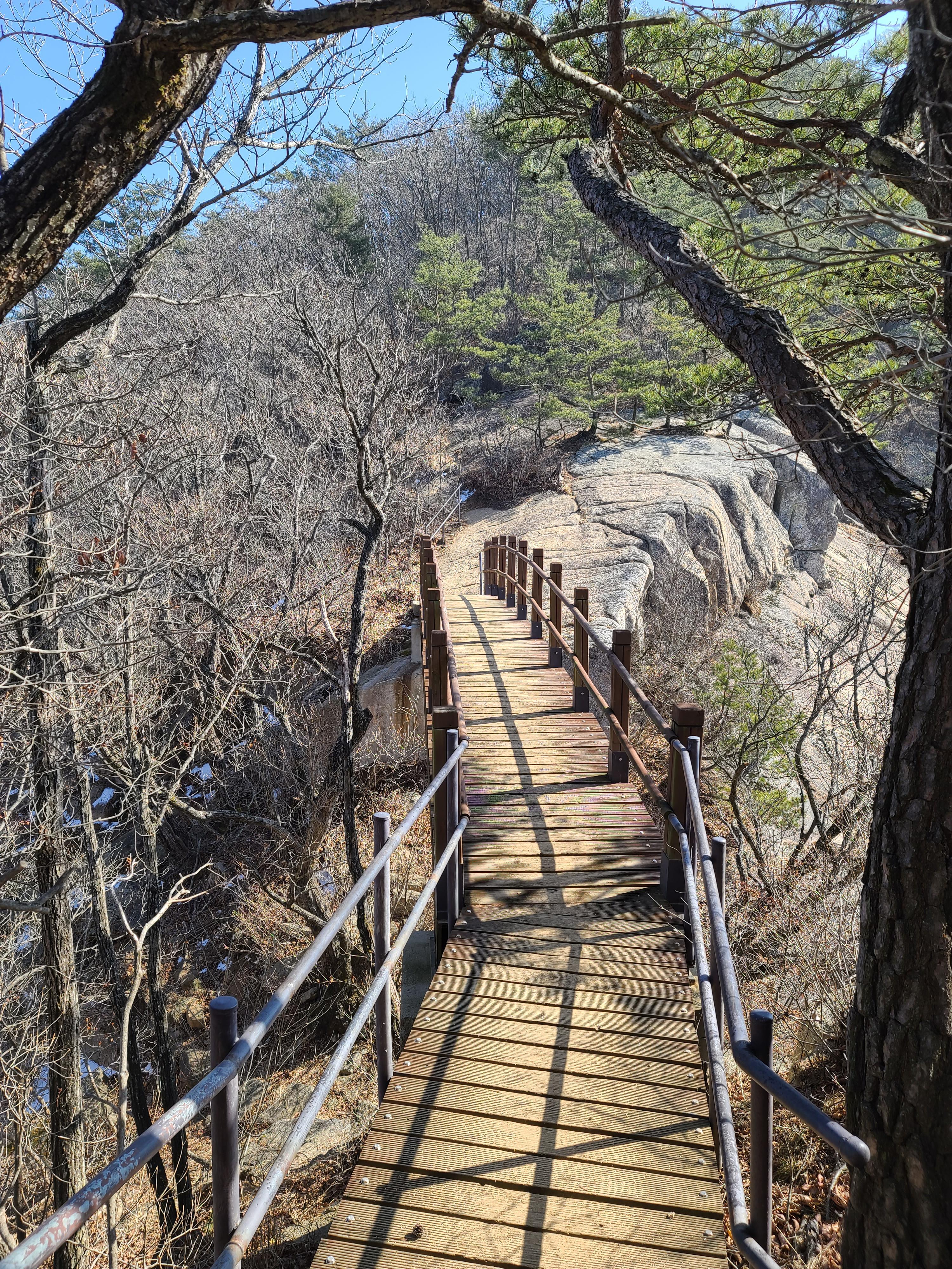 목교를 지나며 마지막 정상을 위한 오름입니다.