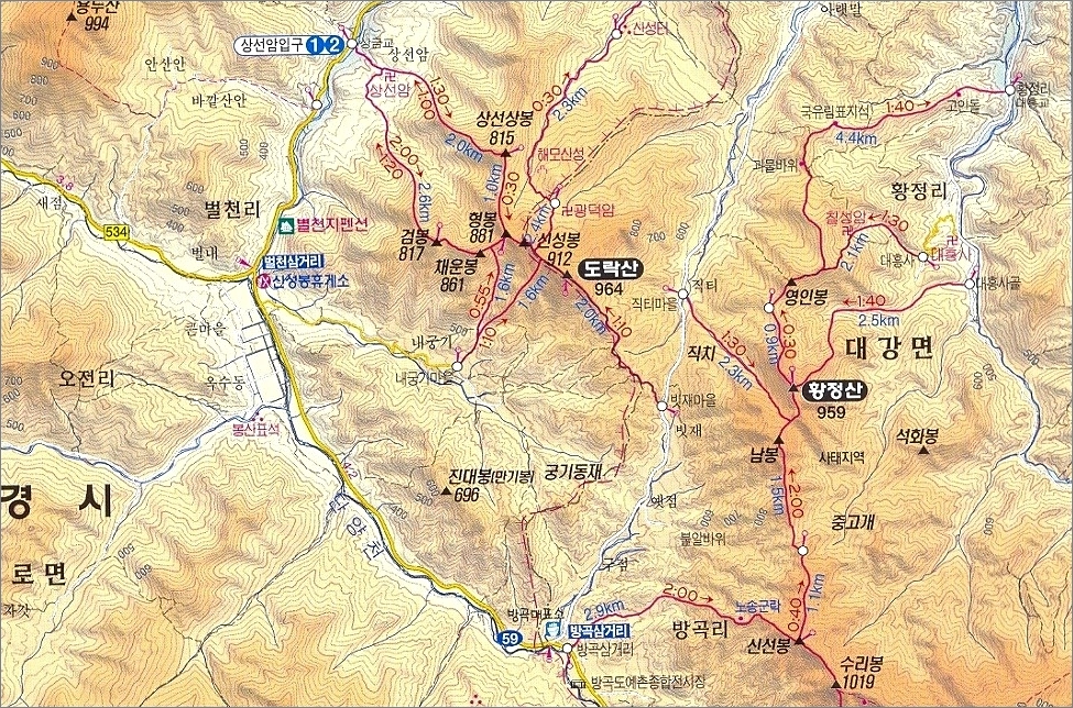 도락산을 산행하기 위한 코스는 상선암에서 시계방향으로 환종주함이 일반적입니다.