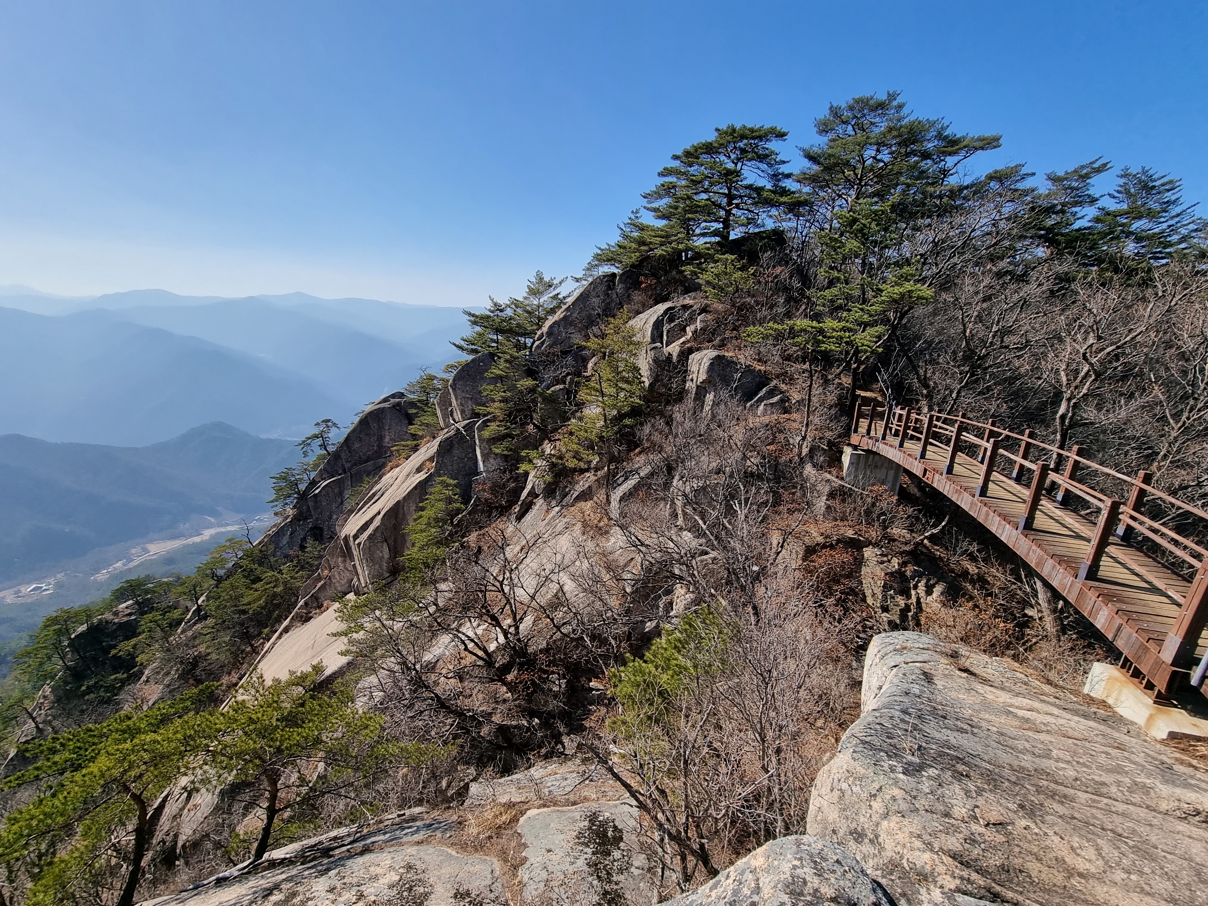 검봉을 지나 하산 상선암까지는 1.5km 시점부터는 더 이상 오름은 없고 계속 고도를 낮추는 구간으로 지루한 목책 계단으로 이어집니다.