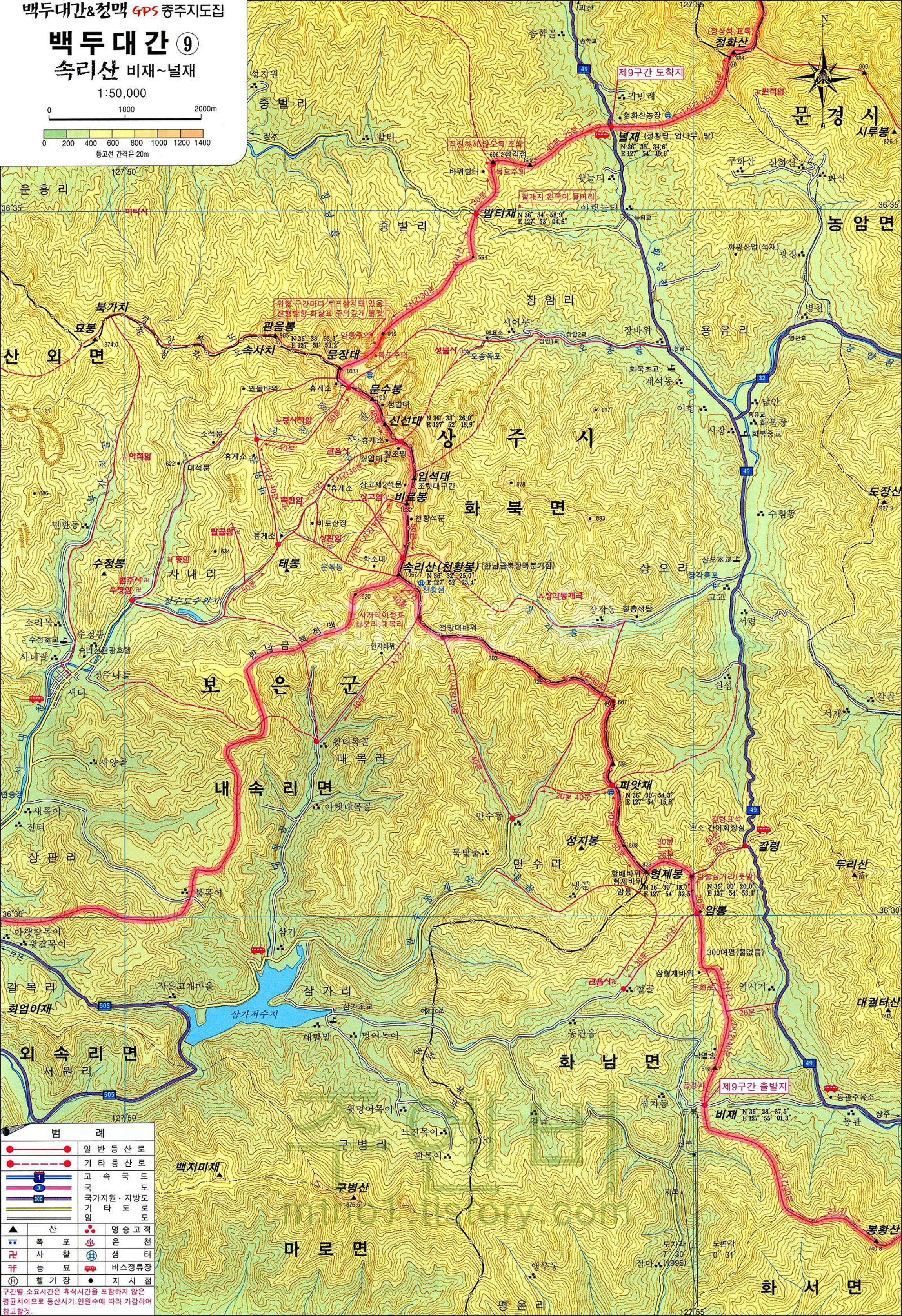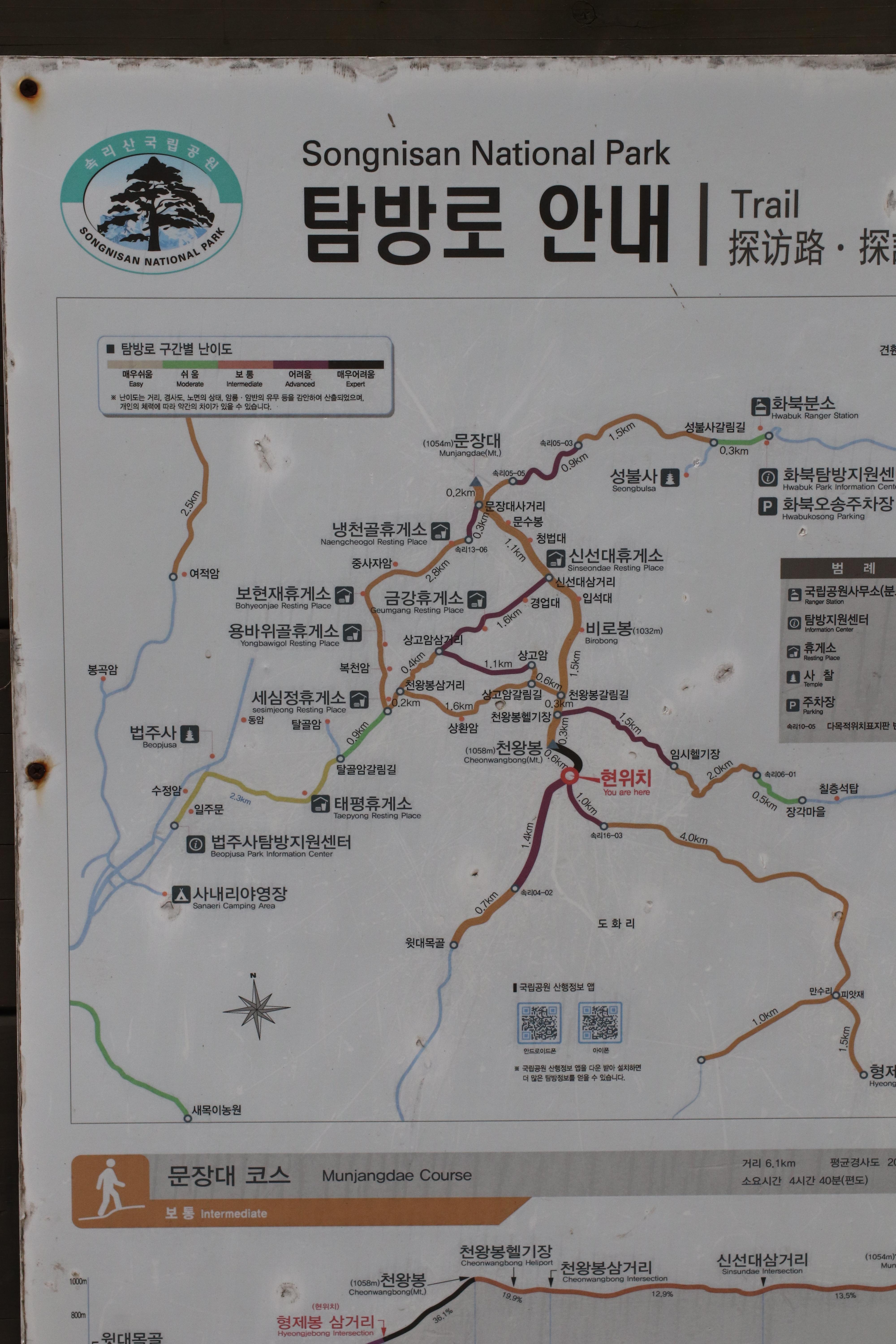 산행 코스 : 피앗재 - 천왕봉 - 신선대 - 문장대 - 화북 15.3km