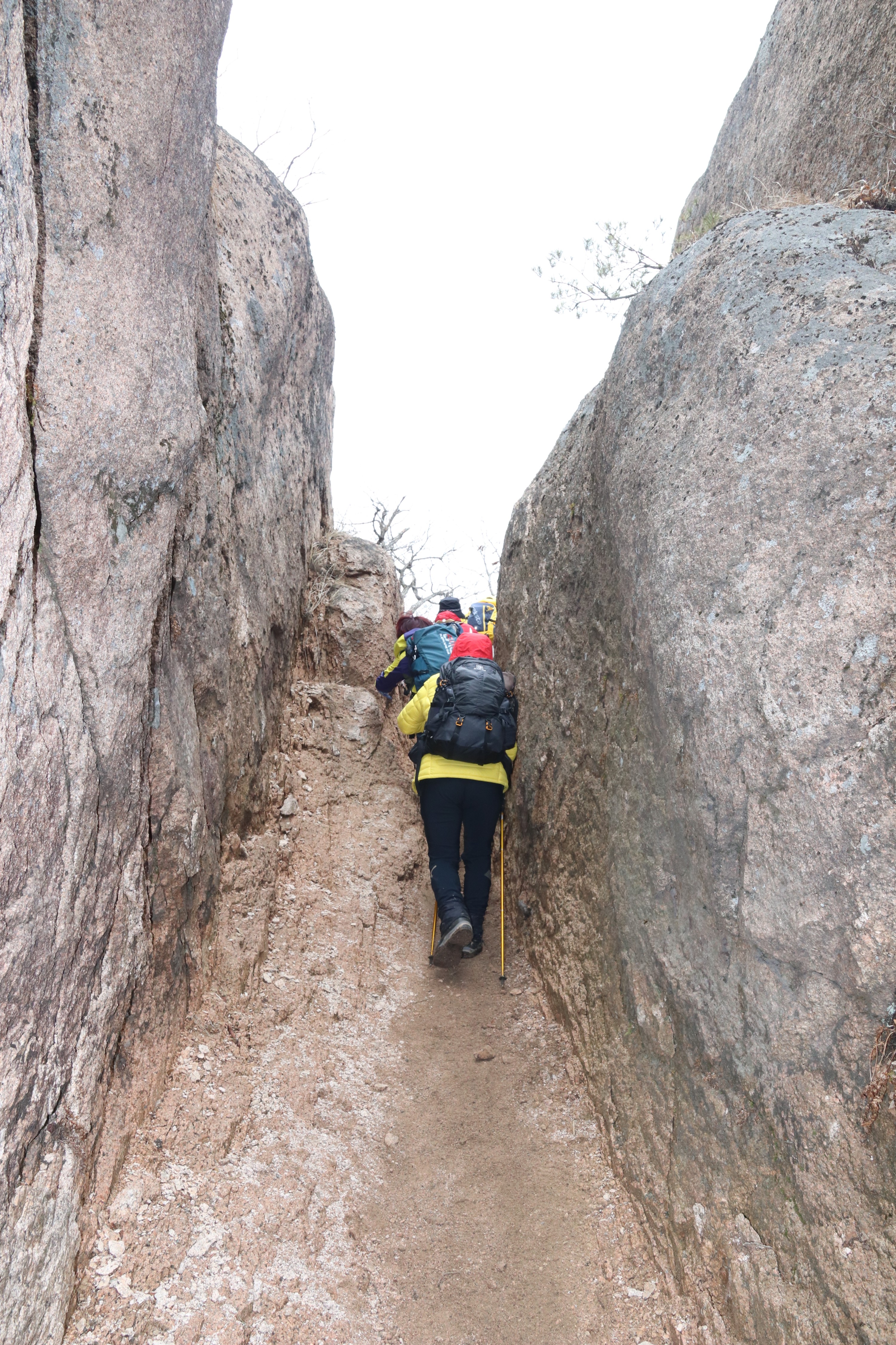 속리산의 8석문 가운데 하나인 석문을 통과하고