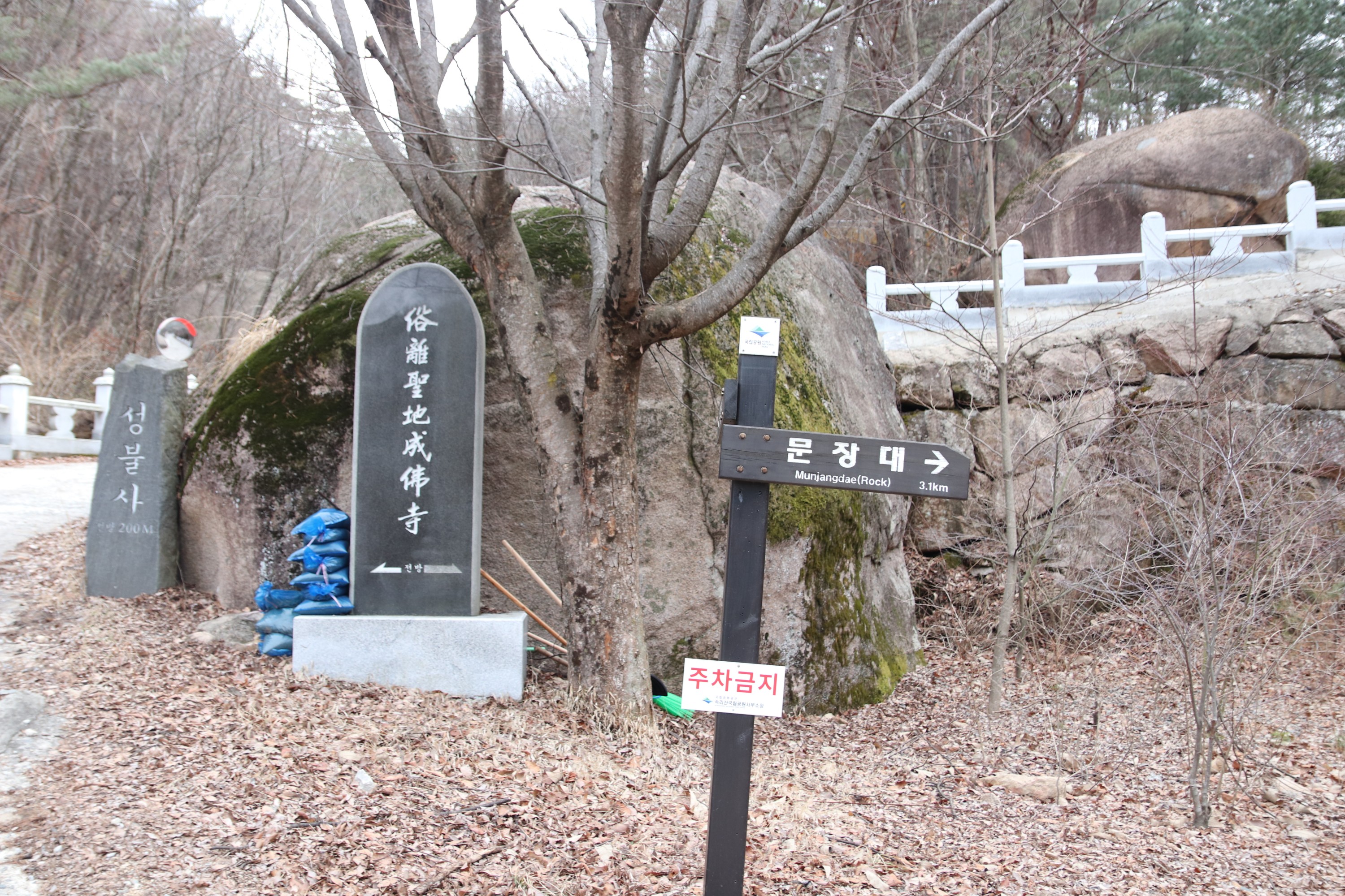 화북 갈림길을 지나 200미터에 위치합니다. 성불사 까지 골 깊은 계곡을 따라 3.1km 내려갑니다.