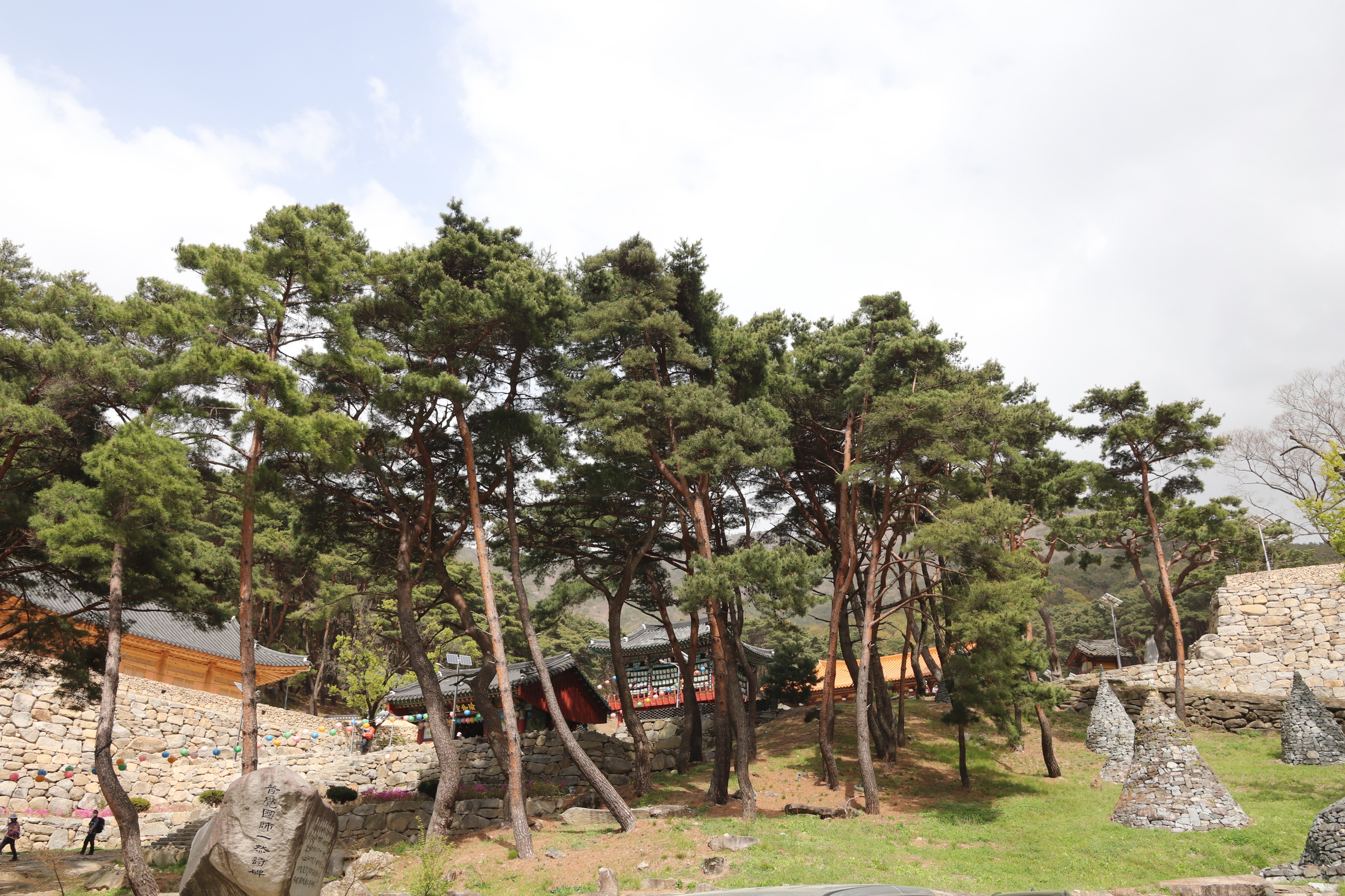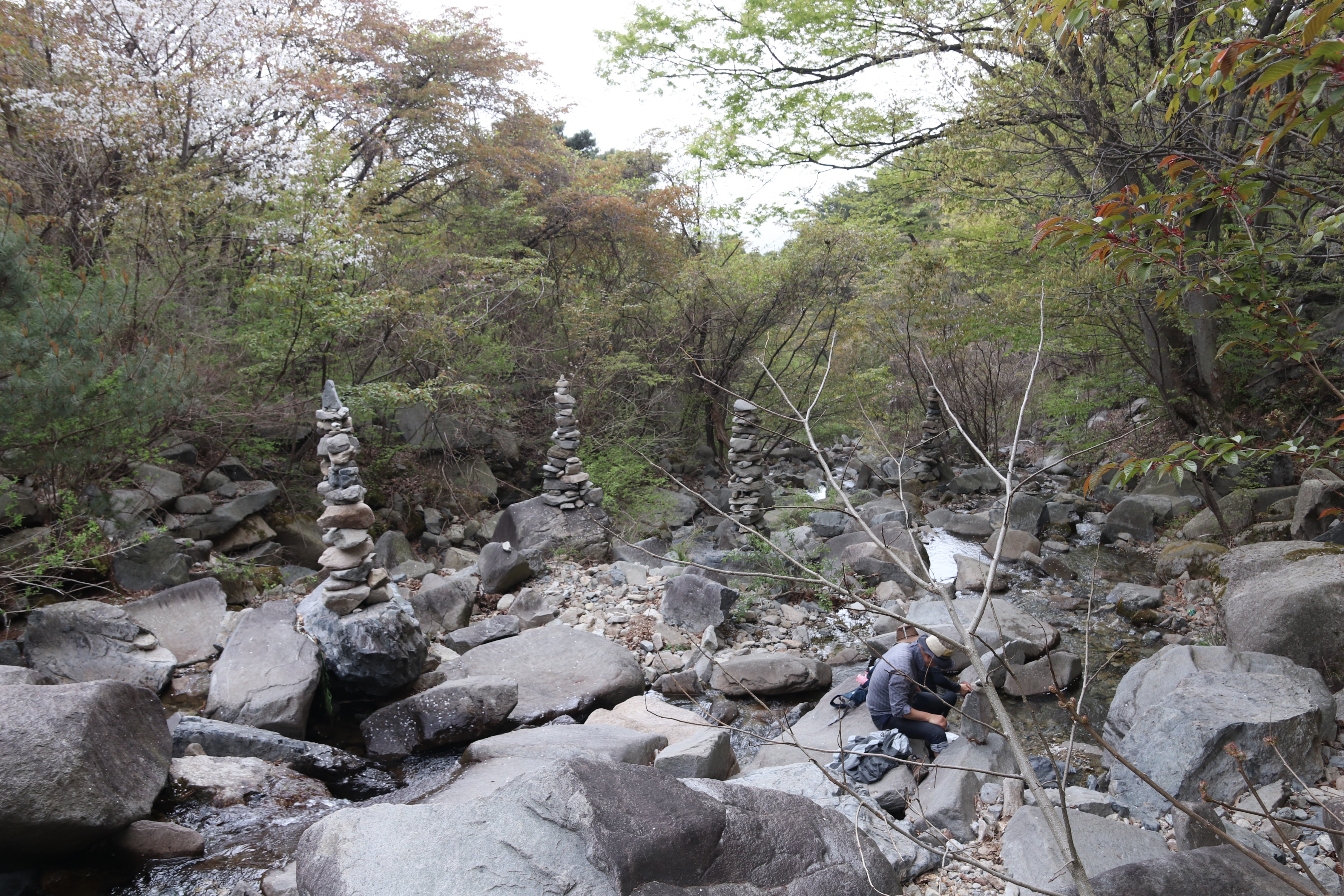 일주문 옆으로 까만 돌무더기와 그위로 쌓아놓은 수많은 돌탑