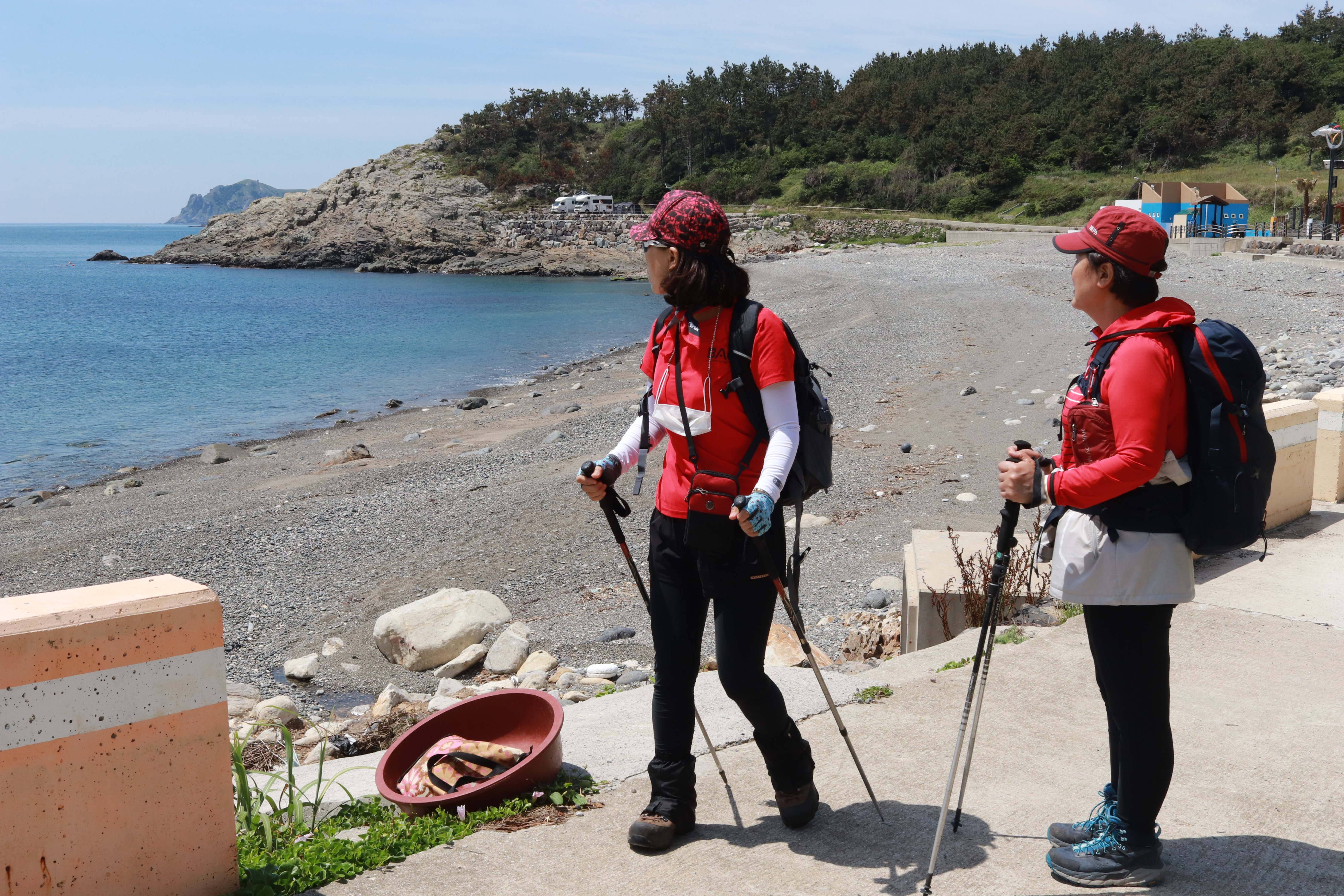 민박집에서 픽업 온 차량에 무거운 짐을 보내고 태청 수산 마트 앞에서 트레킹을 출발합니다.