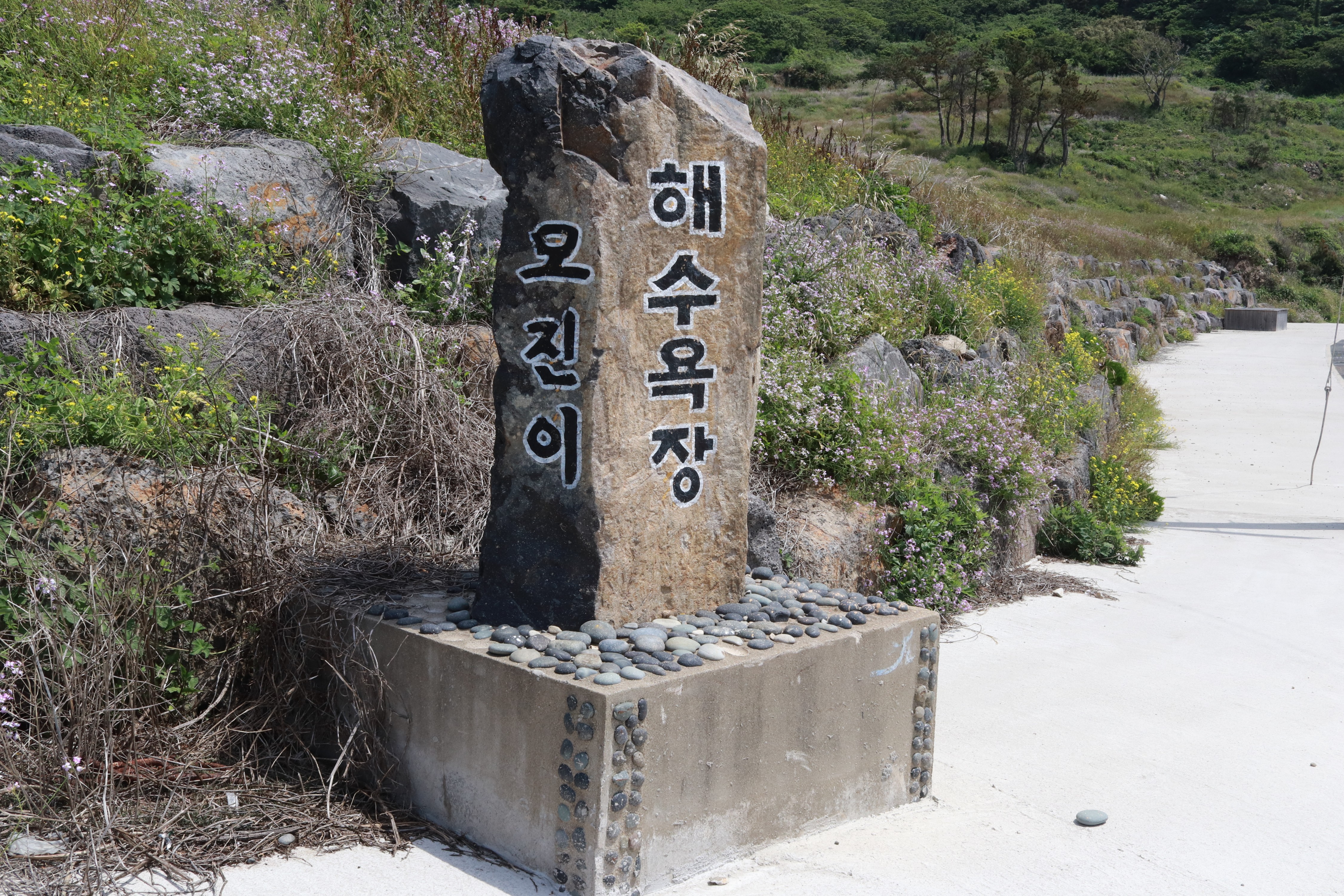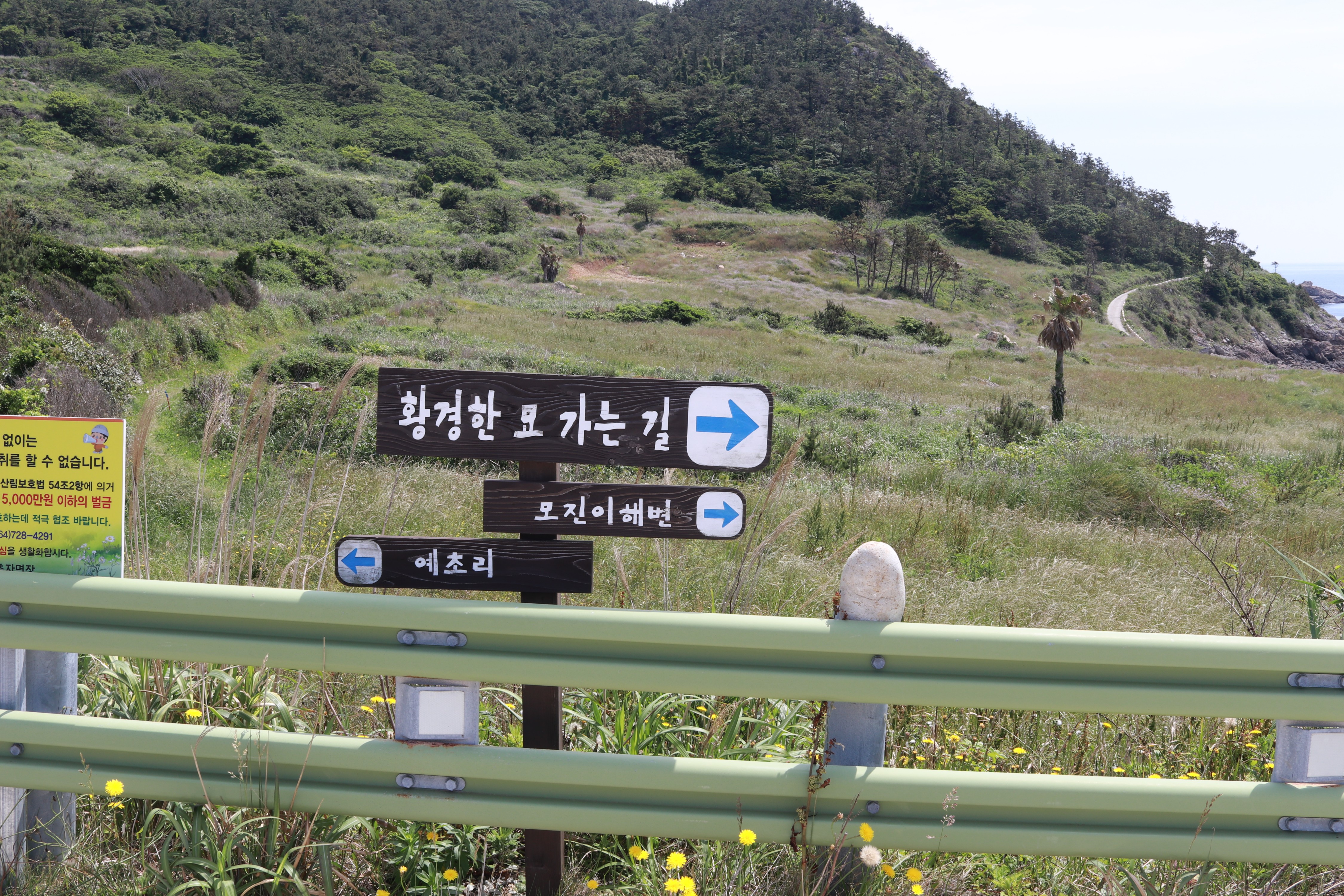 신양항의 태청수산마트뒤 언덕 골목길을 넘어서면 모진이 해수욕장이 나옵니다. 이곳에서 황경한의 묘를 찾아 이동합니다.