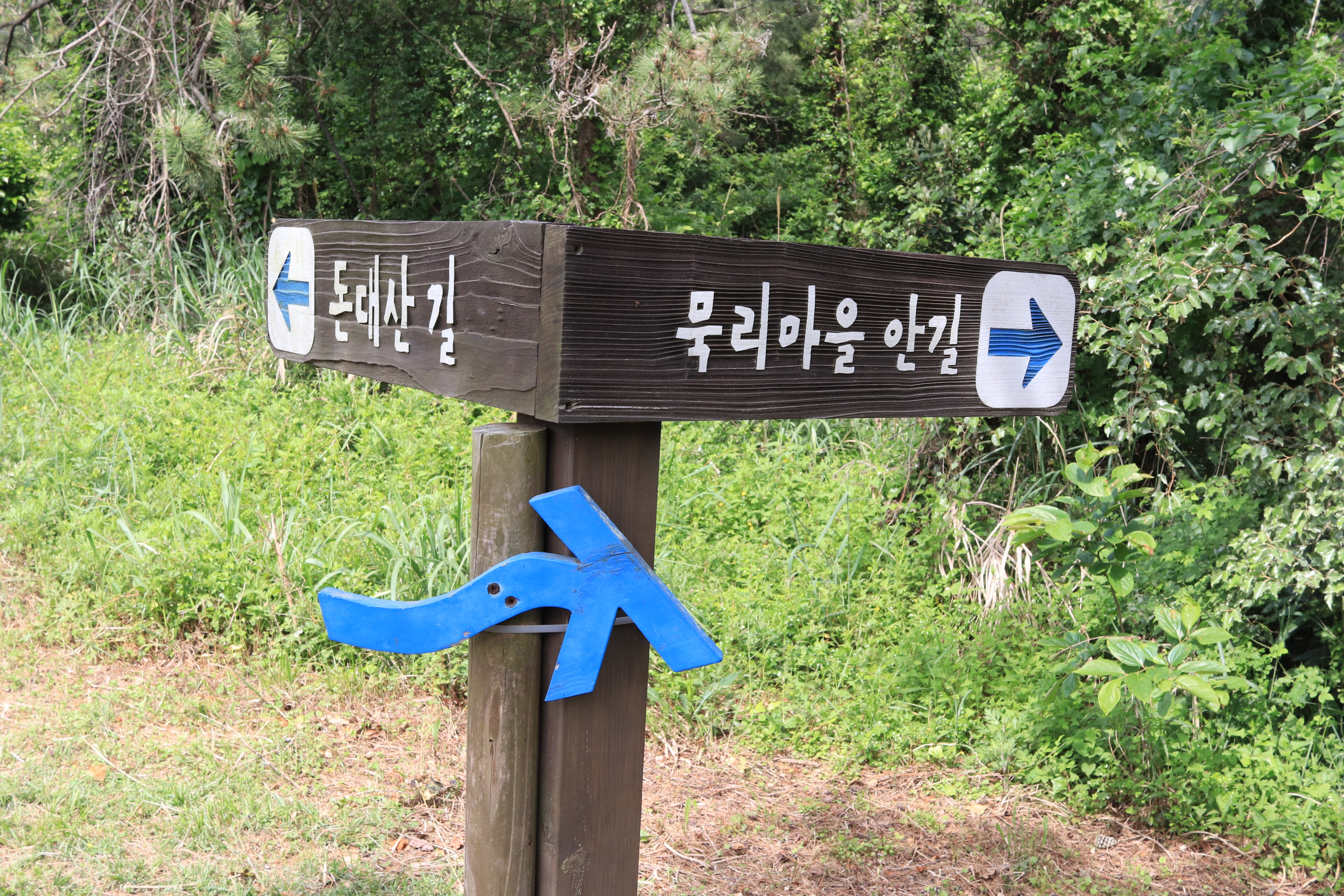 엄바위 장승을 지나며 왼쪽으로 샛길이 있습니다. 도로 따라 걸어가도 돈대산 입구에서 만나게 됩니다.
