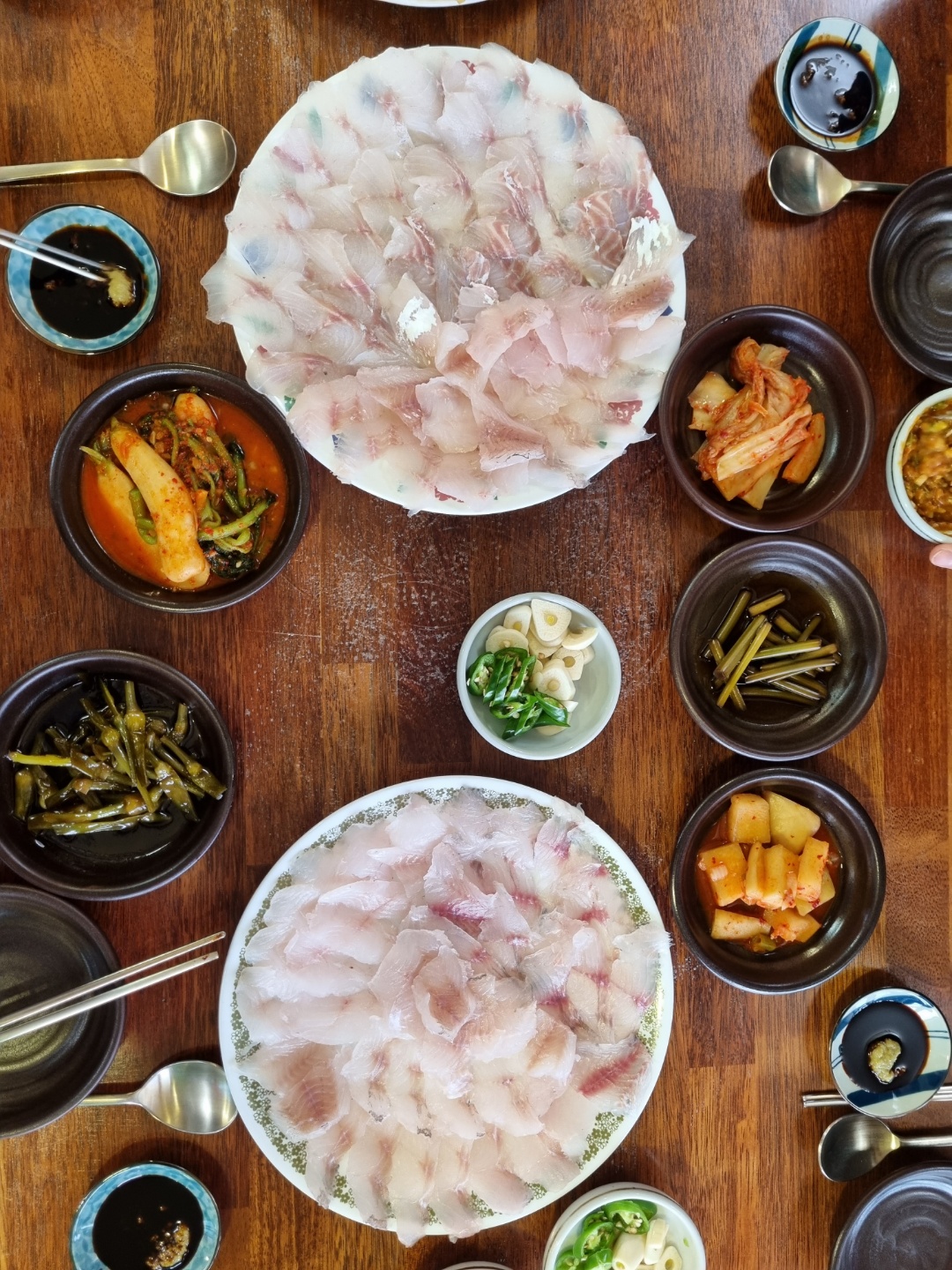 민박집에서 준비한 자연산 농어회와 소주 한잔 후 피곤함을 덜어보고 숙소로 돌아갑니다.