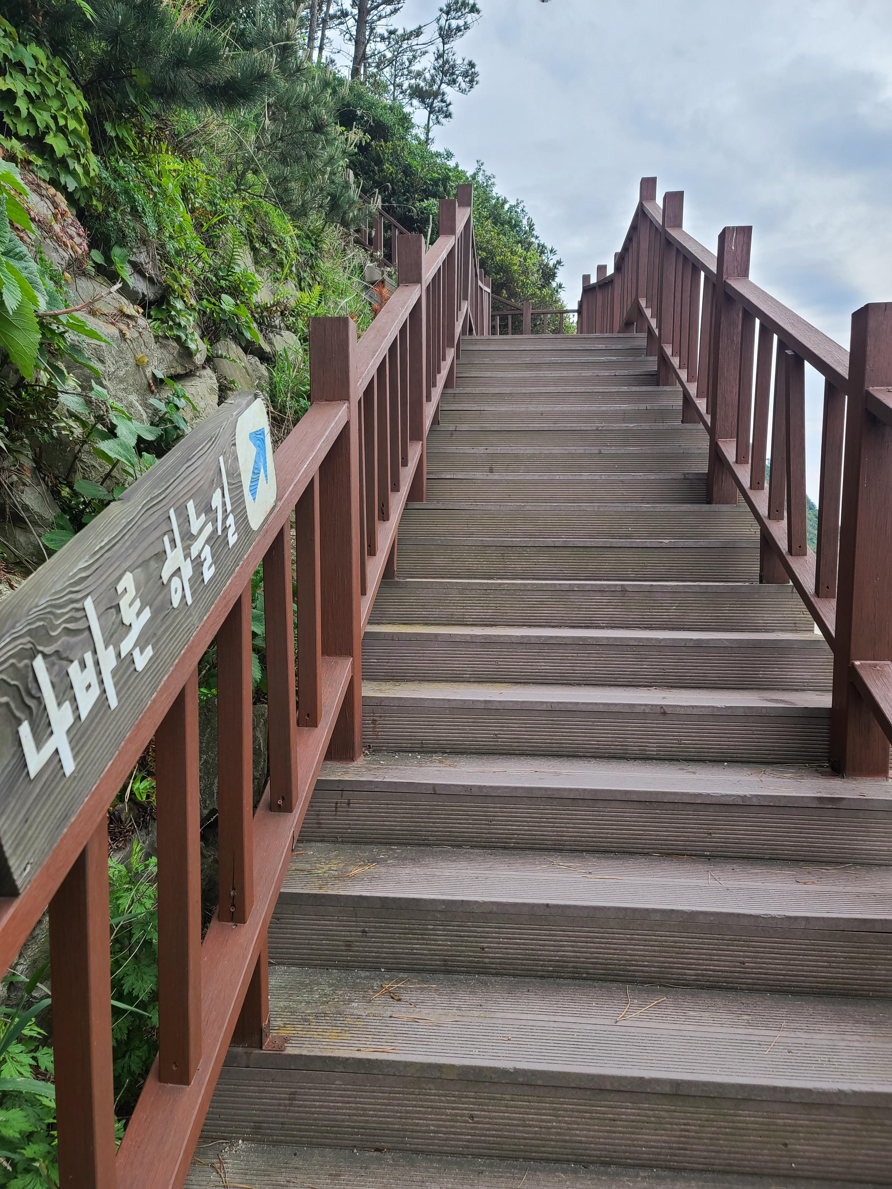 우측의 포장도로를 따라 경사가 급한 해안길로 오르고