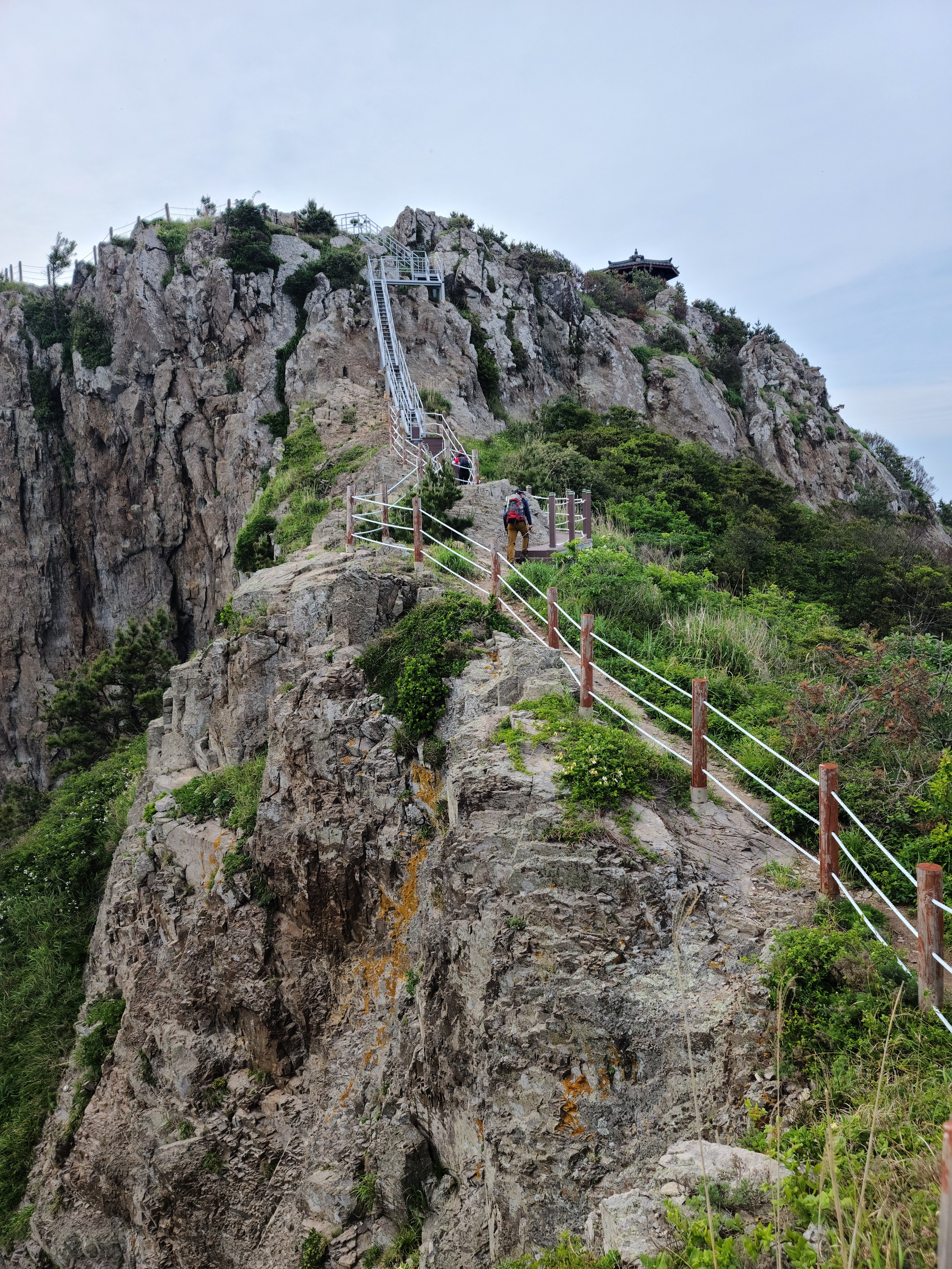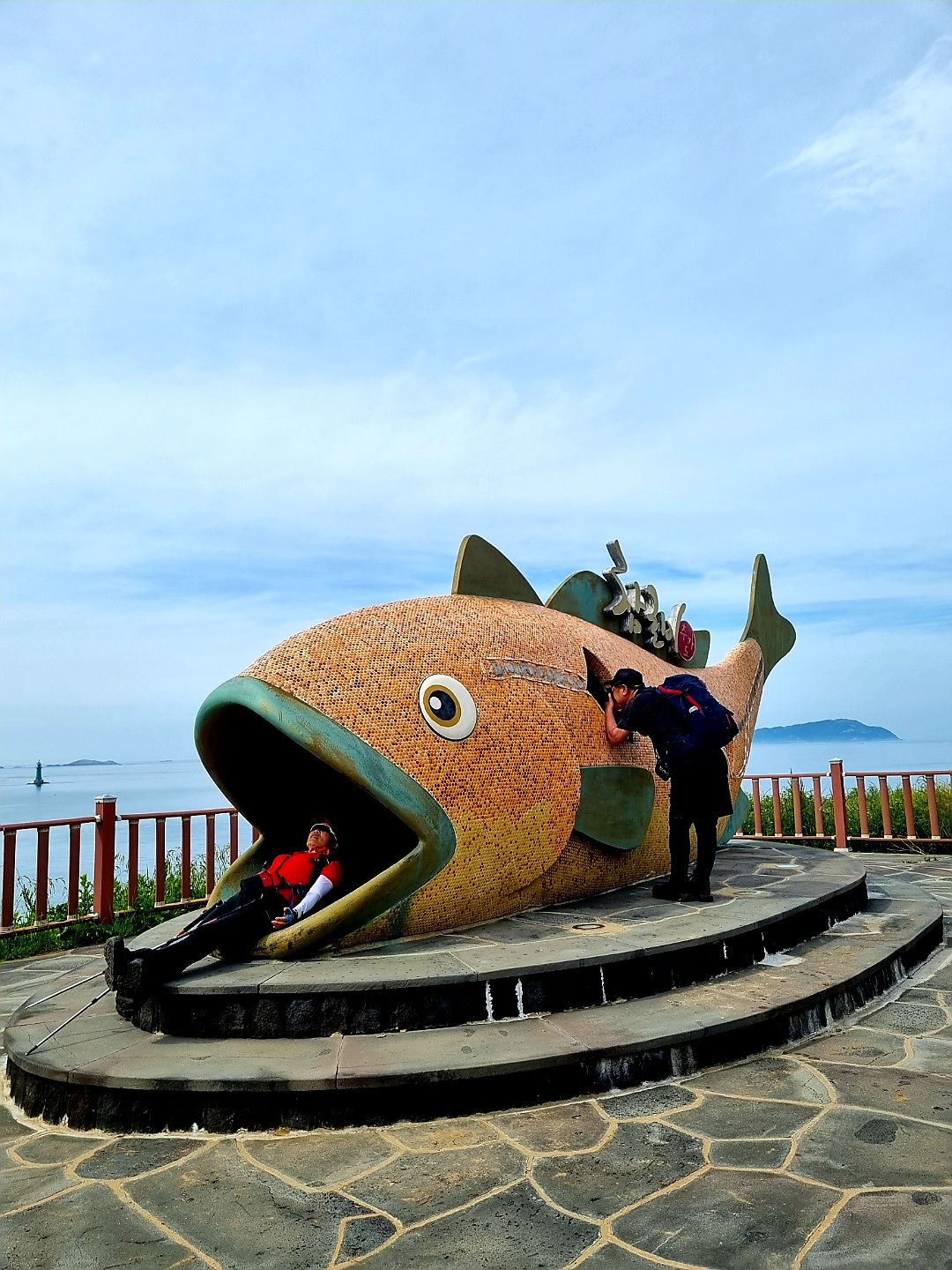 추자도에는 정자가 곳곳에 셀 수 없이 많이 있어 트레킹중 비가 오더라도 쉬어갈 수 있는 장소가 많습니다. 오션-뷰인 이곳에서 세상에서 가장 맛있는 라면을 먹습니다.