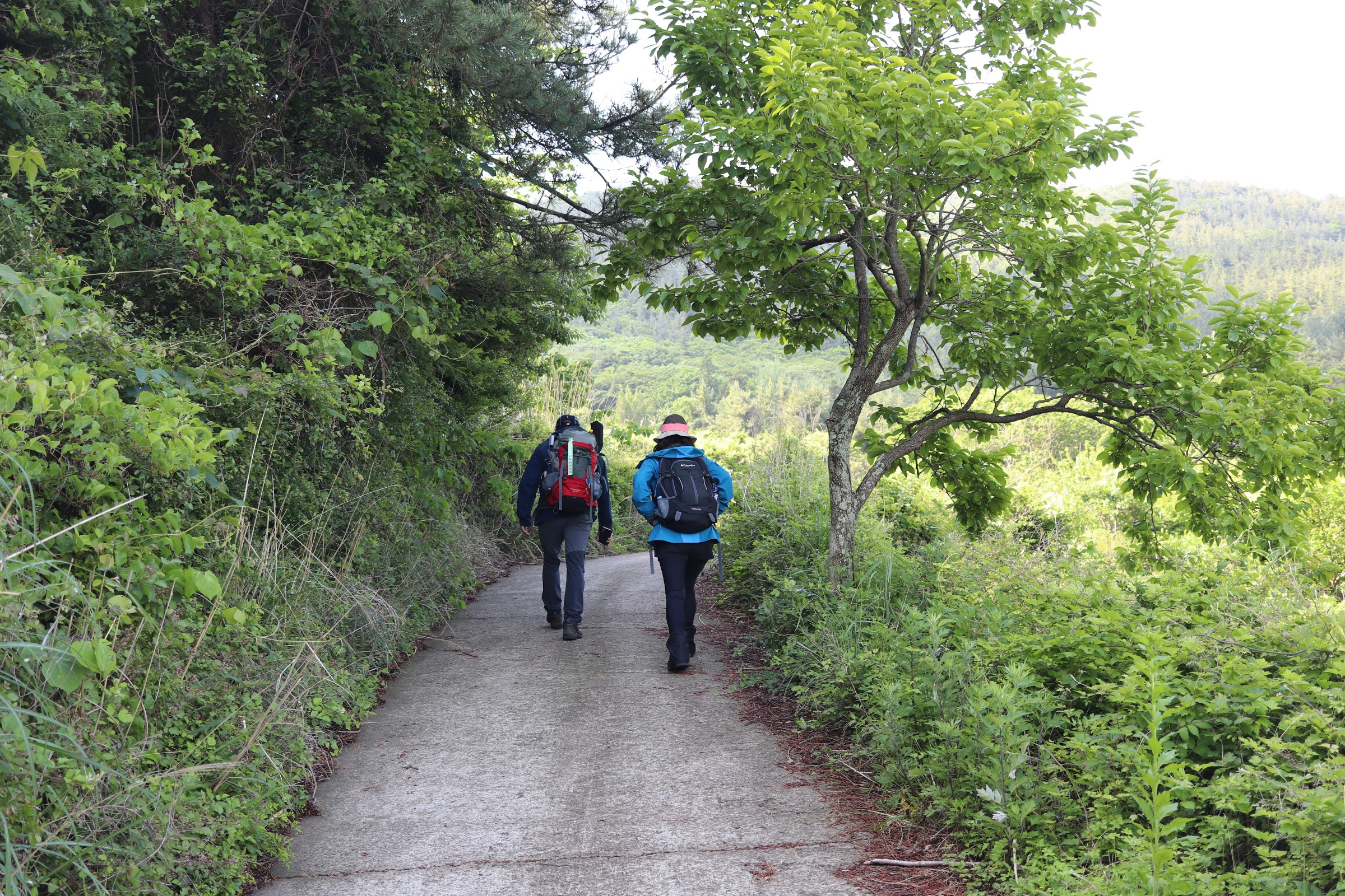 짧게 다시 내려와 갈림길에서 청계리 방향으로 하산하여 5코스와 합류하고