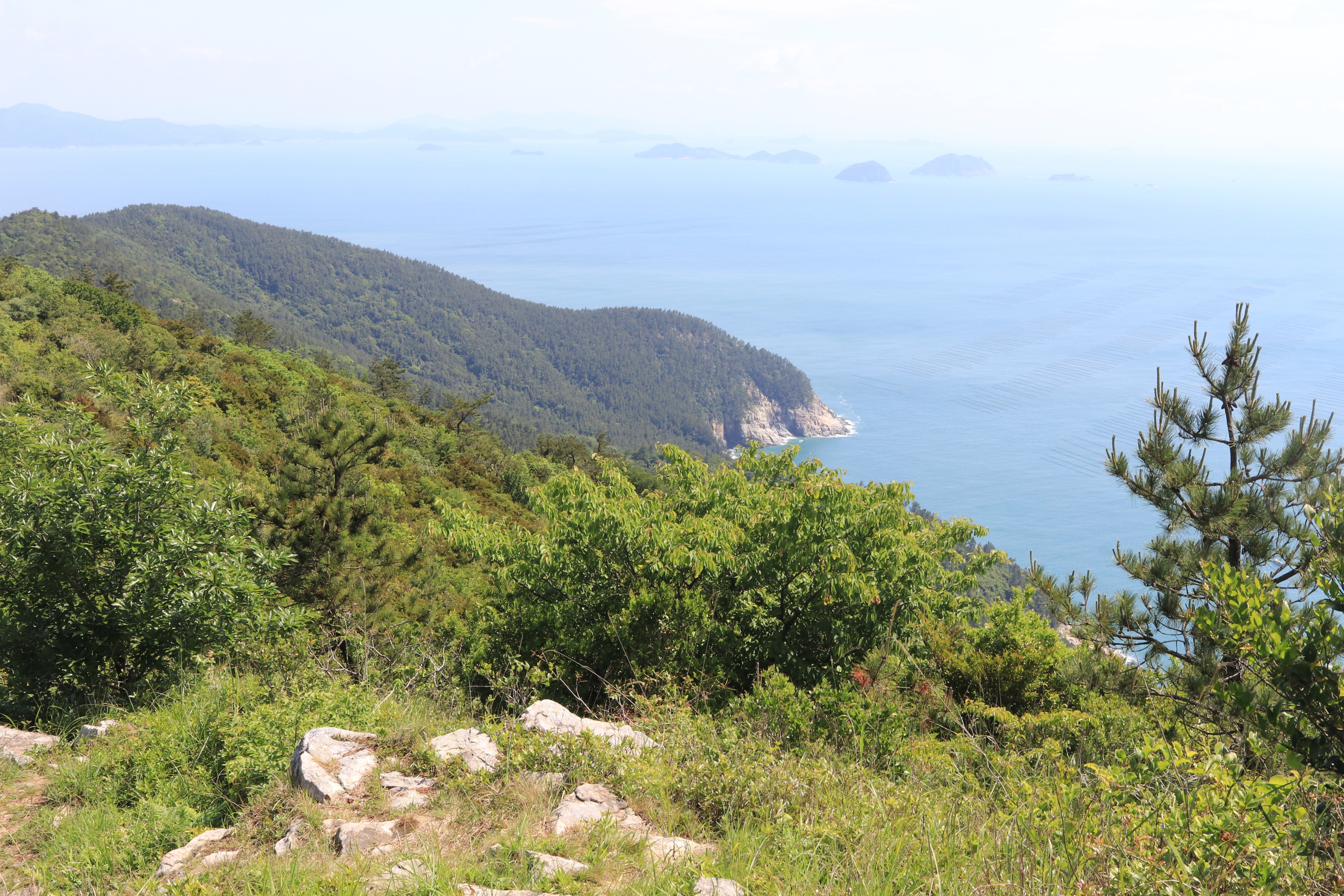 상서재 이후는 능선 따라 남해의 푸른 바다와 소군도를 바라보며 정상까지 향합니다. 청정바다의 해풍을 쐬며 자연과의 말없는 교감에 마냥 상쾌해집니다.