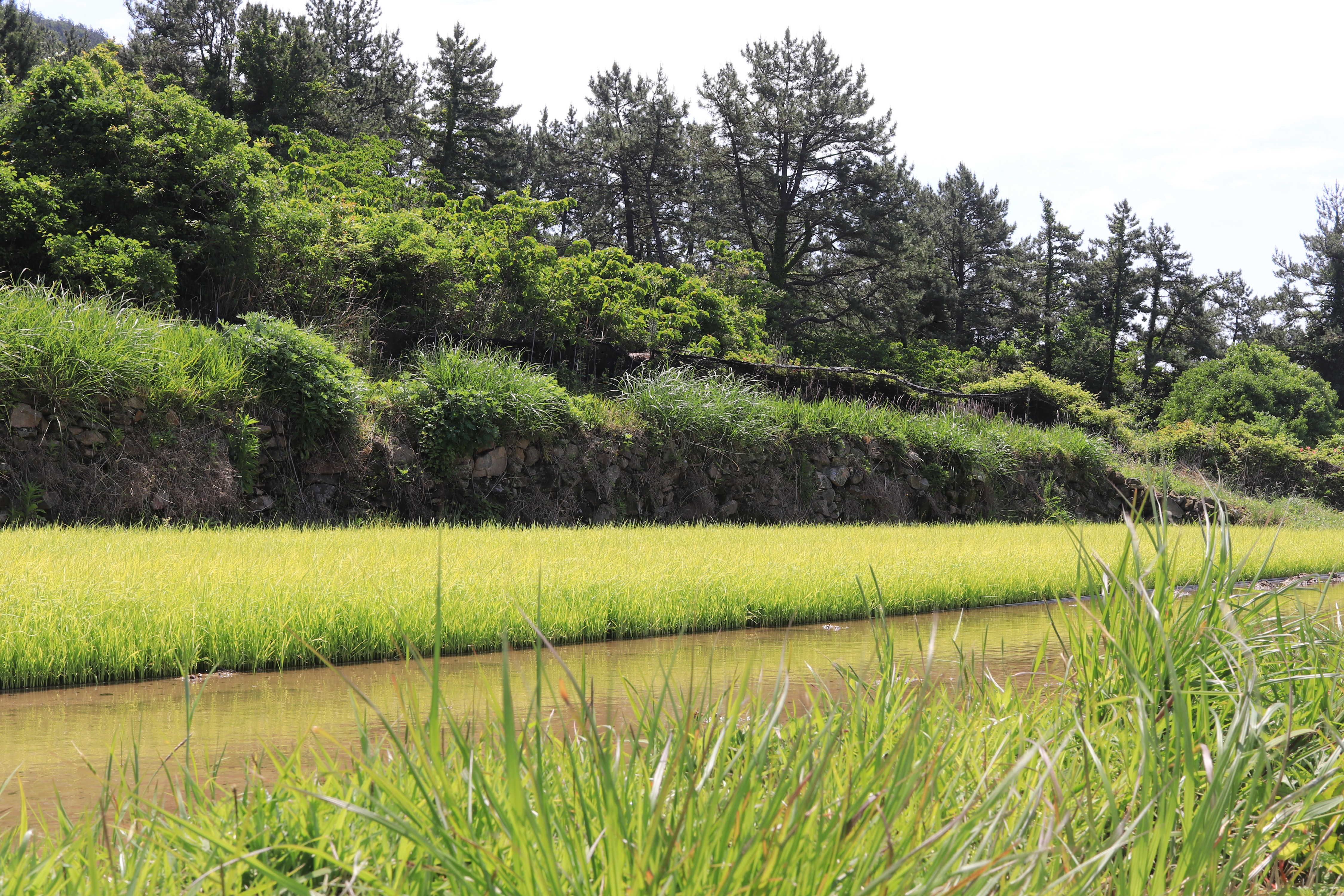 평화로운 섬마을 귀퉁이 못자리에서 연두 연두 한 빛깔의 모가 자라고 있군요. 청산도의 논농사 방식은 특이한 점이 있습니다. 바로 구들장 논이란 방식입니다. 우리가 아는 보통 비탈진 좁은 장소의 다랑이논 방식과는 차이가 있습니다.