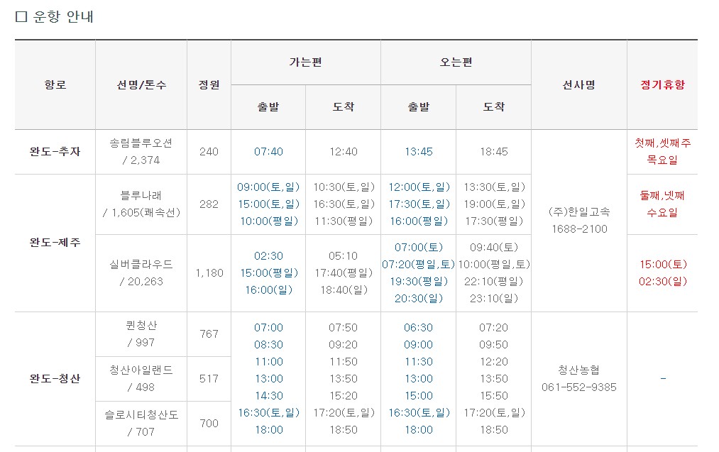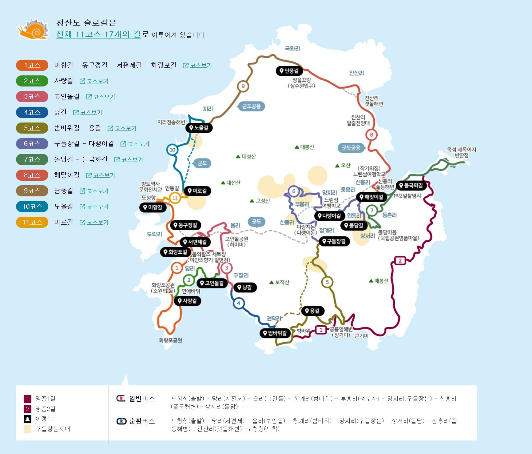 - 마을버스 - 1,000 여객선 시간에 맞춰 청산도 항에서 대기 및 운행합니다.