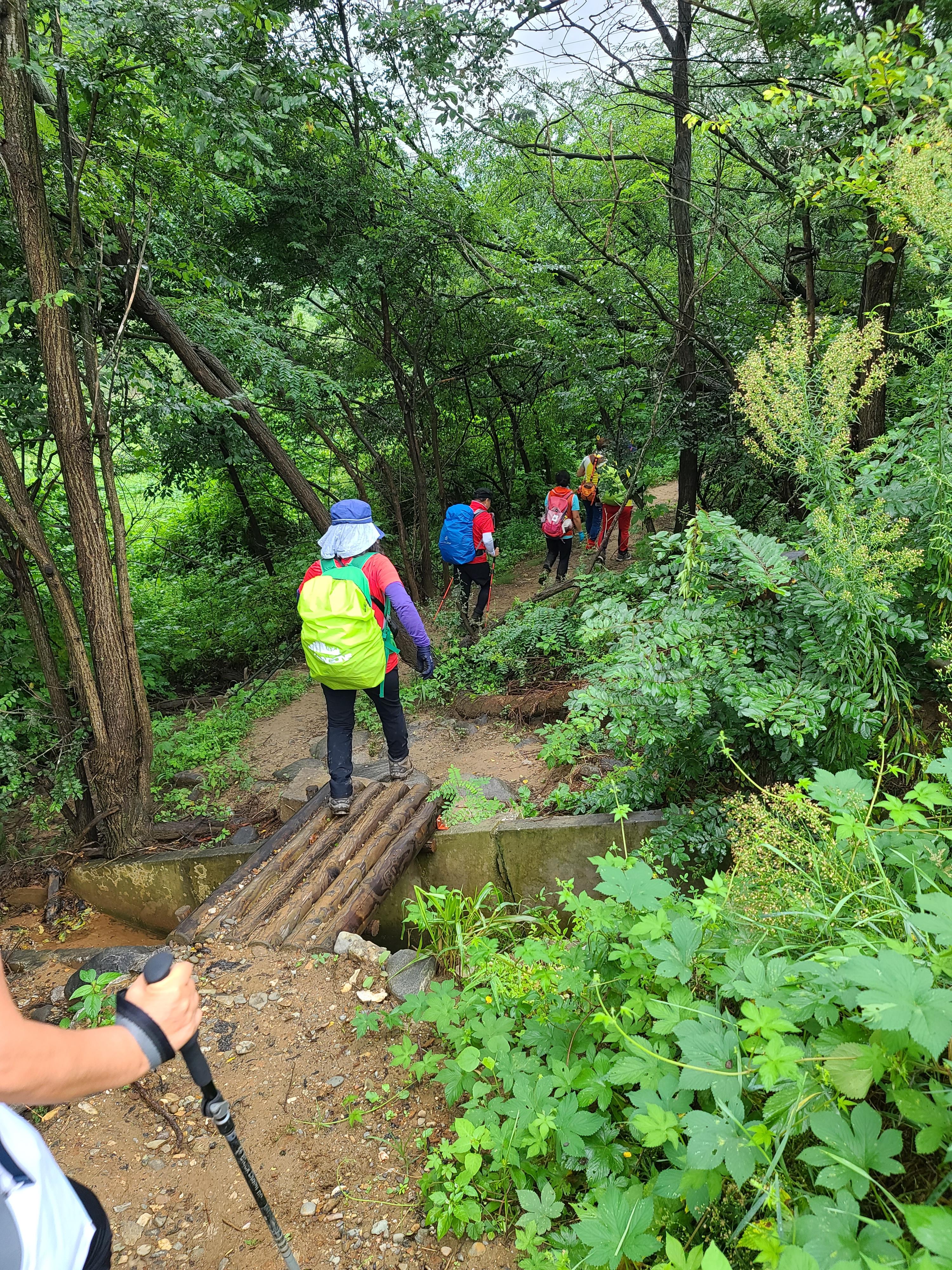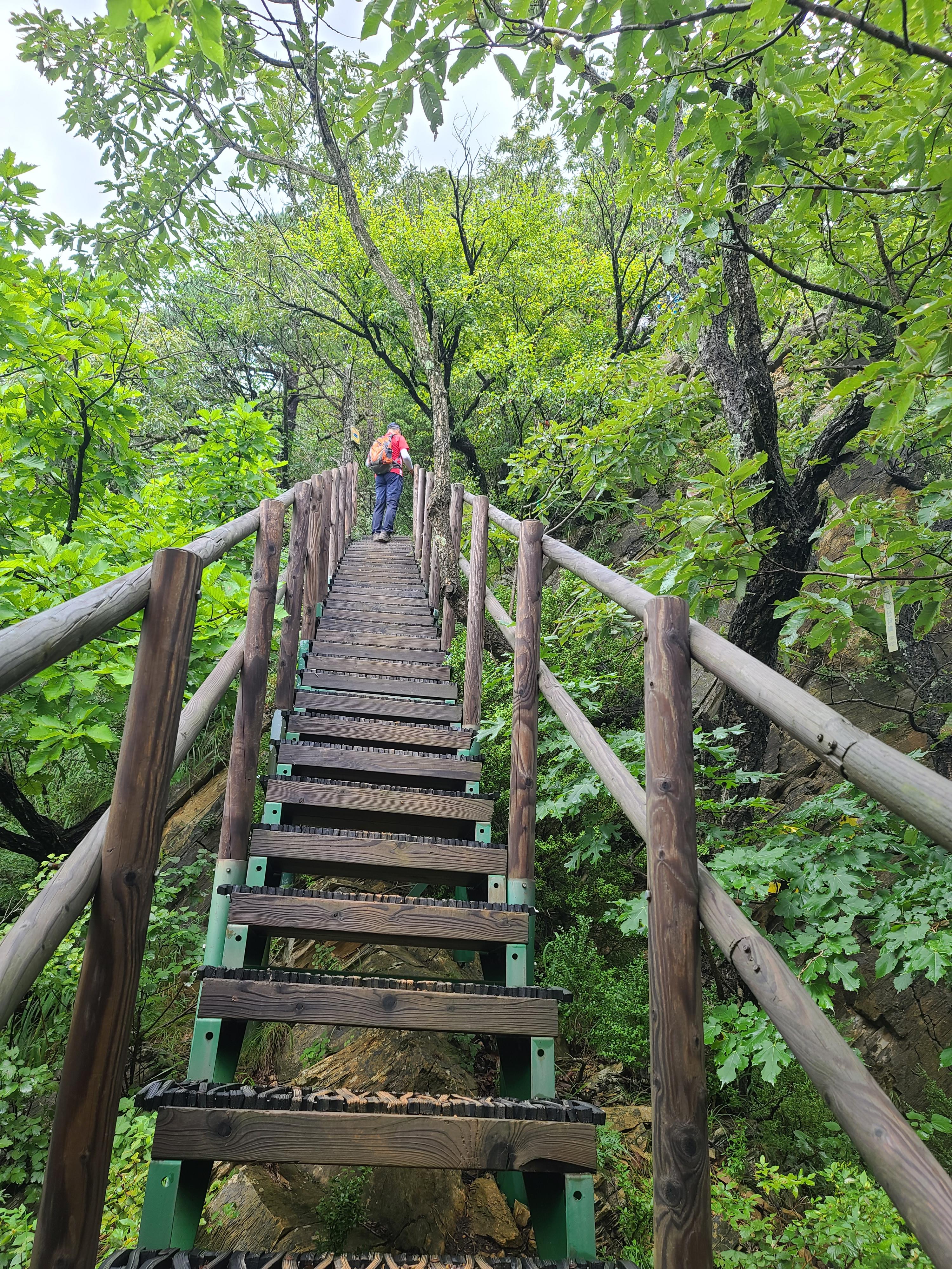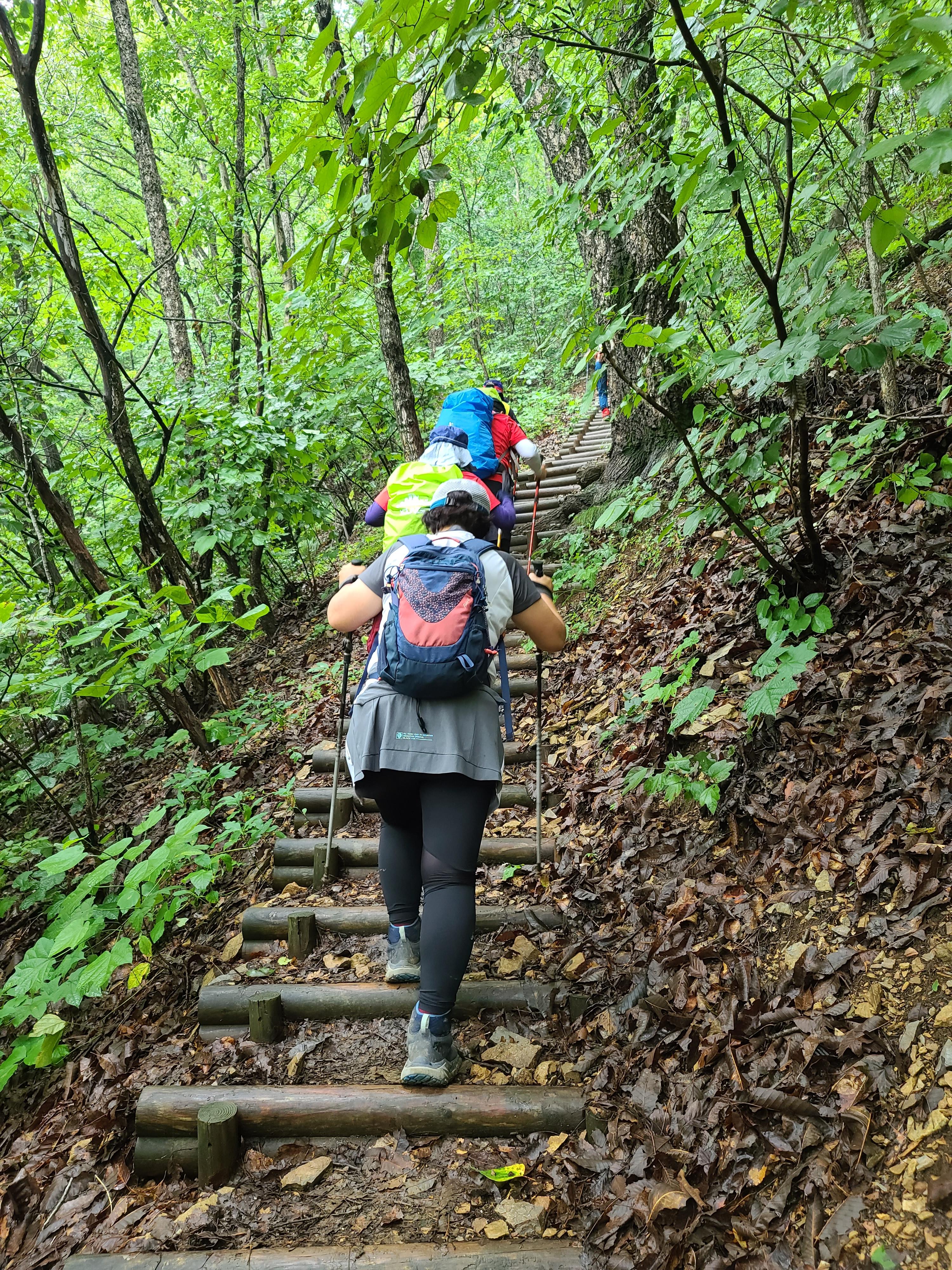 목책계단이 길게 고도를 높여간다. 이마에 땀이 송골송골 솟아 떨어지고 아드레날린이 솟구치기 시작한다. 재잘재잘 산을 오르던 산우들이 약속이라도 한 듯 말없이 올라간다.