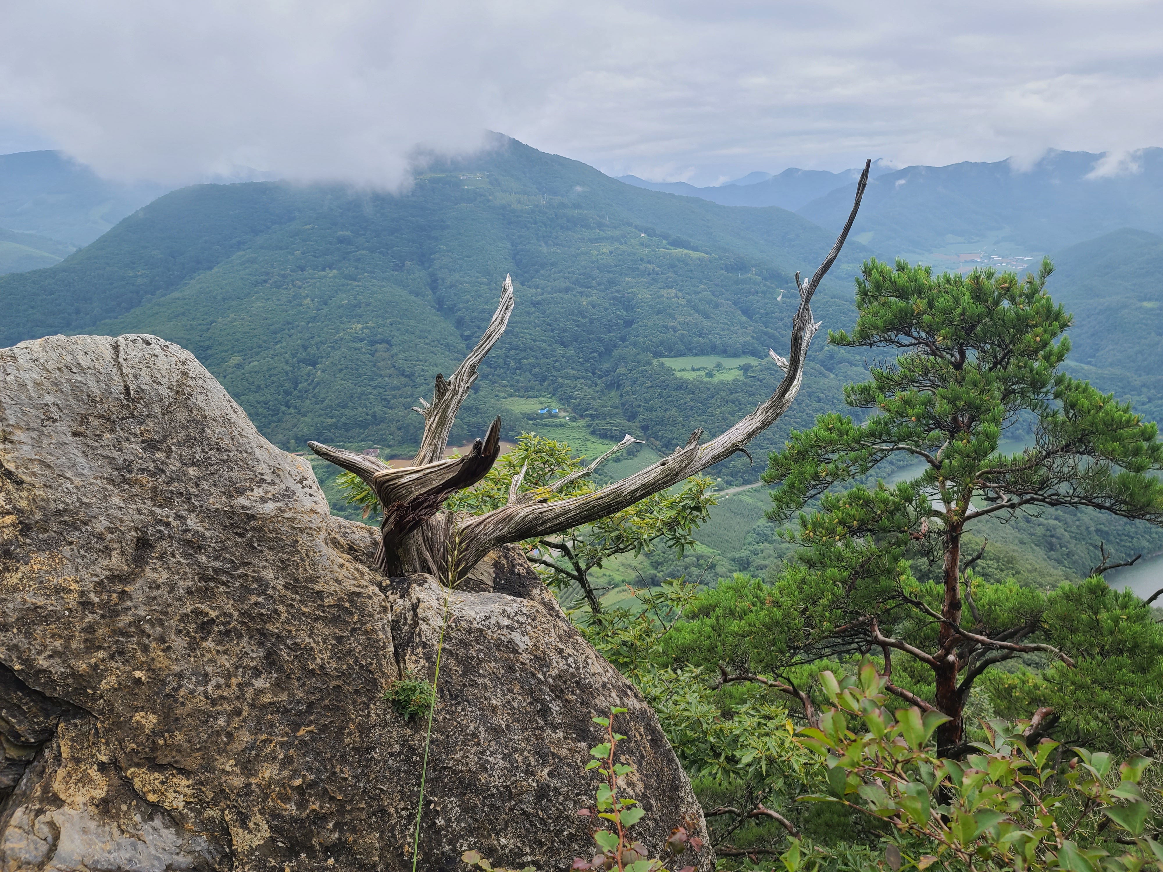 산객의 시름을 잊게 해 주는 조망이 열리기 시작한다. 반대편 문희마을 쪽에서 올라오면 못 보는 뷰가 펼쳐진다.