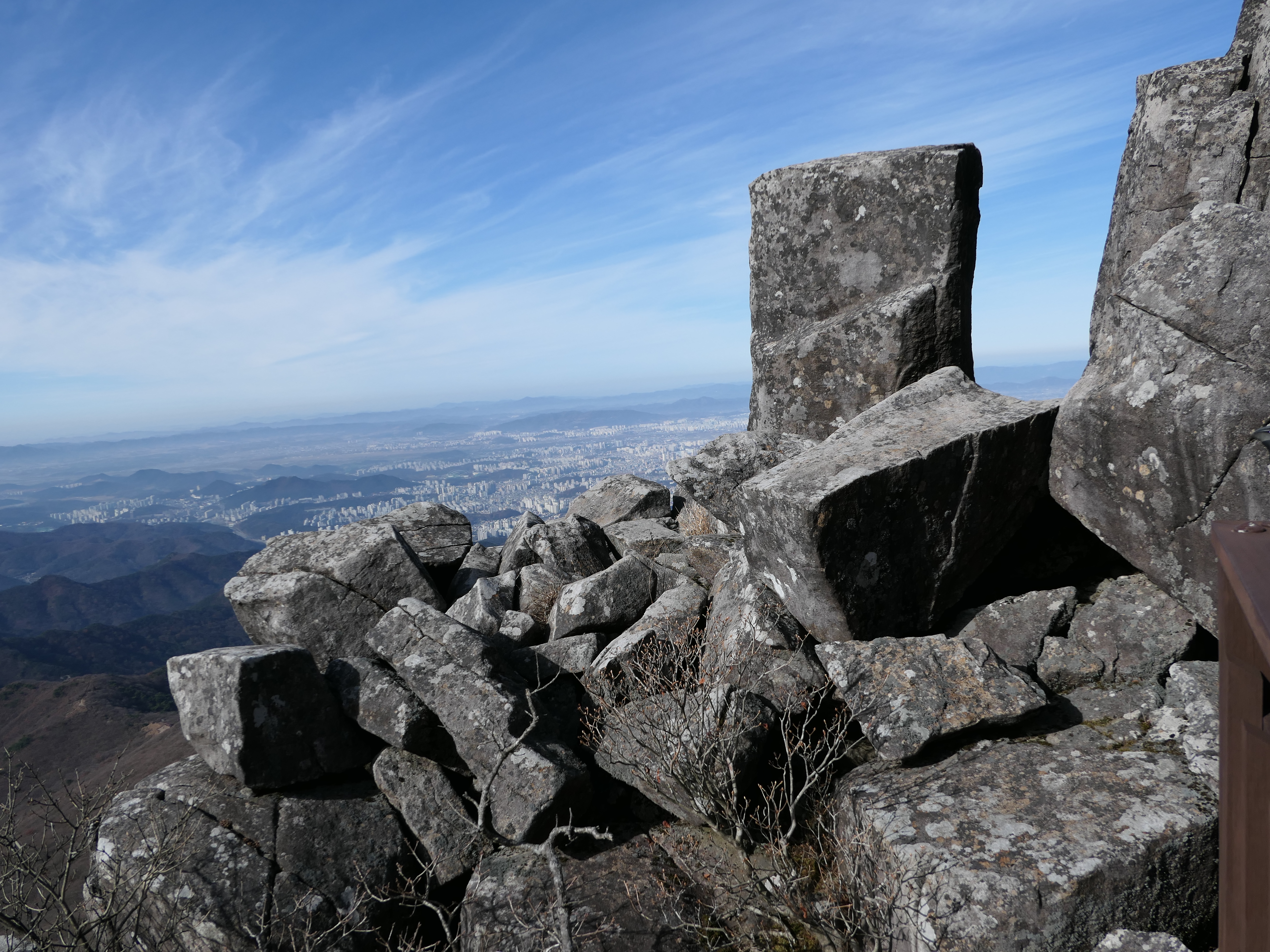 상고대가 피어난 무등산의 주상절리를 기대했지만 상승한 기온으로 만나지 못했습니다. 하지만 겨울의 문턱에서 푸른 하늘과 시계가 좋은 상태에서 무등산 조망을 하게 되어 좋은 구경하고 갑니다. 태고의 역사를 지닌 주상절리의 멋진 모습은 다시 봐도 감동이었습니다.