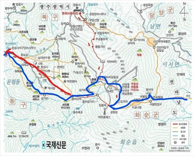 산행 코스 : 이서분교∼규봉암∼장불재∼서석대- 중봉 -중머리재 - 증심사 - 증심사 주차장 11km