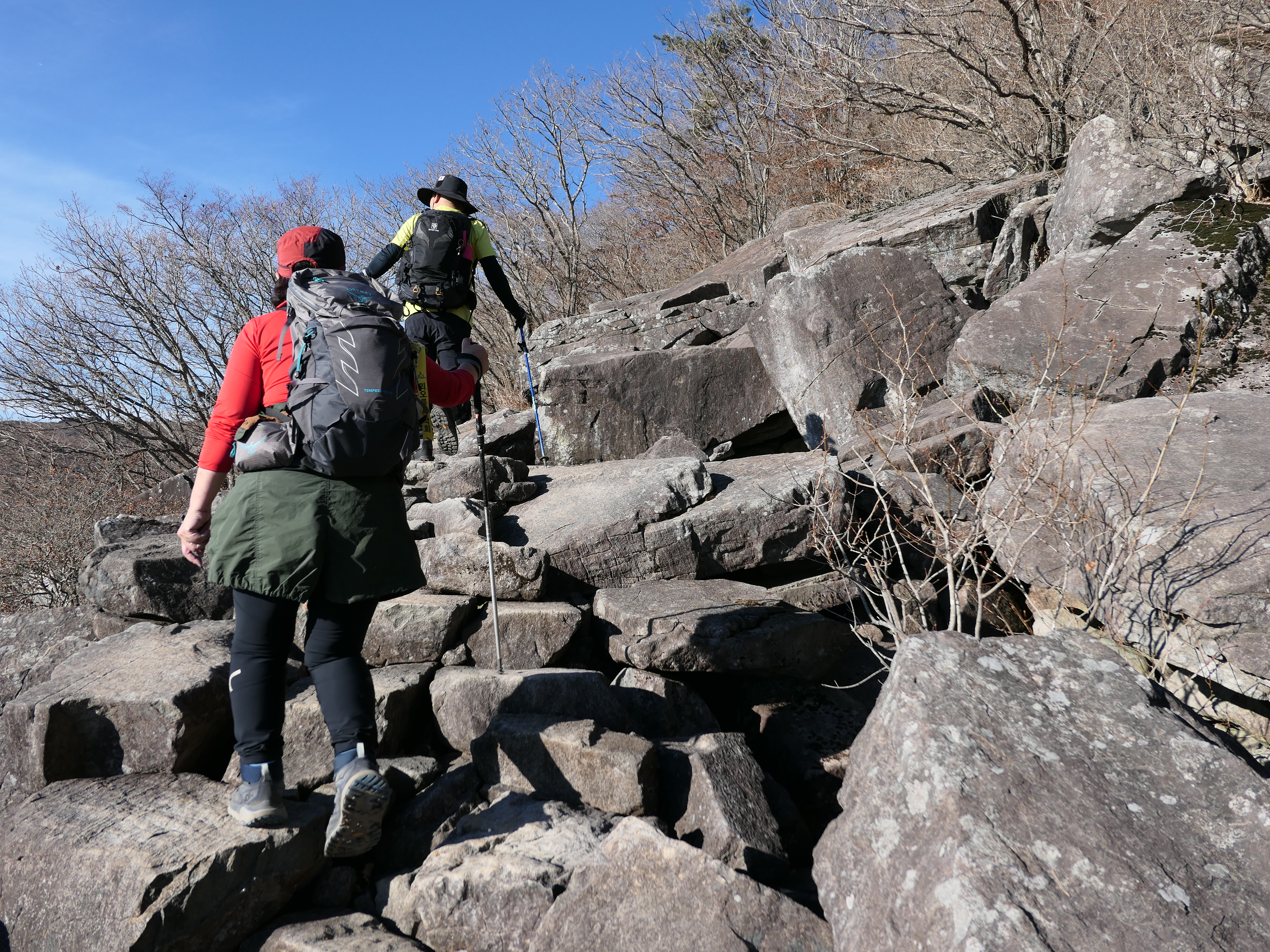 너덜은 주상절리가 오랜 억겁의 세월을 비바람에 깎이고 풍화작용을 통해 무너져 쌓인 돌무더기이다. 너덜을 지나 순한 길을 따라 장불재에 도착한다.