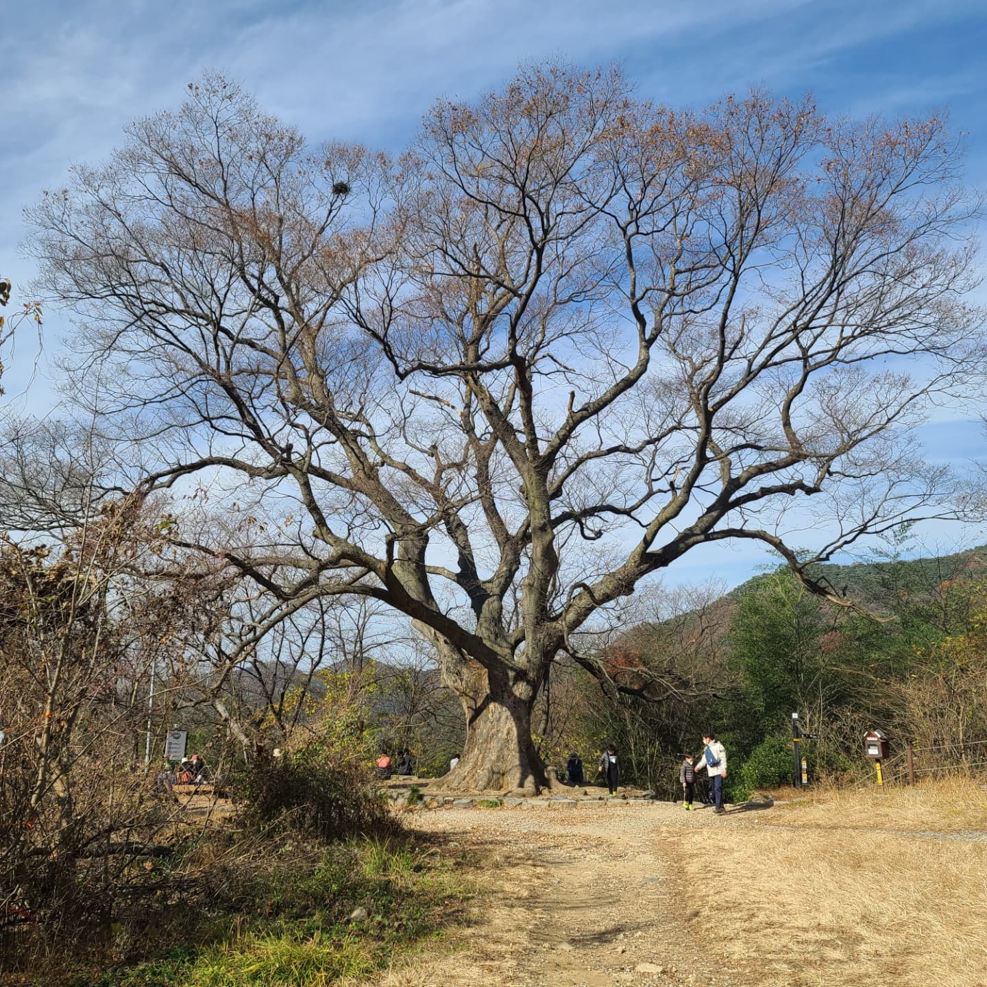 직진하면 새인봉, 우측으로 내려간다. 돌길의 지루한 하산길 당산나무를 만나니 증심사가 얼마 안 남았다.