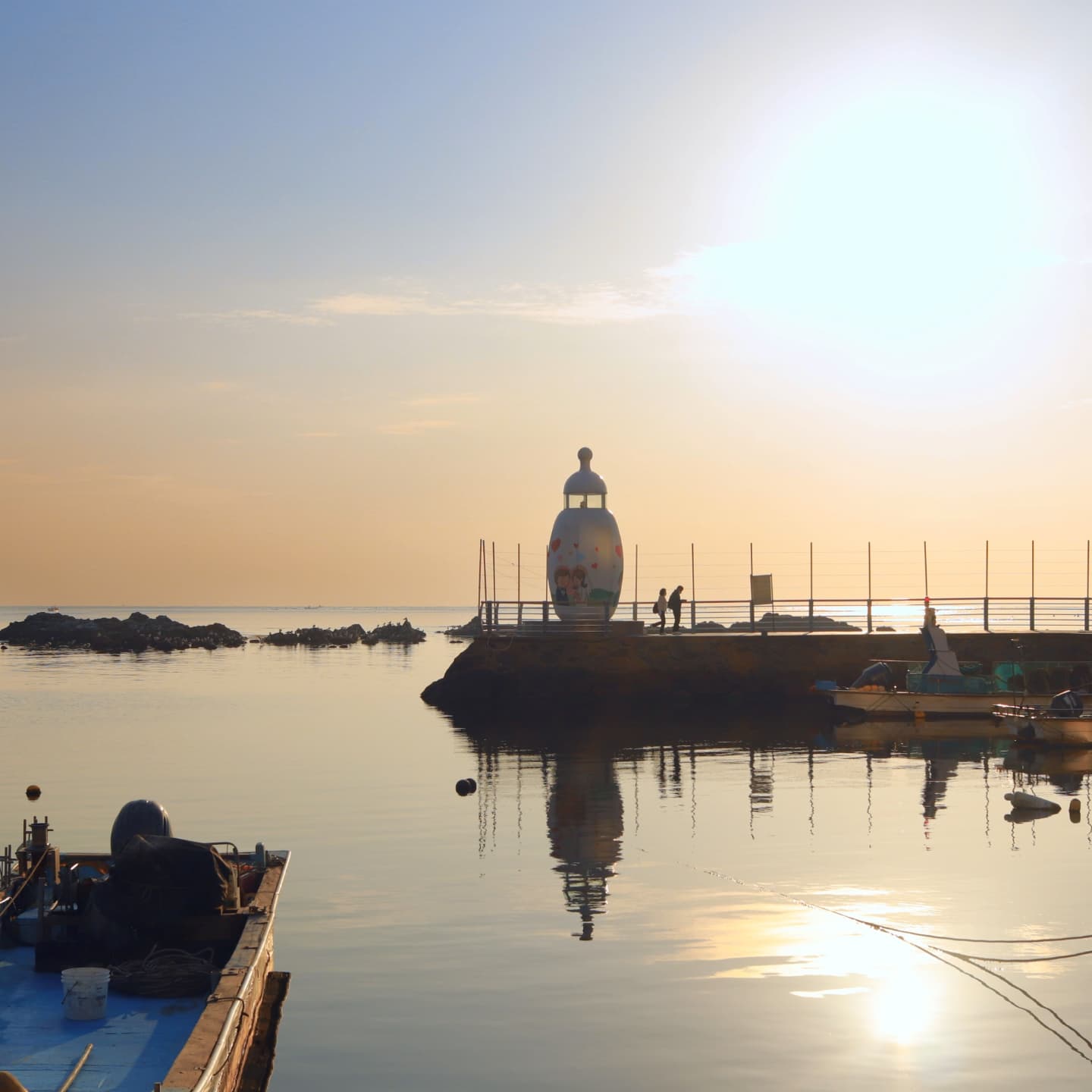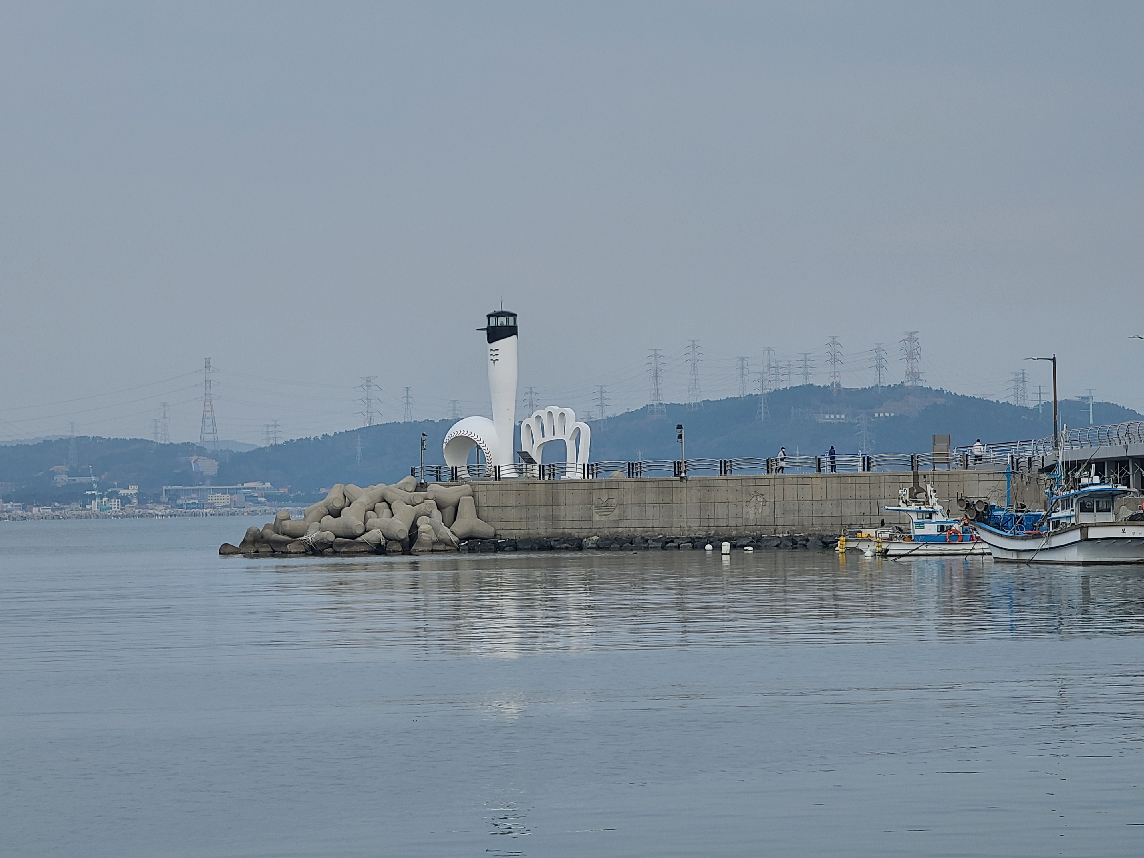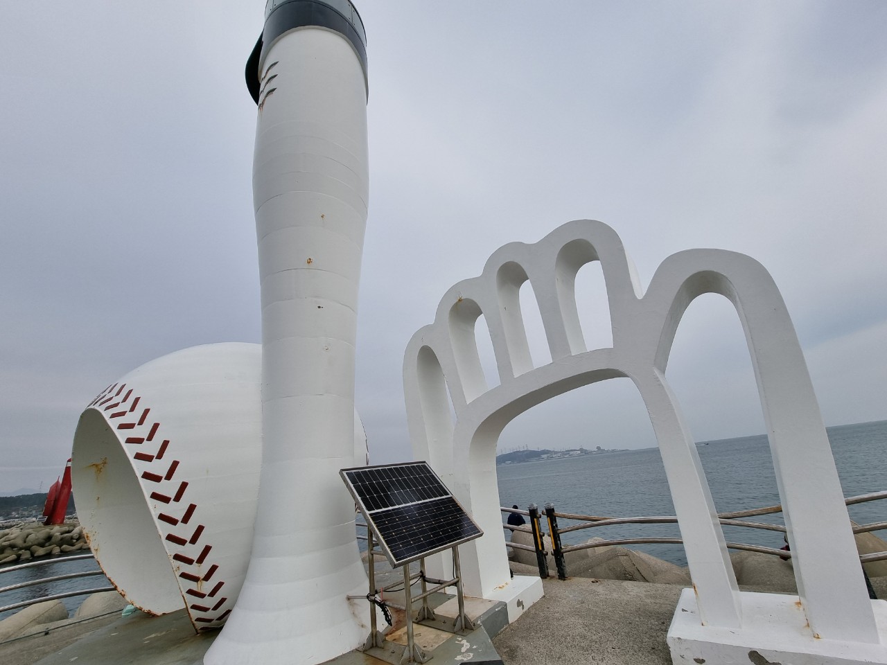 칠암항 쪽의 명물 야구등대와 갈매기등대
