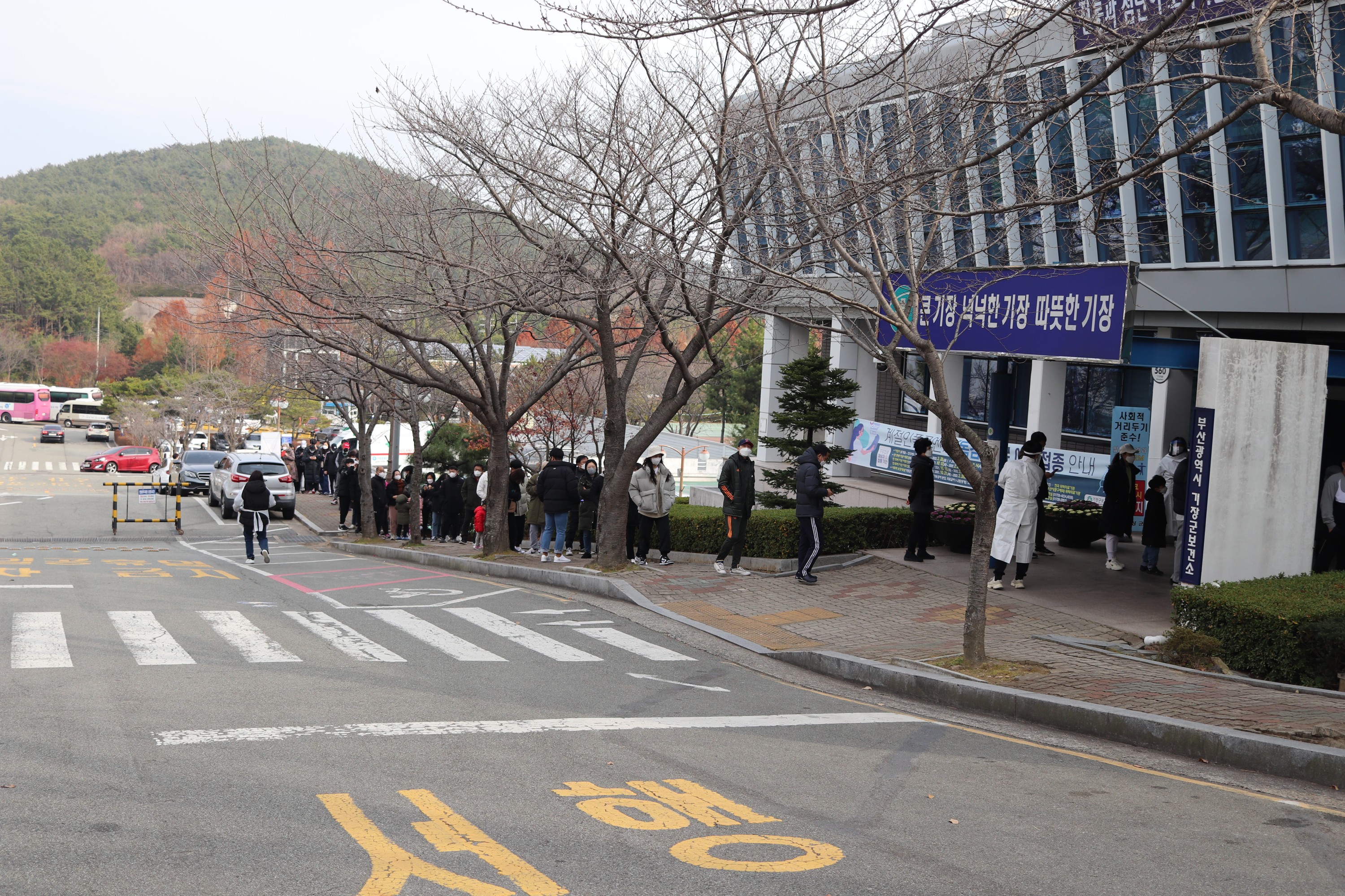 조릿대 풀섶 사이의 오솔길이 걷기 좋다. 봉대산을 내려오면 기장군청 앞 지난다. 코로나 검사를 받는 주민들이 길게 줄을 서있는 풍경, 이제는 어디를 가나 익숙한 일상처럼 돼버렸다. 언제나 시련이 끝이 날지...