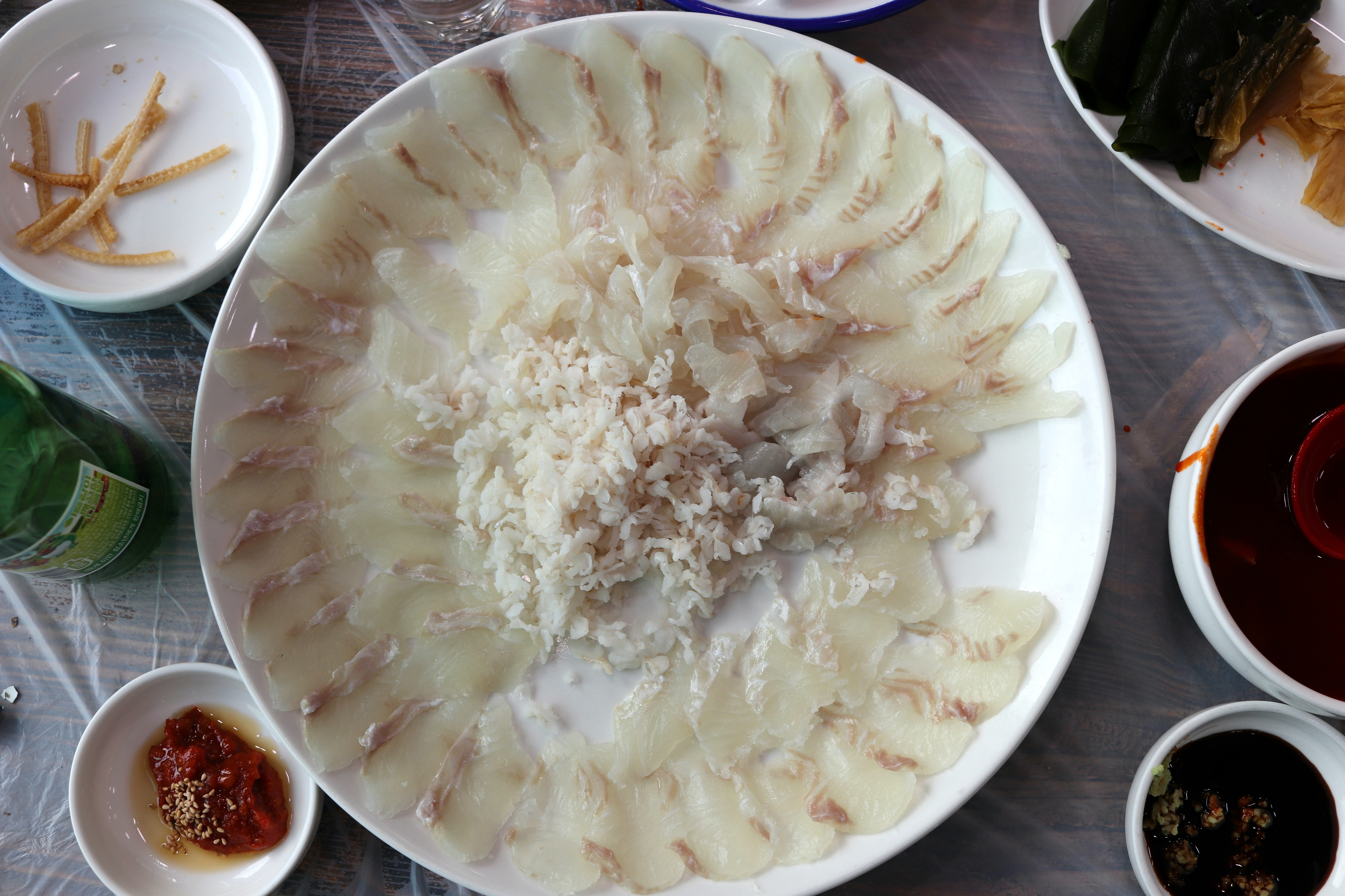 칠암항은 소형선박이 많이 정박돼있는 규모의 항구였고 많은 음식점이 자리 잡고 있었다.