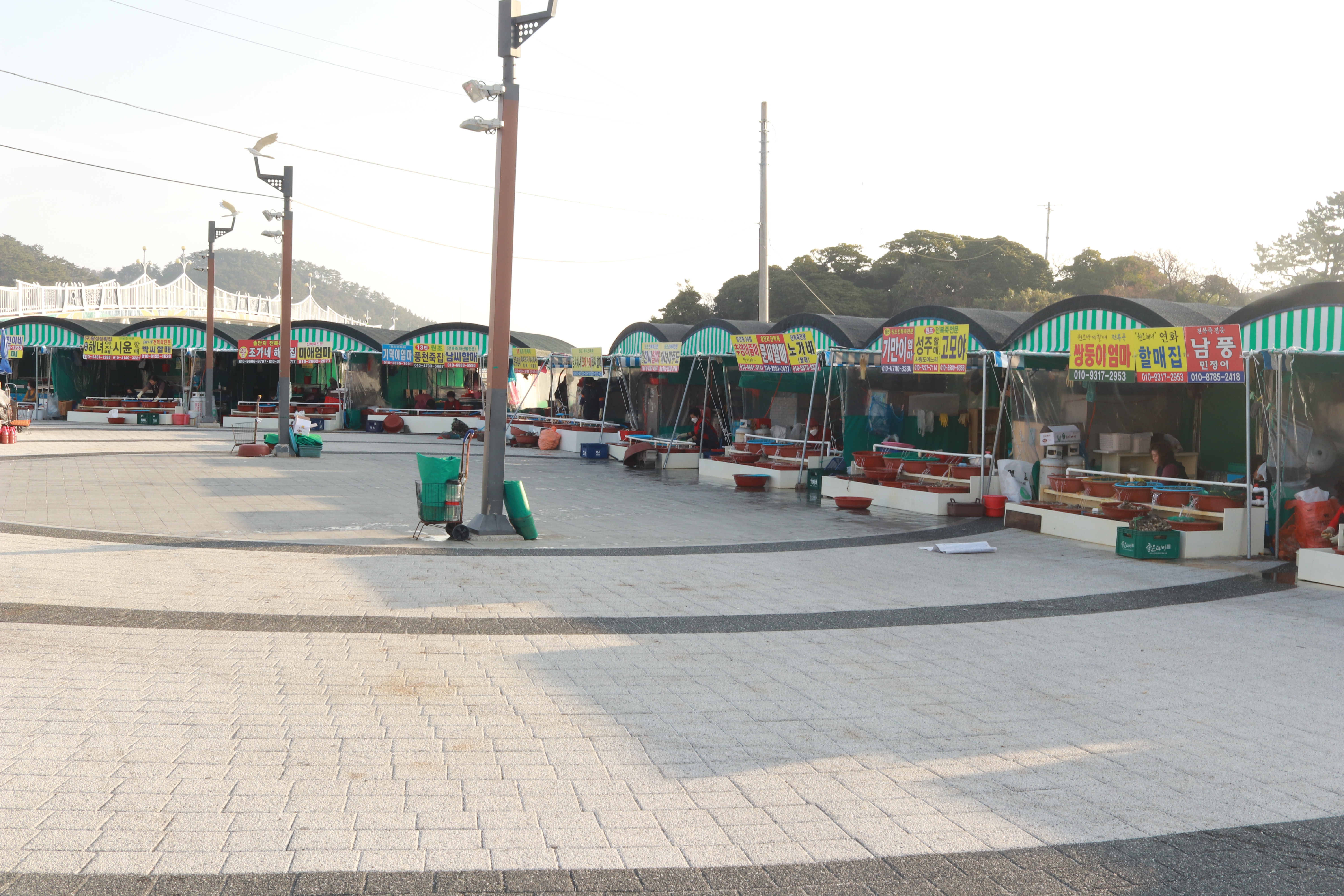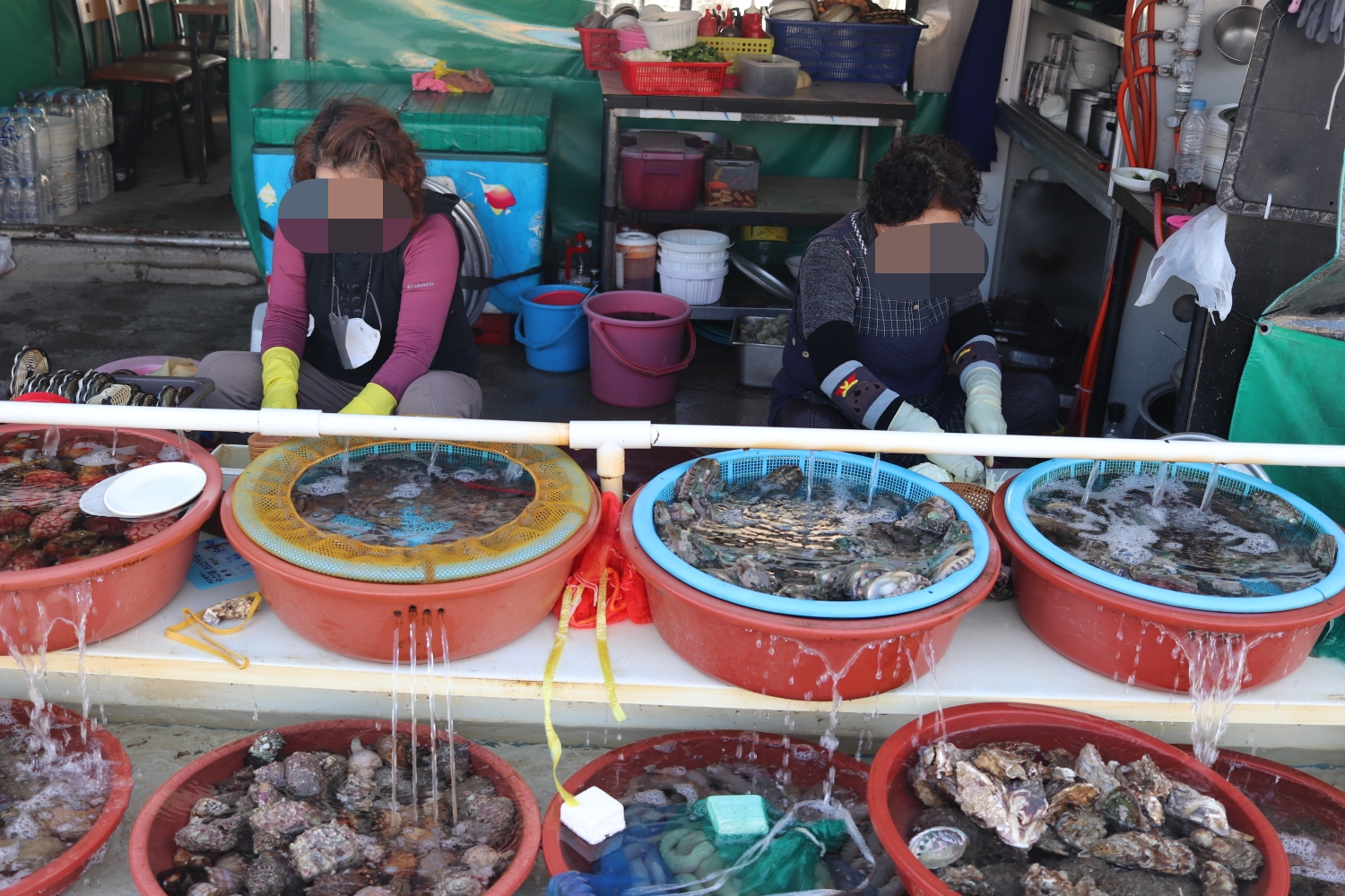 해녀들의 애환이 섞인 삶의 현장을 지나치고 죽도의 해변포차촌 앞에 닿는다