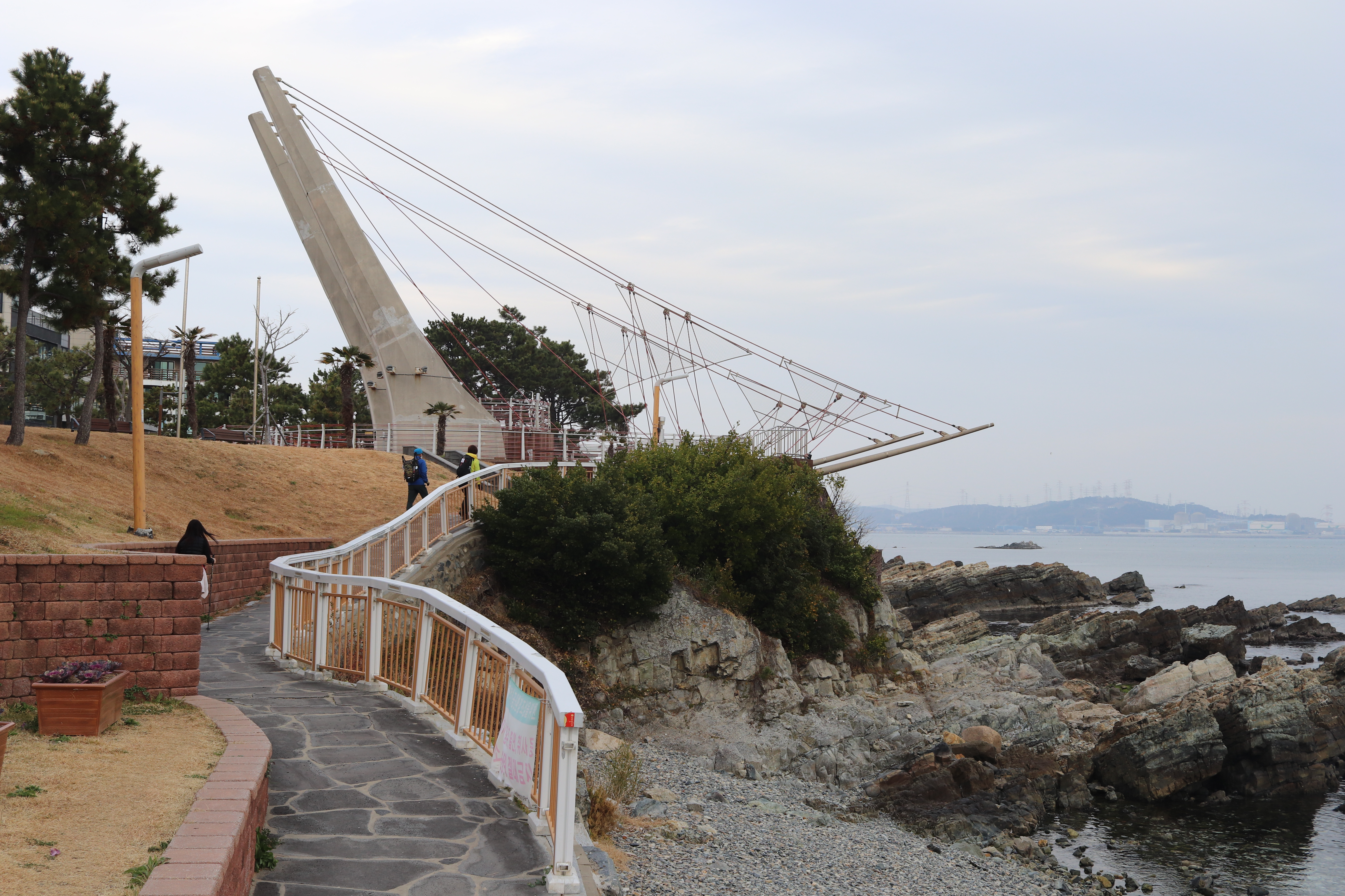 대변항에 도착한다. 항구 이름이 독특해 초등학교가 개명을 했다고 들었던 적이 있다. 전국적으로도 여러 지역이 지명으로 몸살을 앓곤 한다. 한글로 뜻을 표현하기가 어려운 탓이다. 해파랑길 2코스의 마지막으로 스탬프 인증을 하고 뒤로 보이는 봉대산을 넘어갈 것이다.