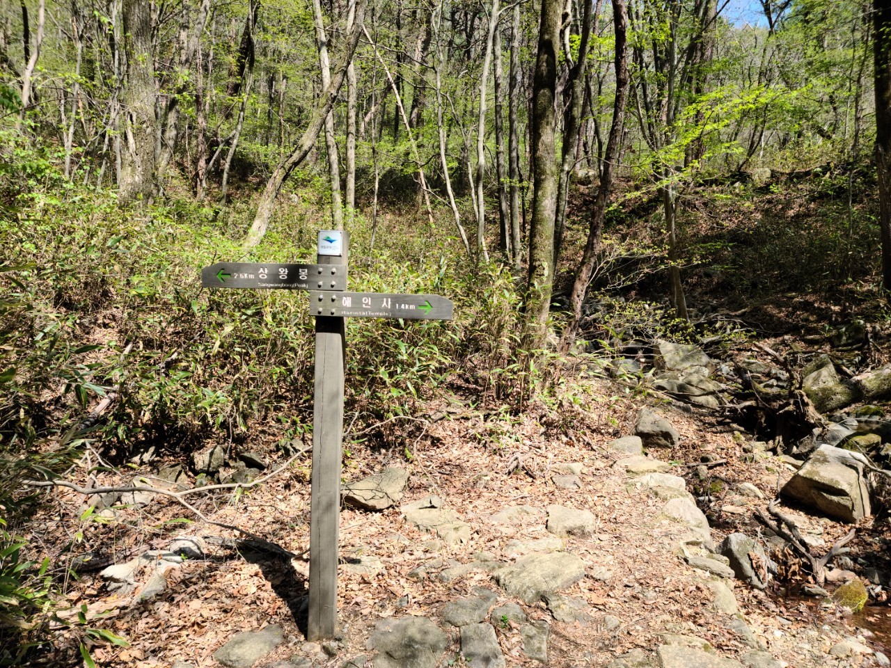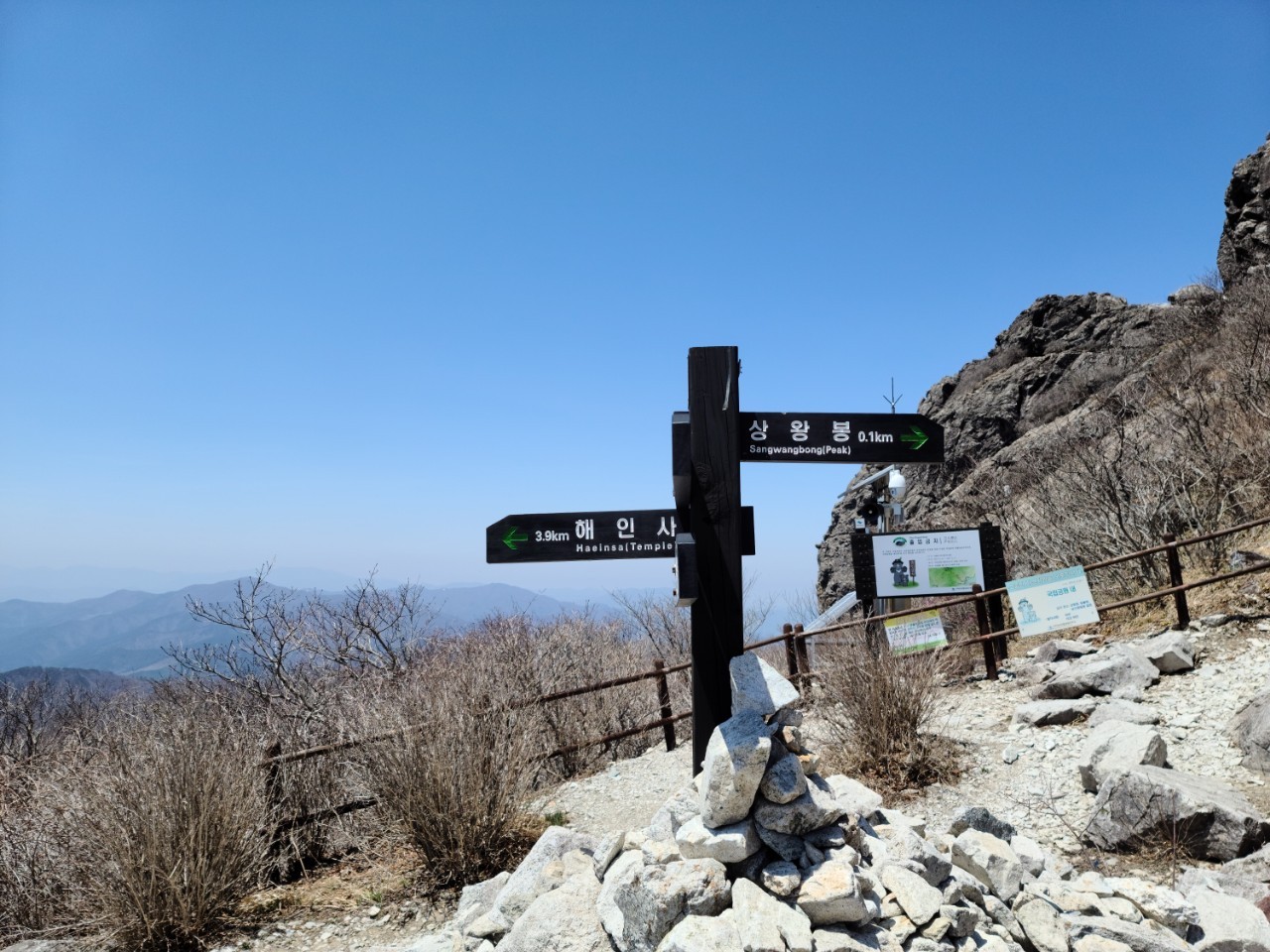 정상 안부 해인사 방향 갈림길