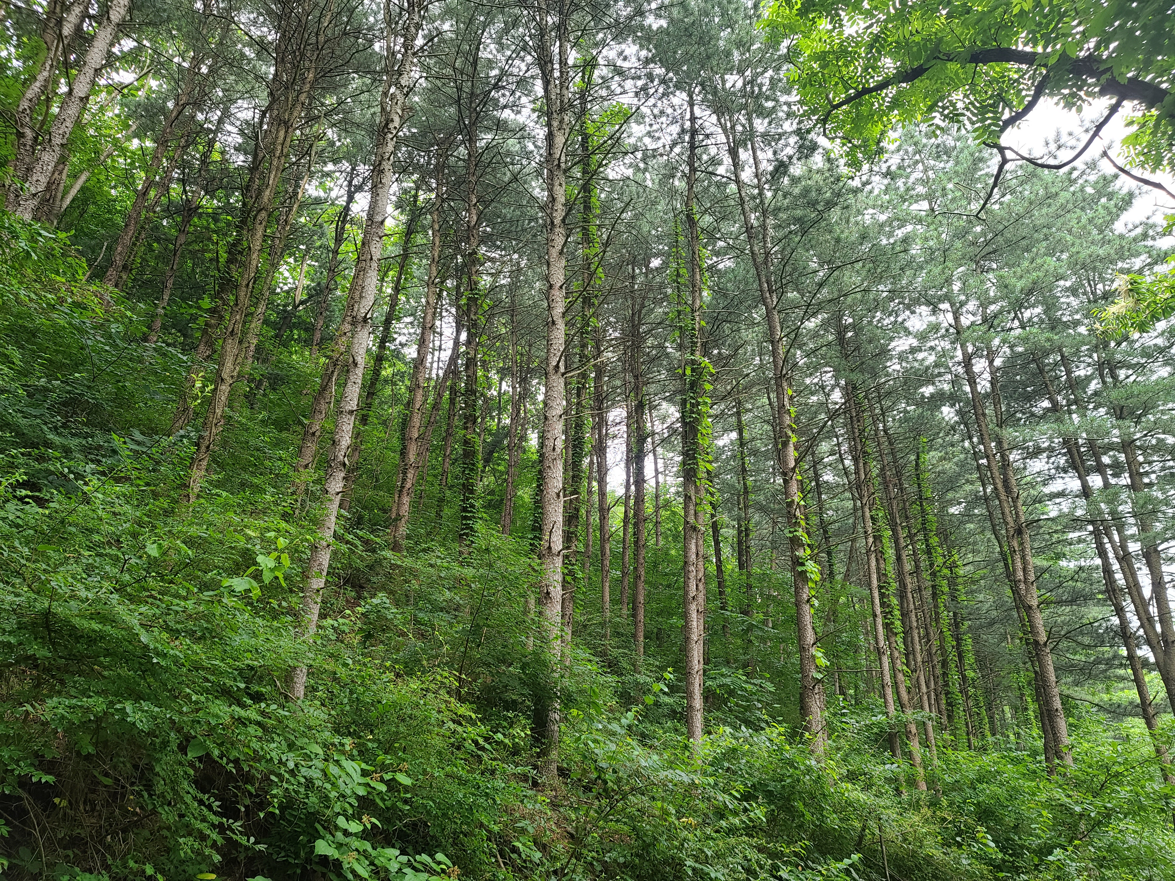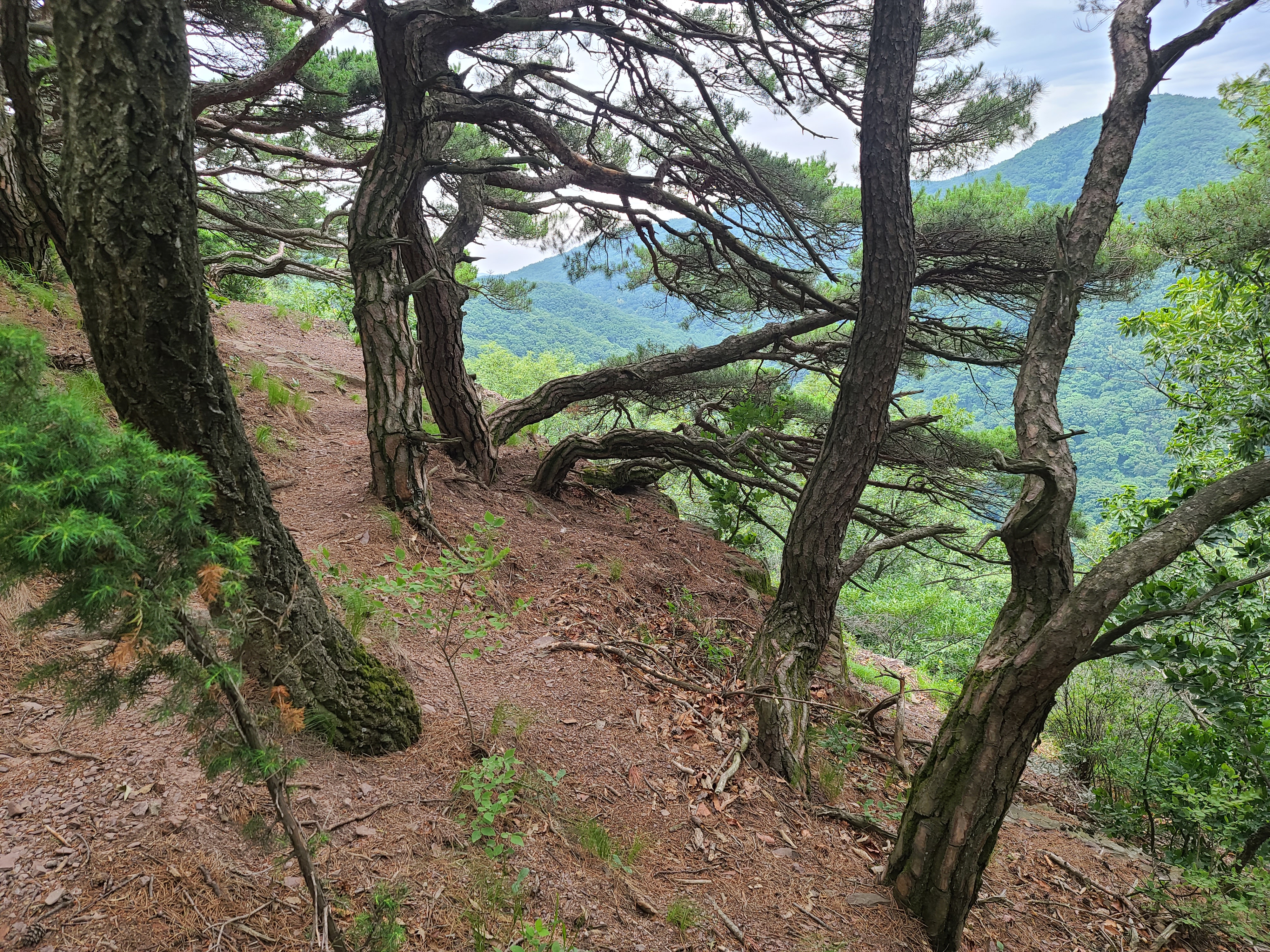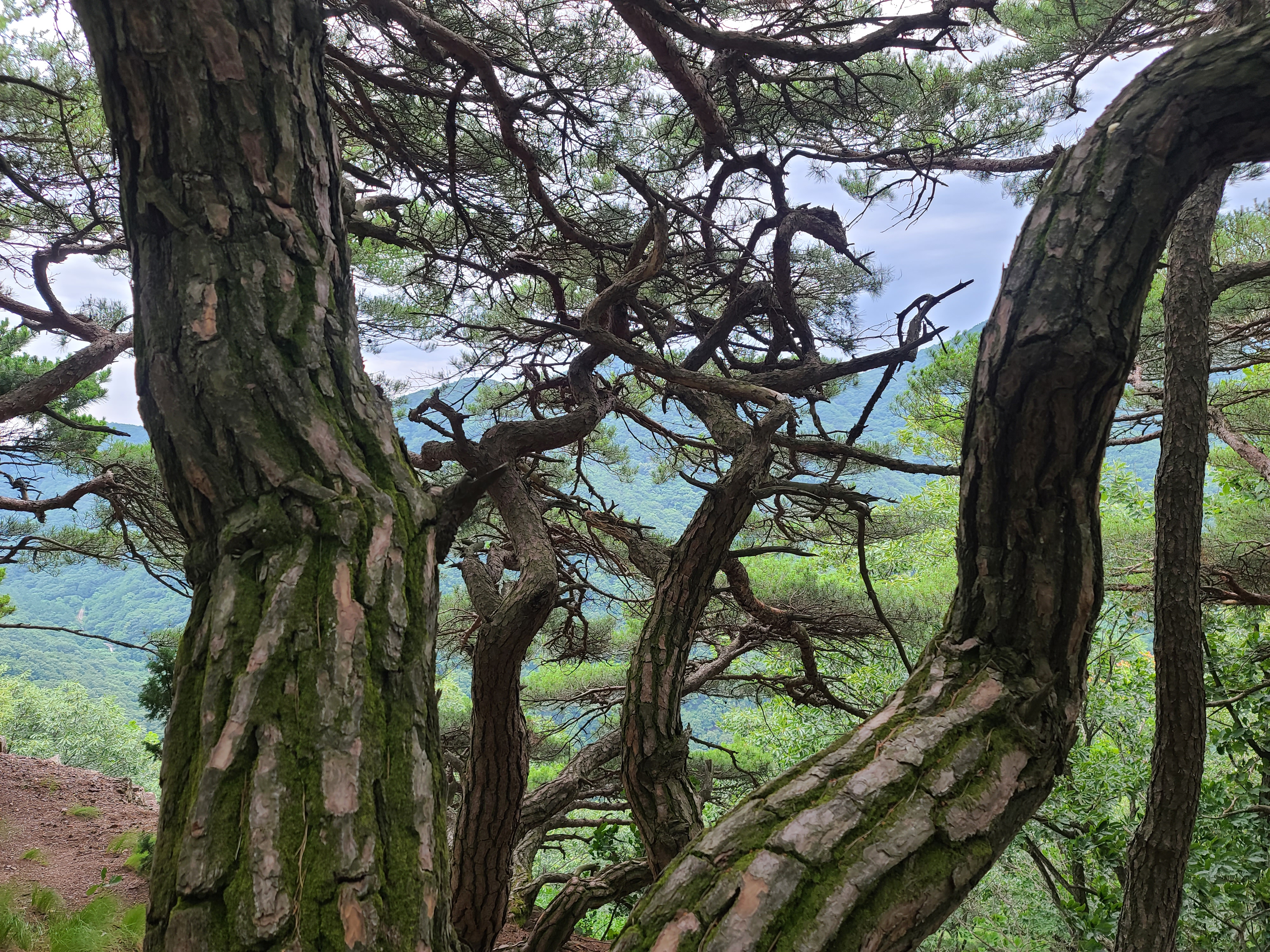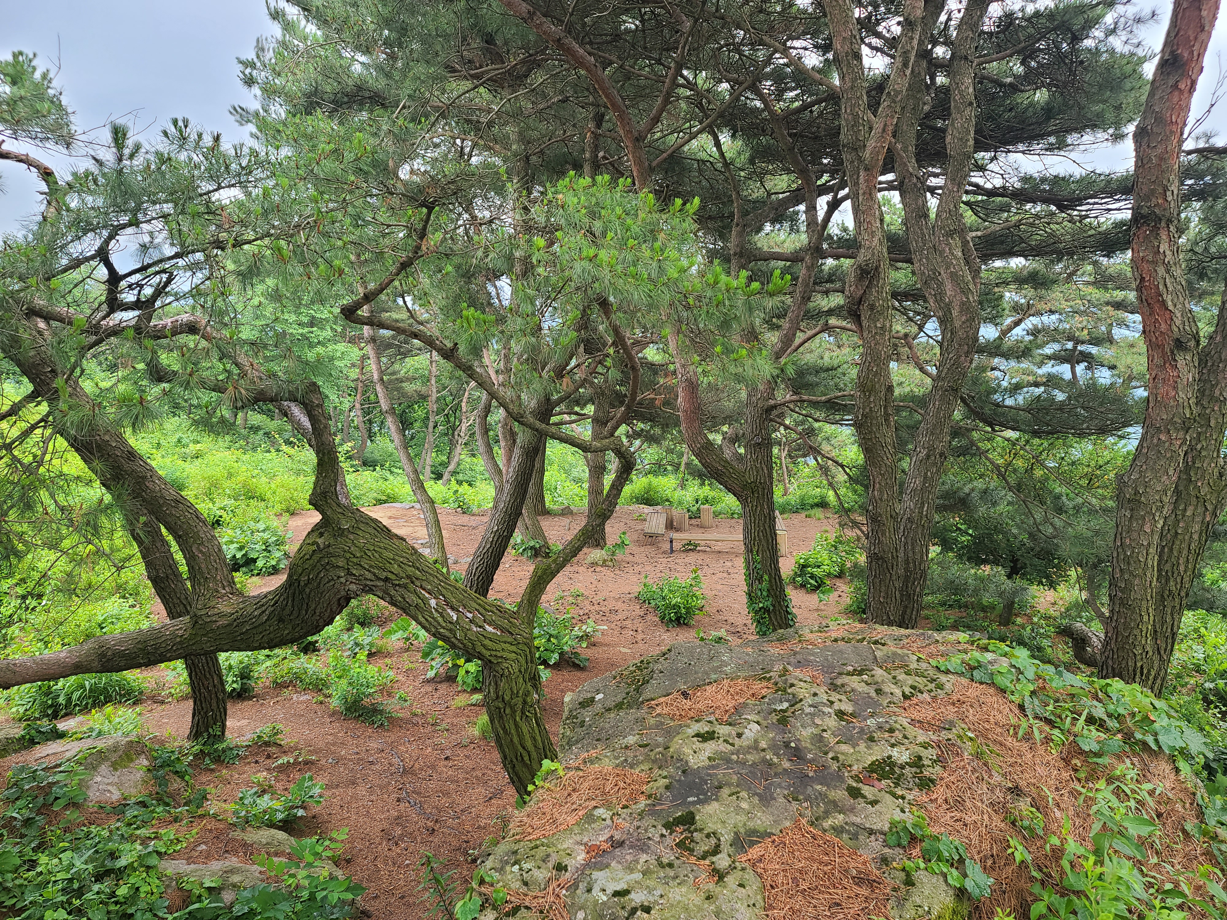 곧지 않지만 휘어 잘생긴 소나무 군락지를 지나고