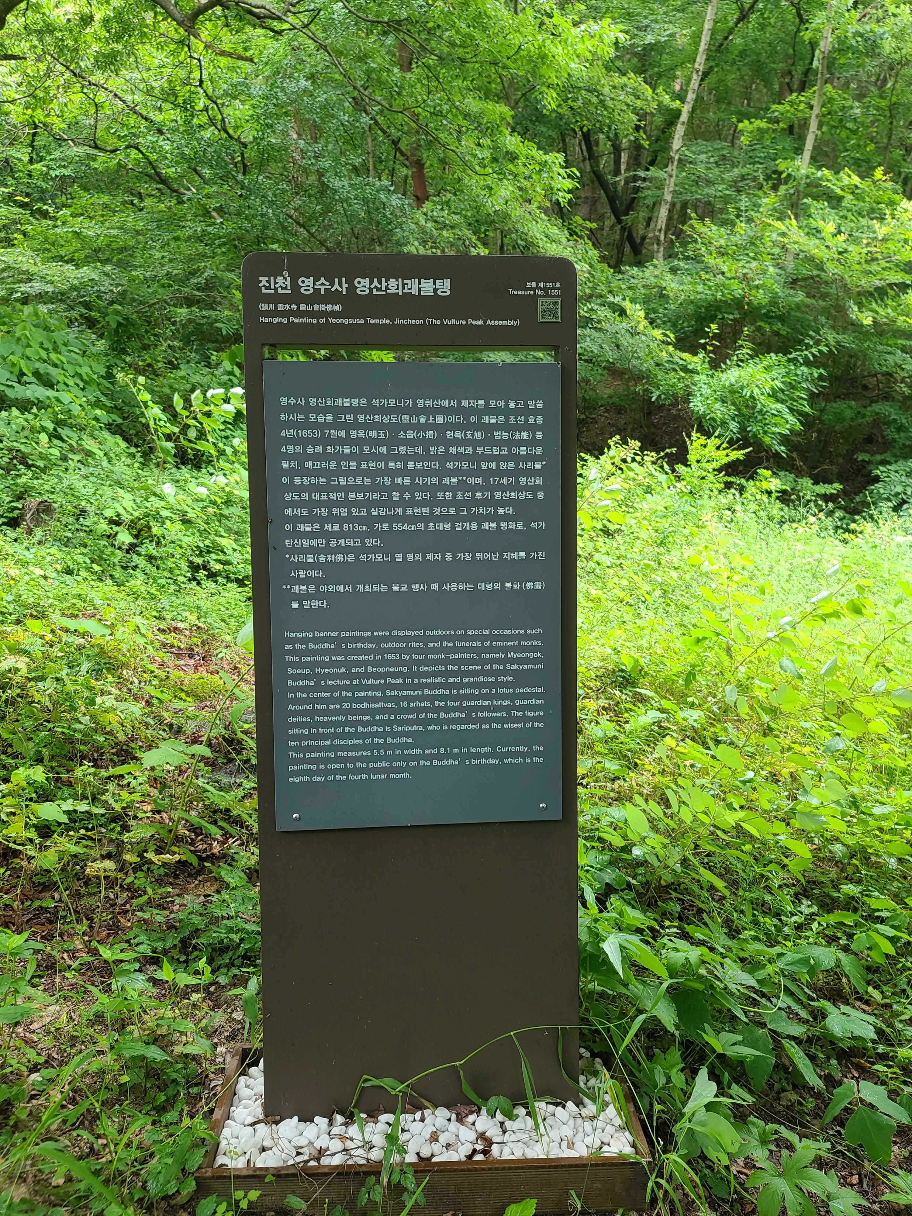 영산회개불탱은 보물 제1551 호 영수사 대웅전에 보관 되있으나 별도 보관 되있어 일반인 관람은 할 수 없다.