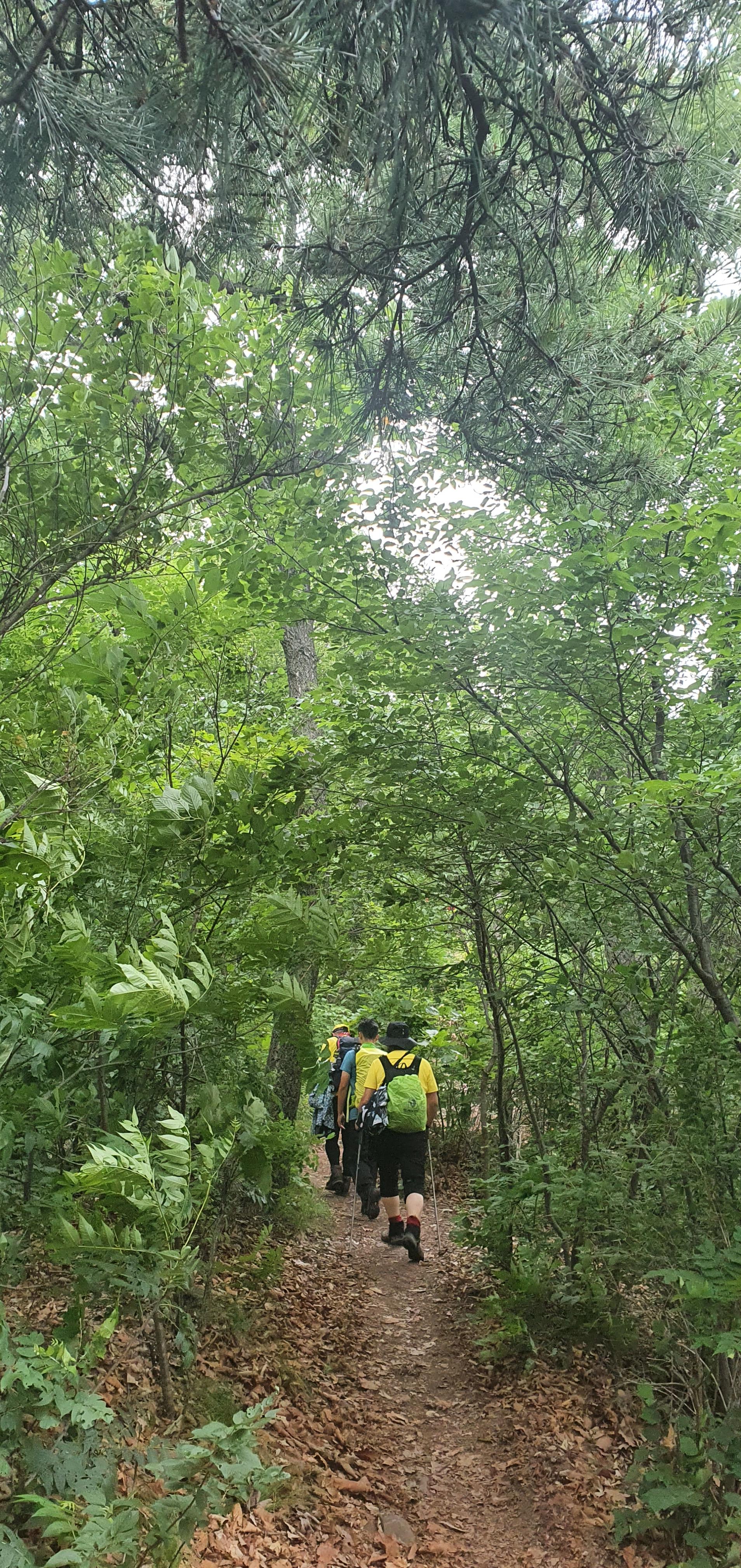 등산을 시작하며 적지 않은 비가 뿌려 걱정을 더 했으나 비는 오래가지 않았고, 오히려 시원한 비바람은 산행의 즐거움을 더 해주어 지난 3주간 폭염과 장거리 산행을 하던 힘들었던 기억을 떨치는 청량 사이다 같은 산행 이 되었다.